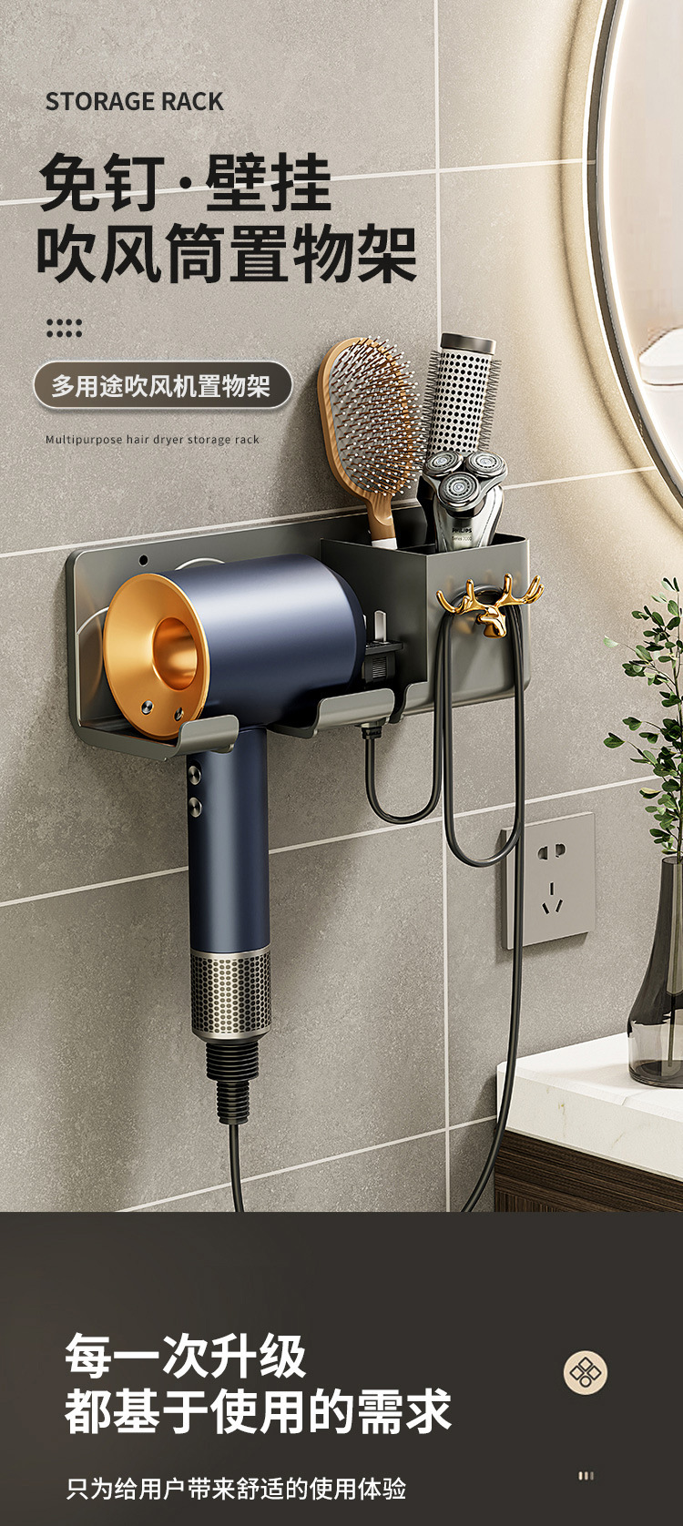 헤어 드라이어 랙 비 천공 화장실 벽에 장착 헤어 드라이어 브래킷 욕실 헤어 드라이어 보관 랙스토어 가기