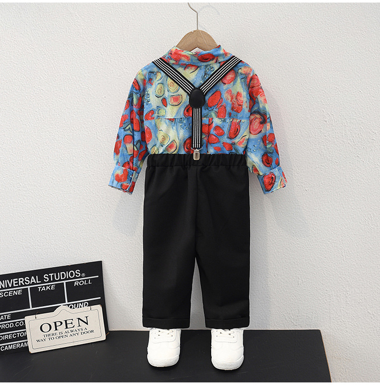 소년 세트 아기 셔츠 스트래퍼 세트 어린이 원피스 공연 1 세 꽃 어린이 세트 영국 스타일 호스트