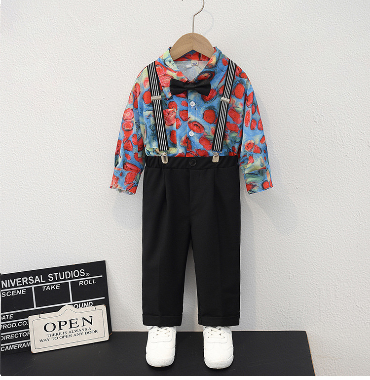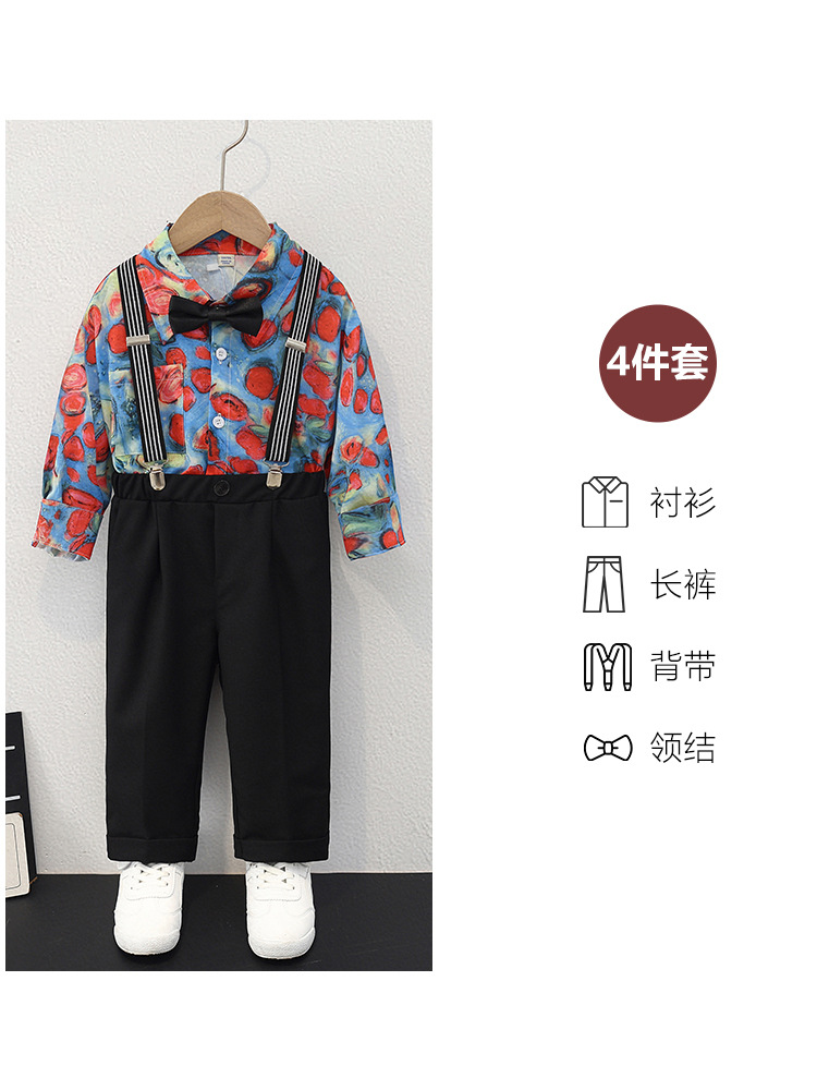 소년 세트 아기 셔츠 스트래퍼 세트 어린이 원피스 공연 1 세 꽃 어린이 세트 영국 스타일 호스트스토어 가기
