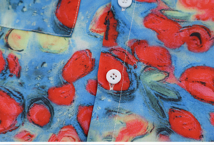 • 화려한 셔츠 + 카키색 바지 + 멜빵 + 넥타이