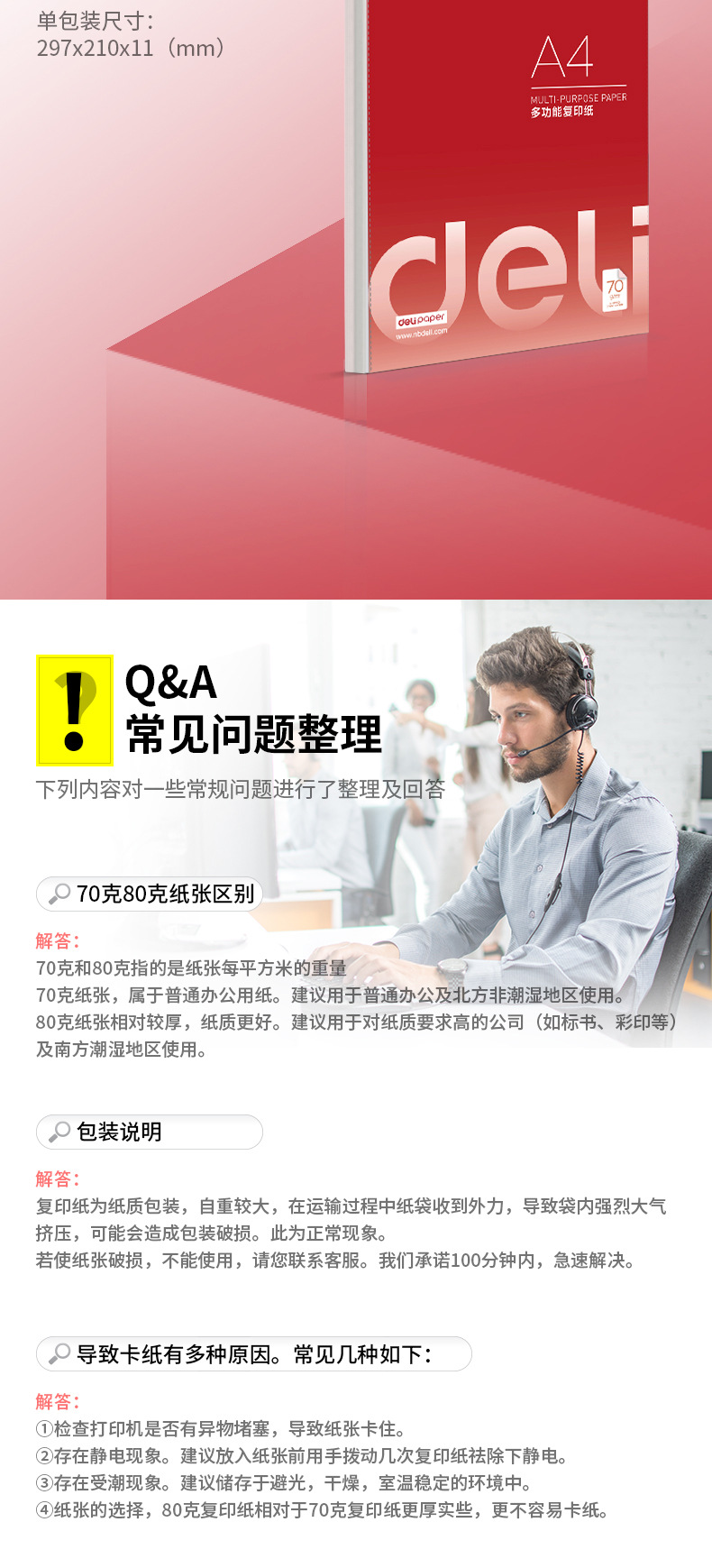 델리 3562 인쇄 용지 A4 다기능 복사 용지 70g 인쇄 용지 100 장/팩 사무용품 도매스토어 가기