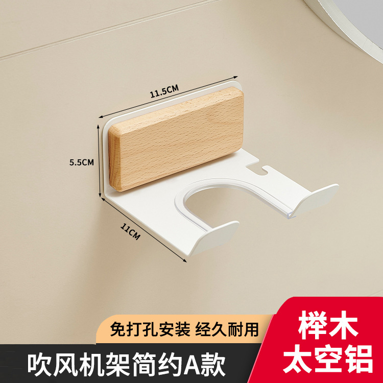 솔리드 우드 헤어 드라이어 스토리지 랙 화장실 로그 윈드 드릴 스토리지 랙 벽 교수형 비 드릴링 유니버설 헤어 드라이어 랙