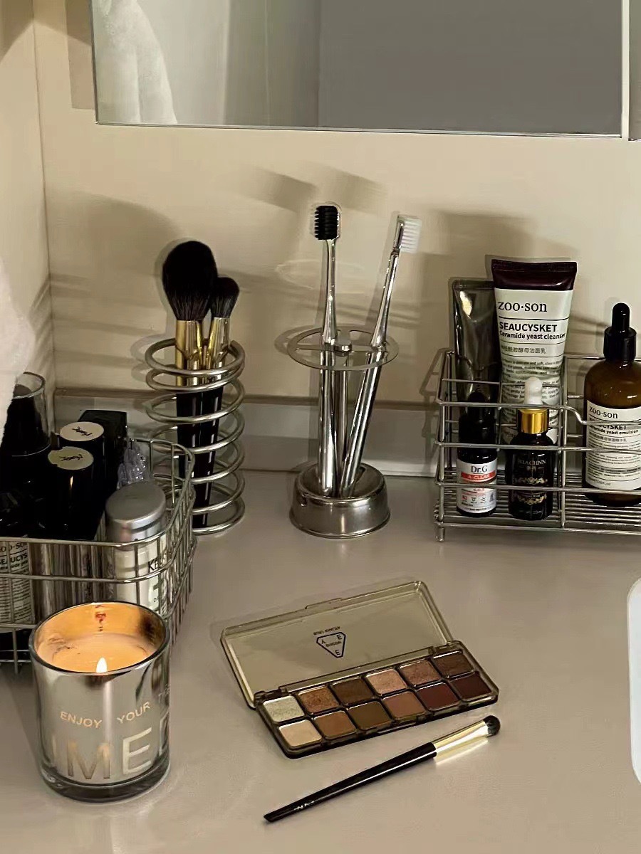스테인레스 스틸 칫솔 홀더 스레드 압출 치약 랙 화장품 브러시 저장 펜 홀더 공예