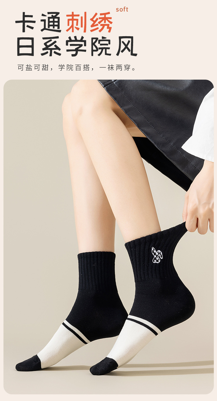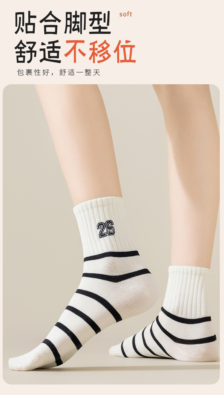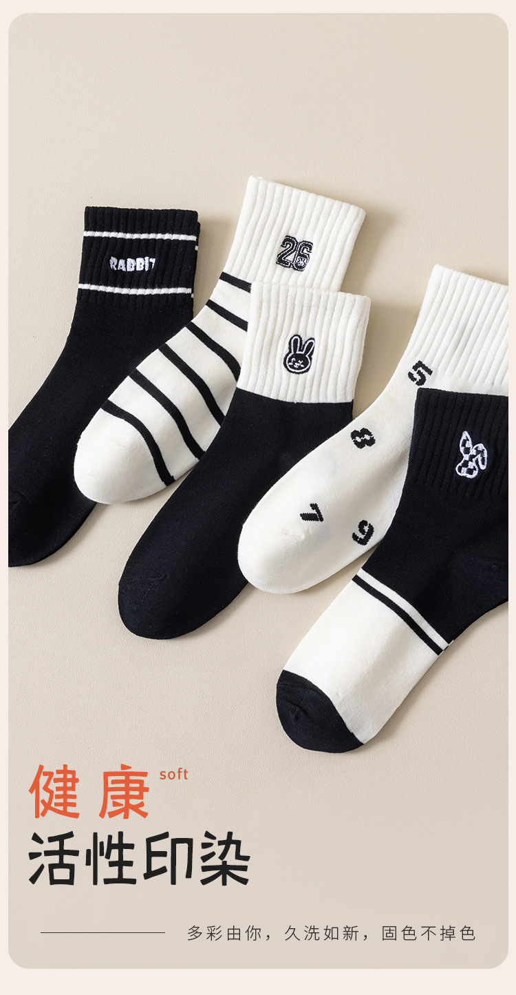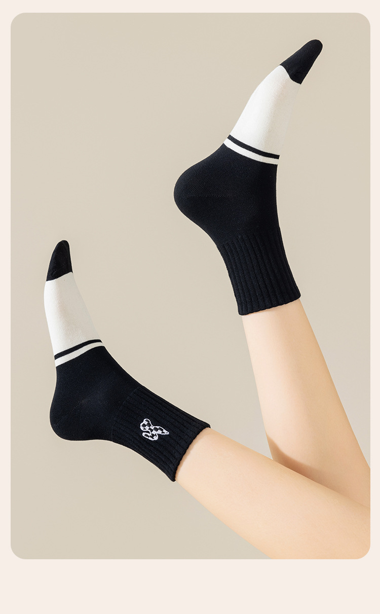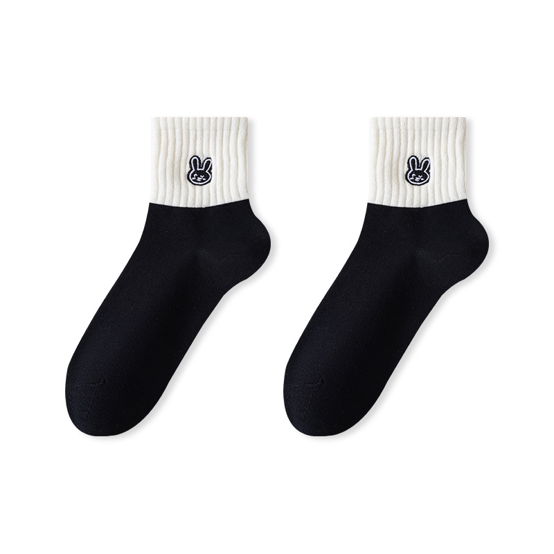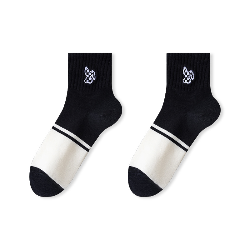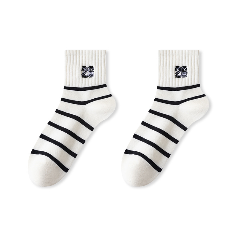 흑인과 백인 자수 클래식 여성 양말 조수에 자수 줄무늬 학생 짧은 튜브 여성 양말 도매스토어 가기