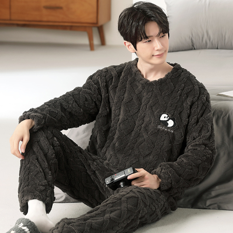 유통 상점 플란넬 파자마 남성 가을과 겨울 새로운 스탠드 칼라 지퍼는 산호 양털 집 옷을 입을 수 있습니다.스토어 가기