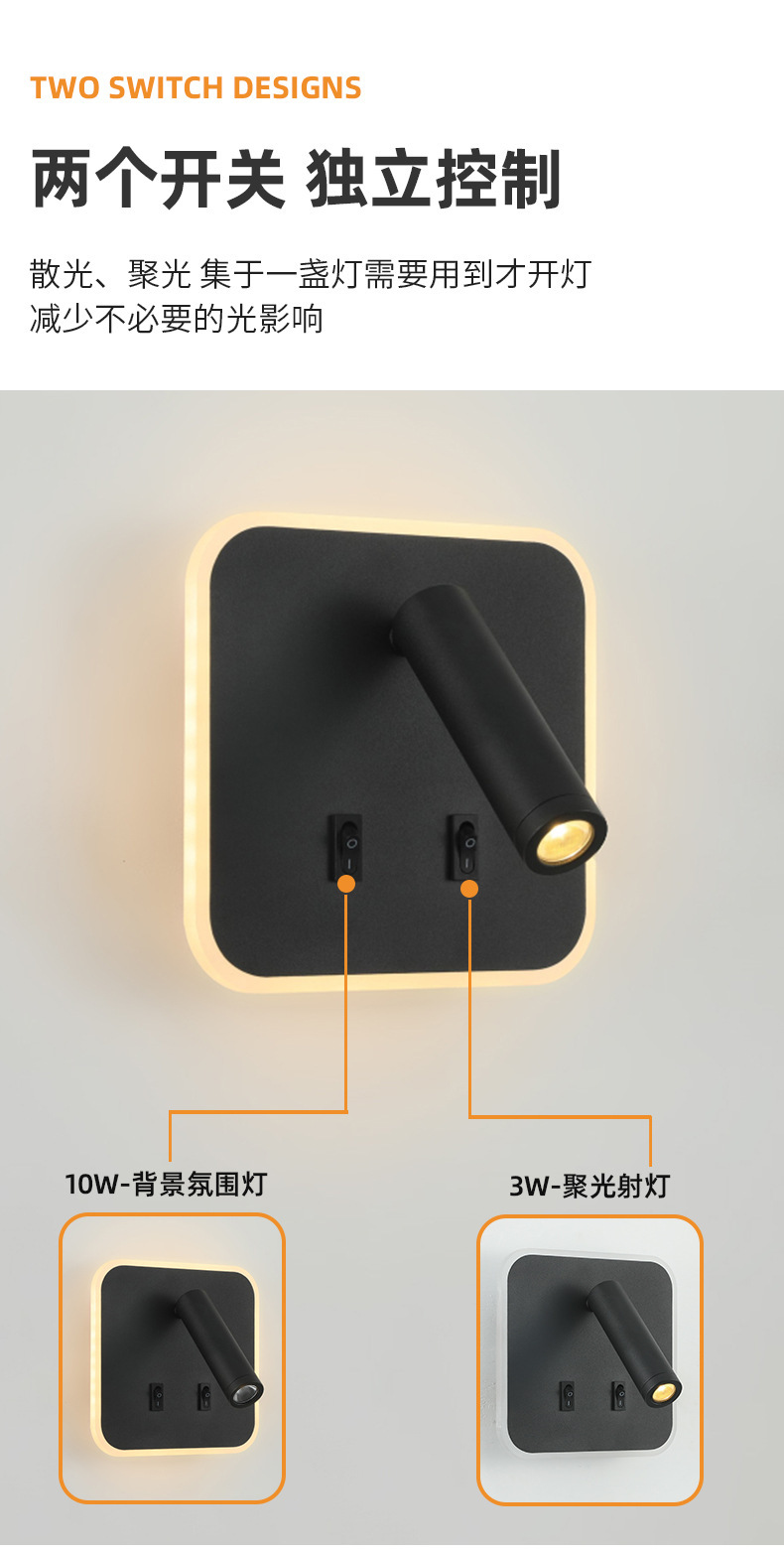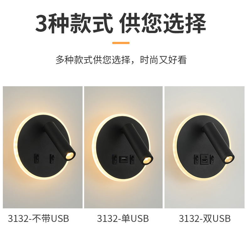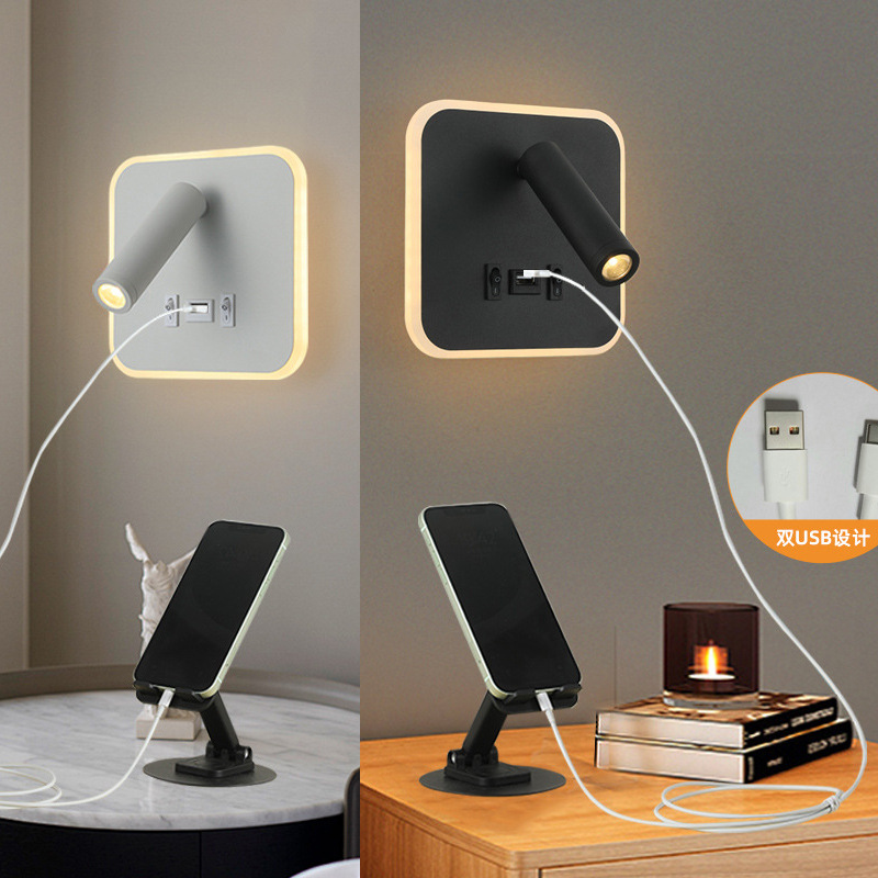 휴대 전화 충전 스위치 호텔 침대 옆 독서 램프 실내 가정 연구 작업 장식 LED 침실 벽 램프