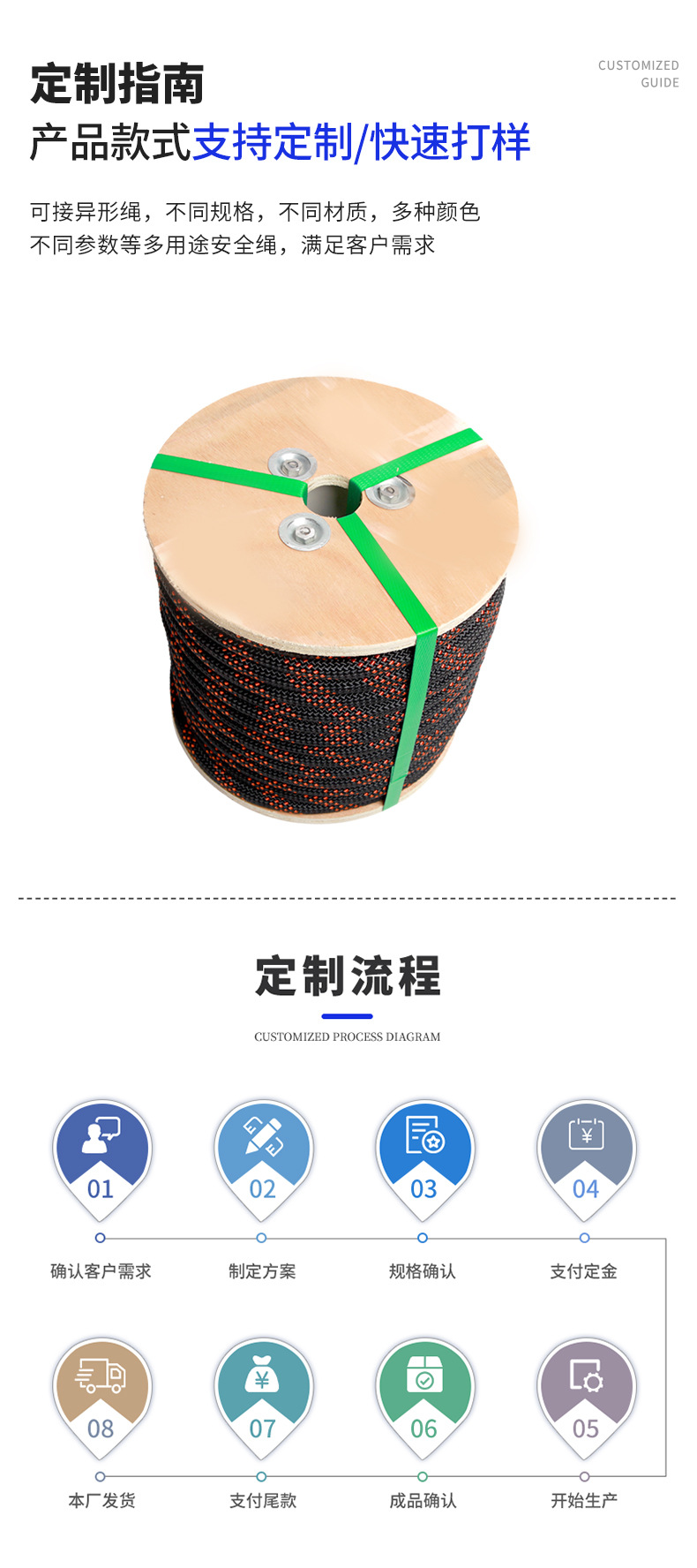 다양한 사양의 야외 보호 건설 안전 로프, 화재 탈출 안전 로프, 인명 구조 로프, 나일론 안전 로프, 등산 로프