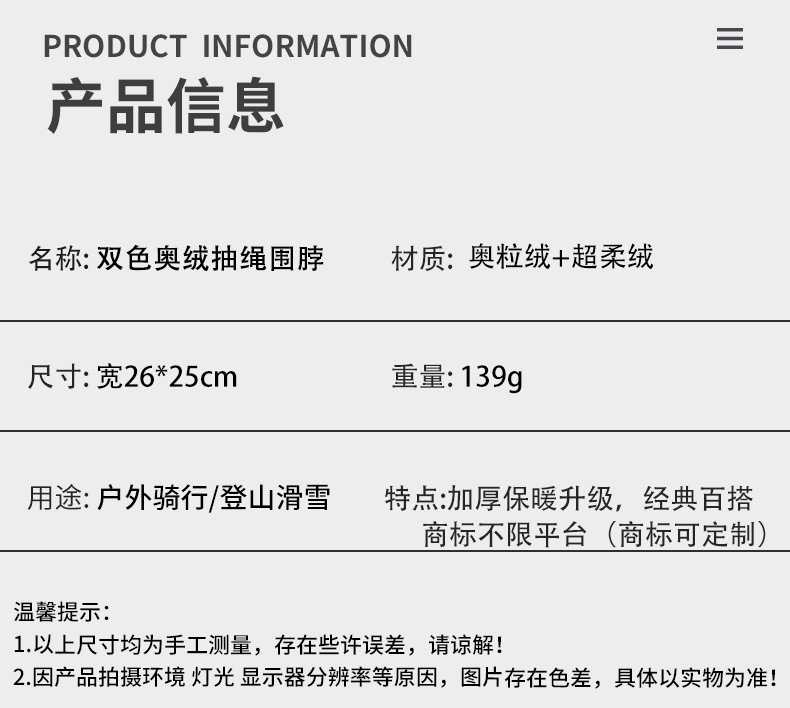 새로운 끈 목 보호 목 소매 겨울 양면 양면 양면 양면 탄성 두꺼운 목 승마 남성용 방화 따뜻한 마스크