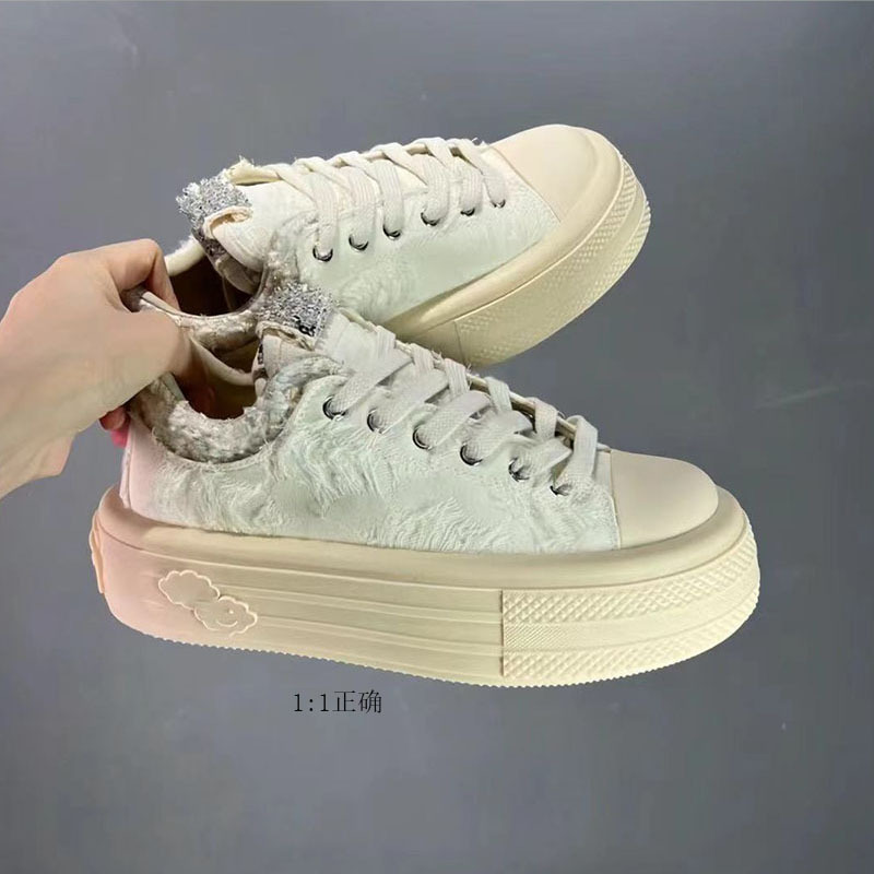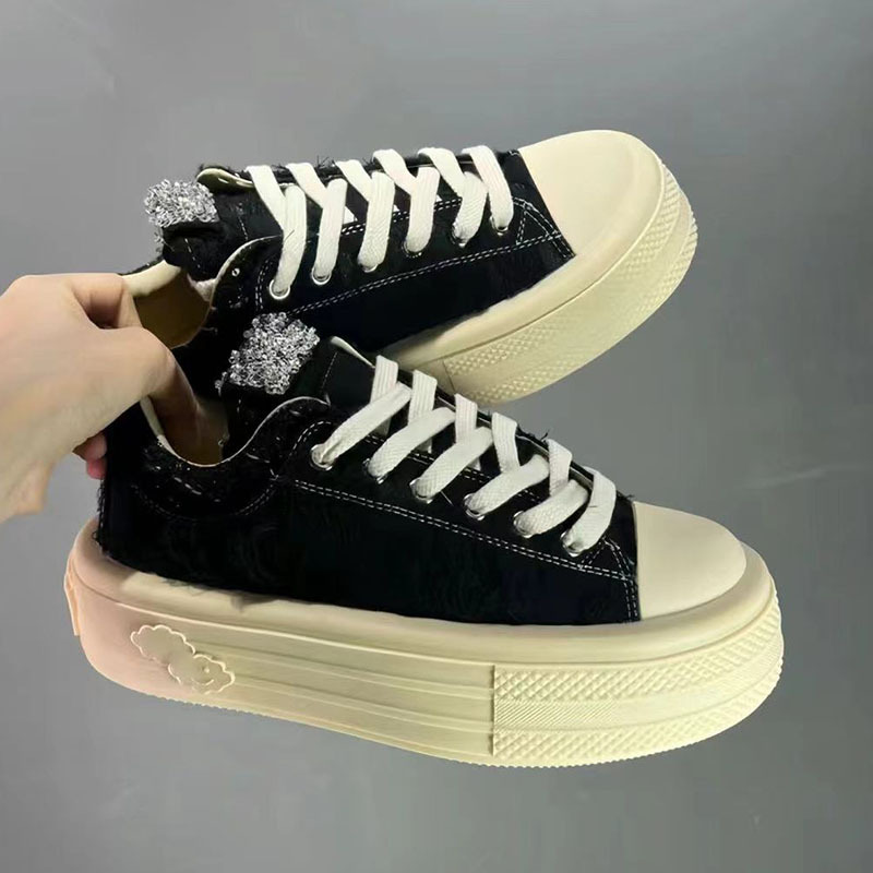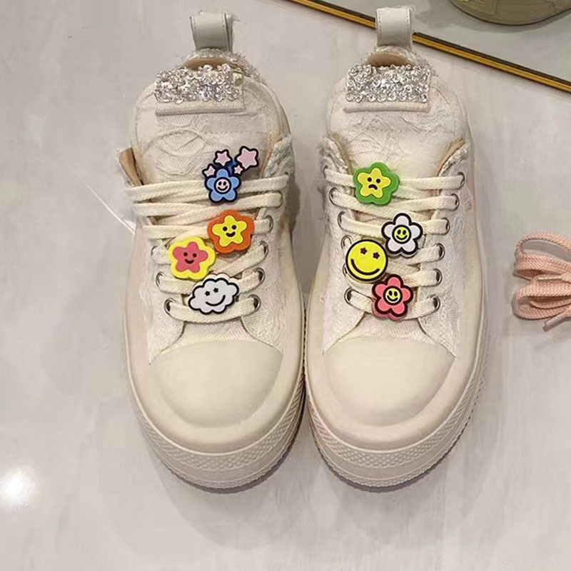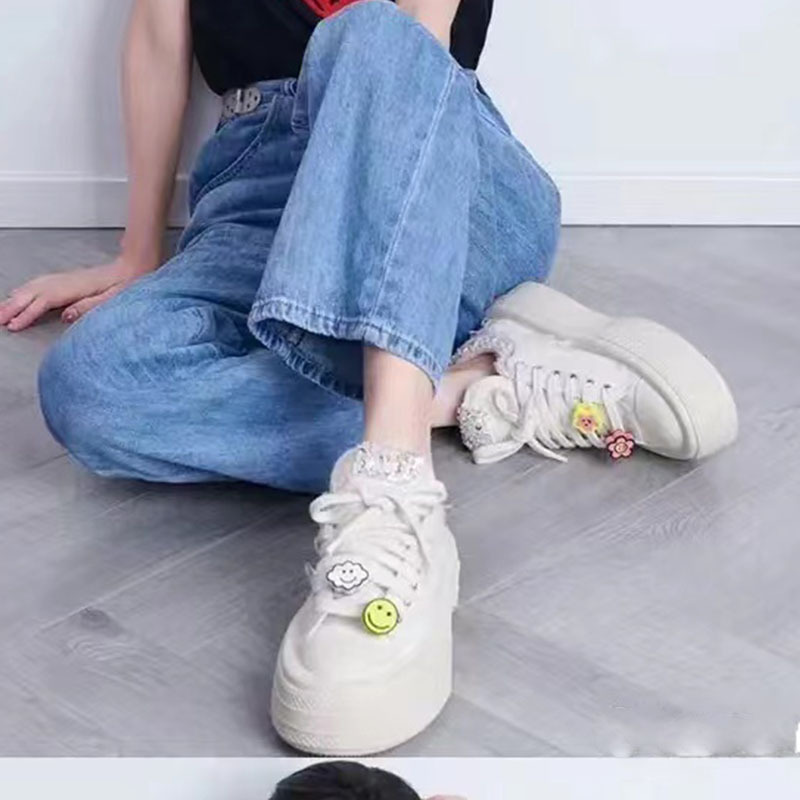 Zhao Lusi 같은 스타일 스포츠 캐주얼 신발 2024 새로운 틈새 두꺼운 바닥 매달린 웃는 얼굴 신발 여성용 캔버스 신발 증가스토어 가기
