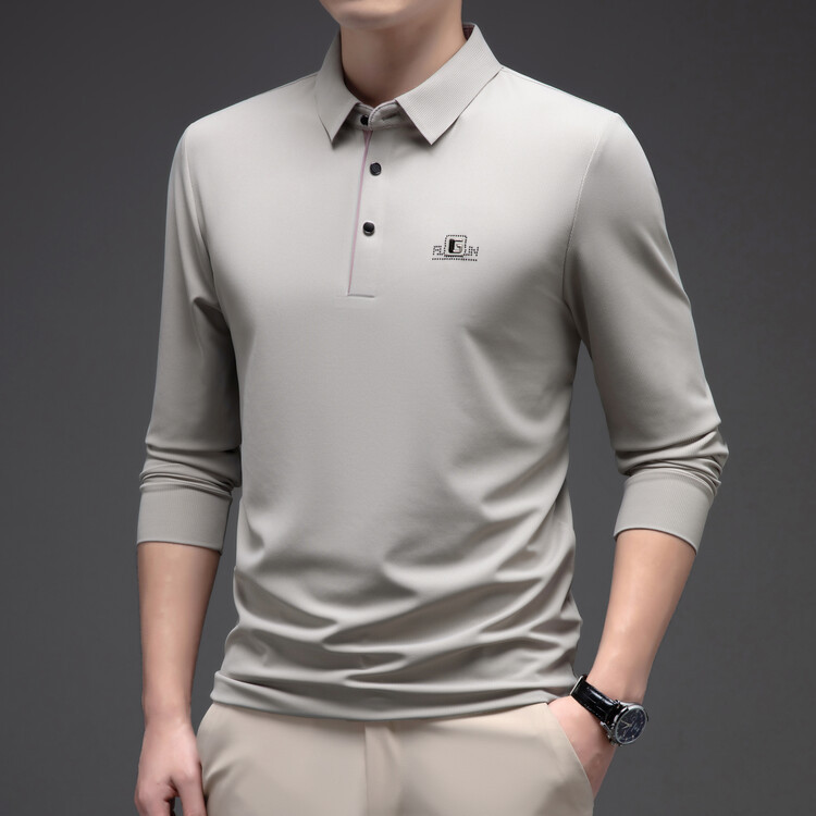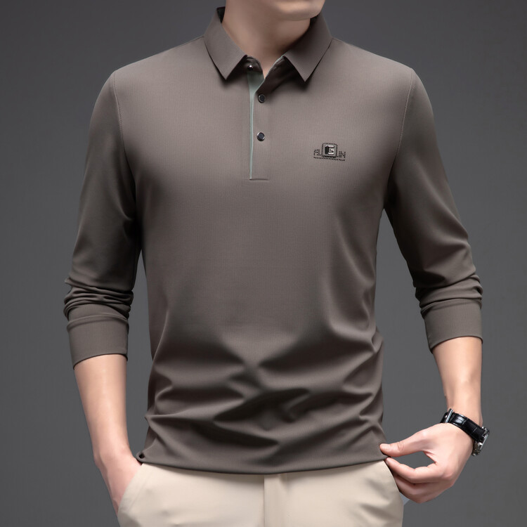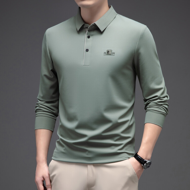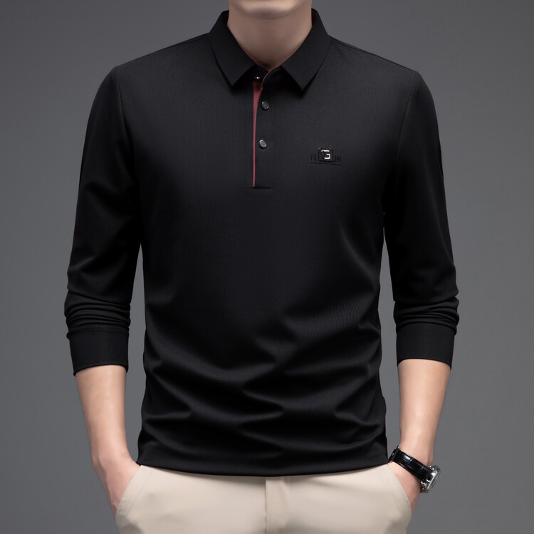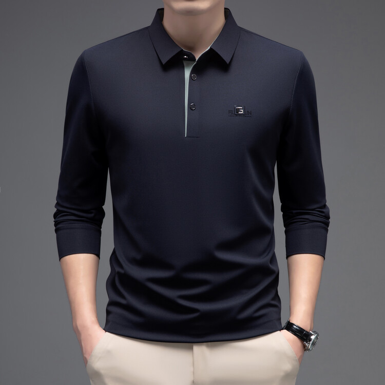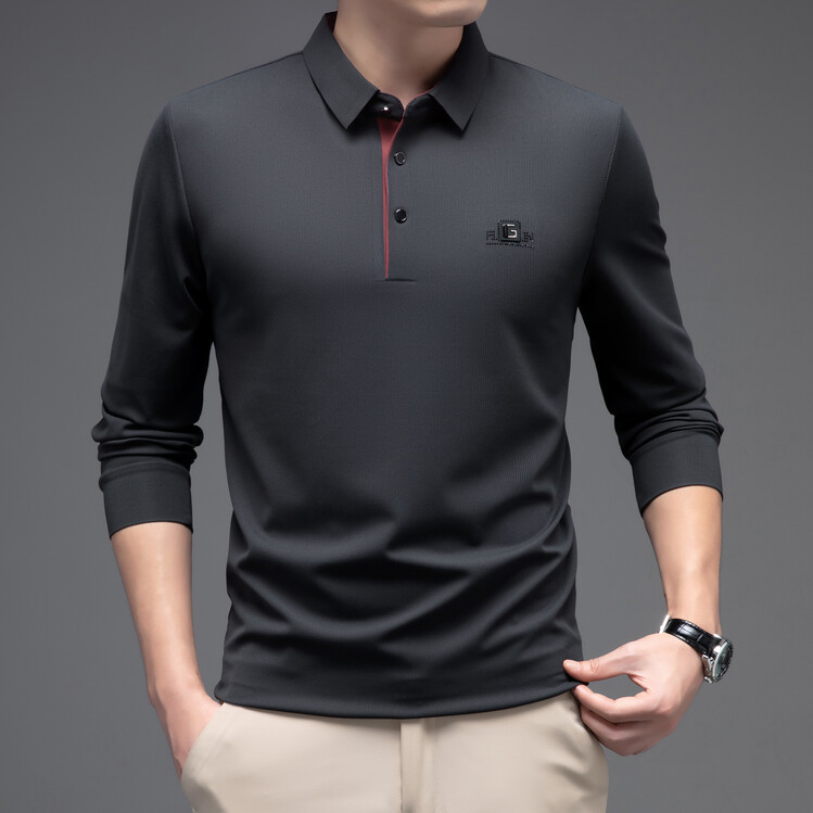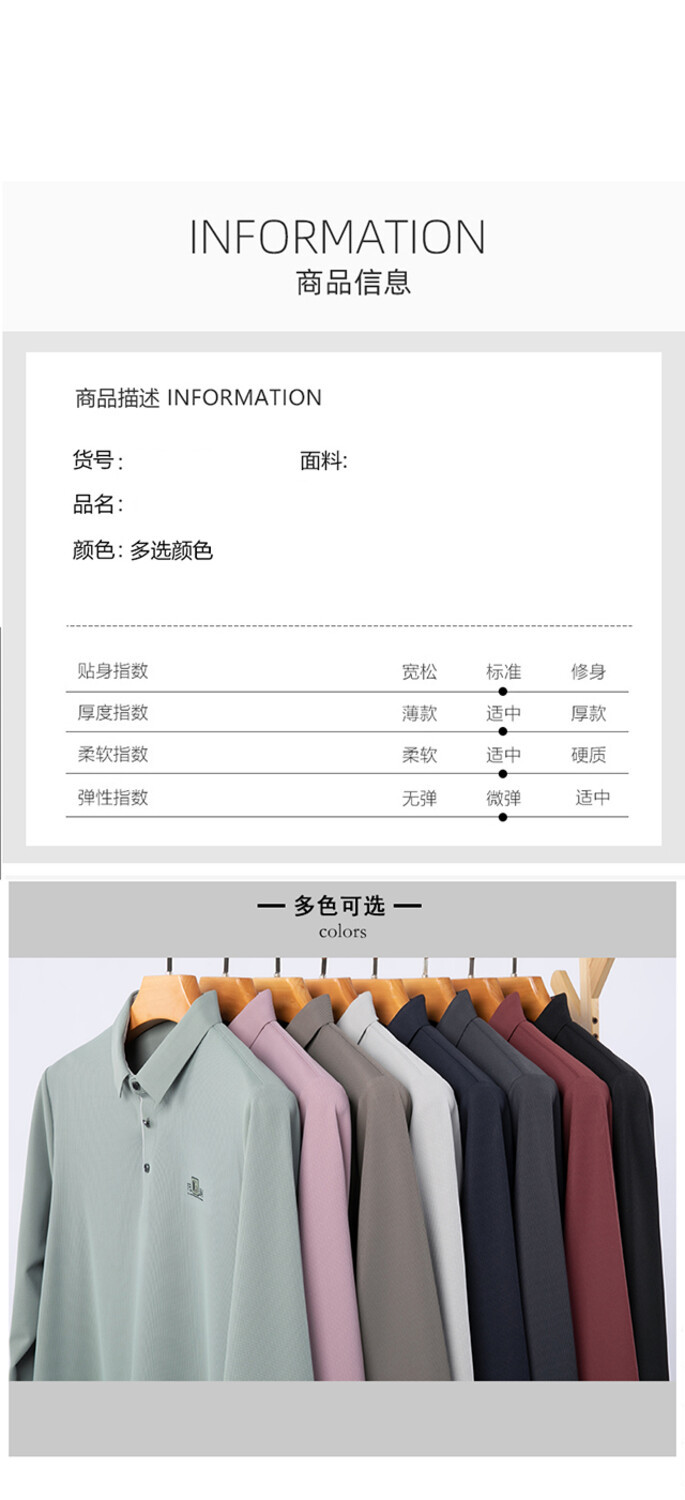 2024 가을 새로운 하이 엔드 긴팔 폴로 셔츠 남자의 가을 얇은 옷깃 안티 주름 트레이스 비즈니스 셔츠