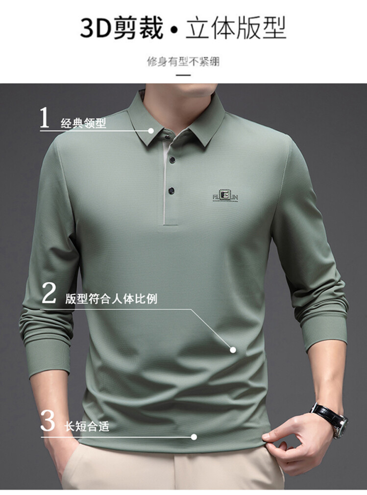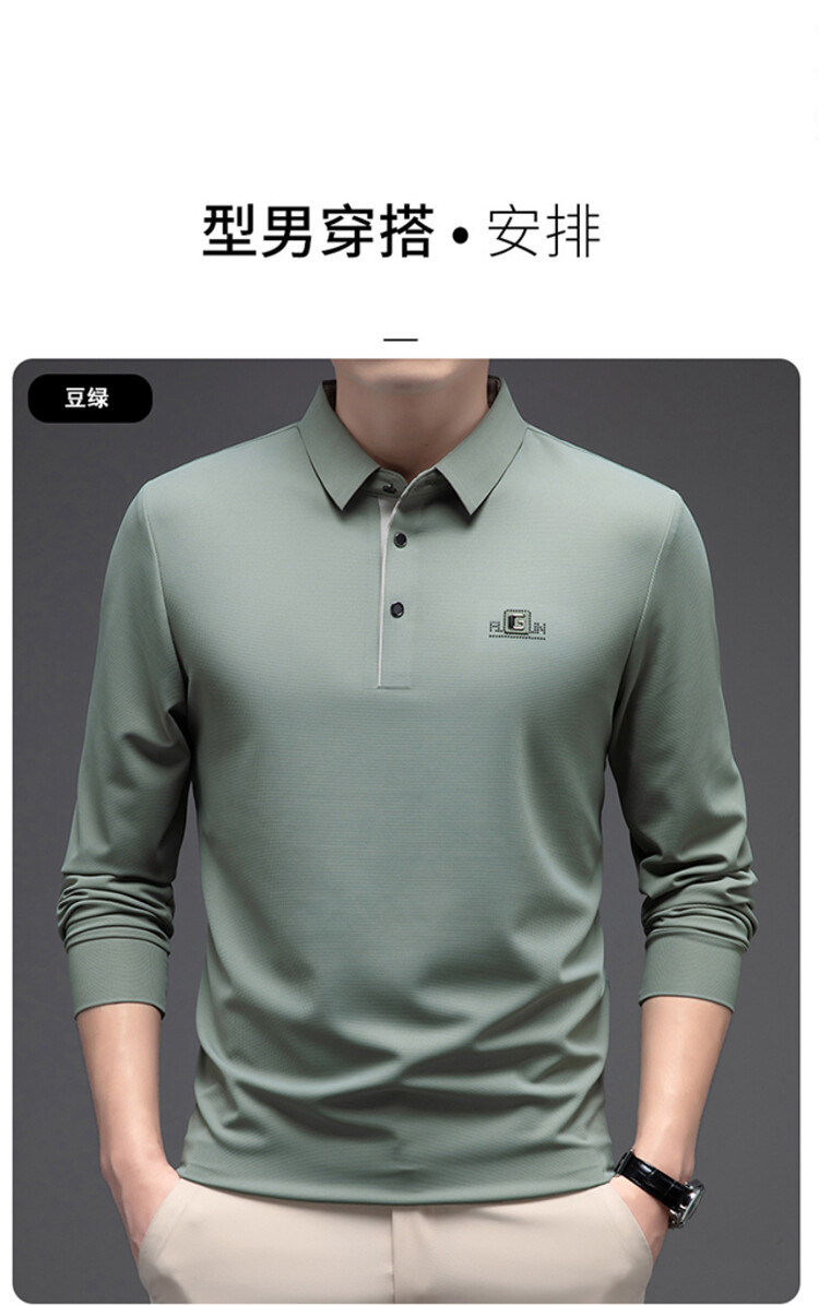 2024 가을 새로운 하이 엔드 긴팔 폴로 셔츠 남자의 가을 얇은 옷깃 안티 주름 트레이스 비즈니스 셔츠스토어 가기