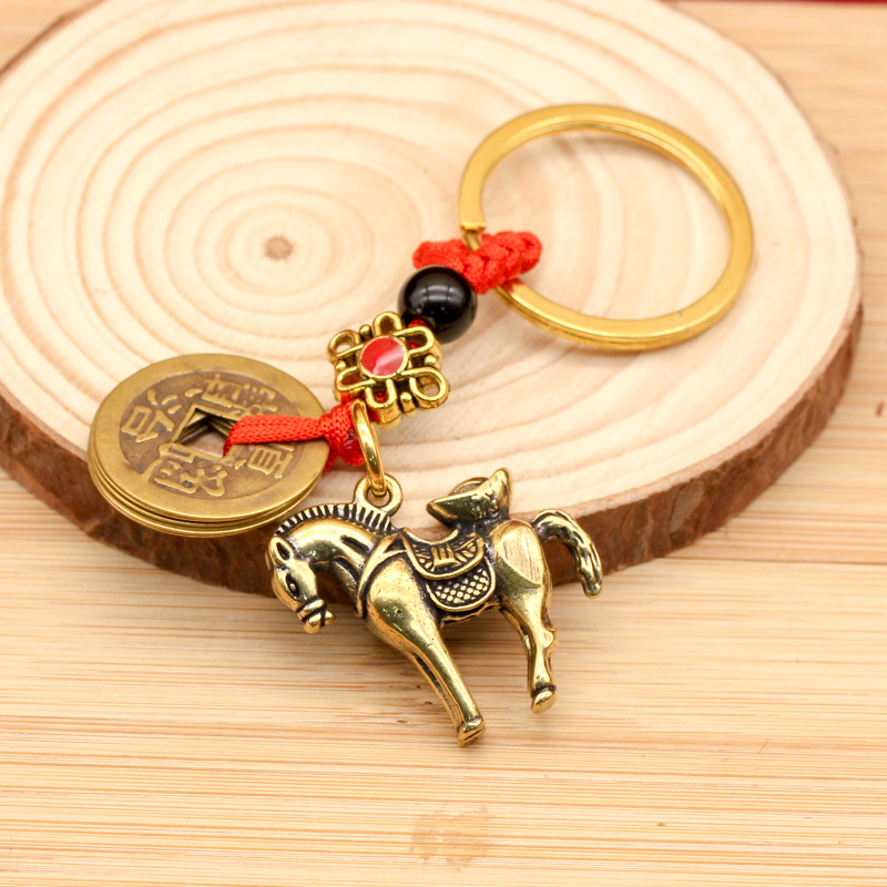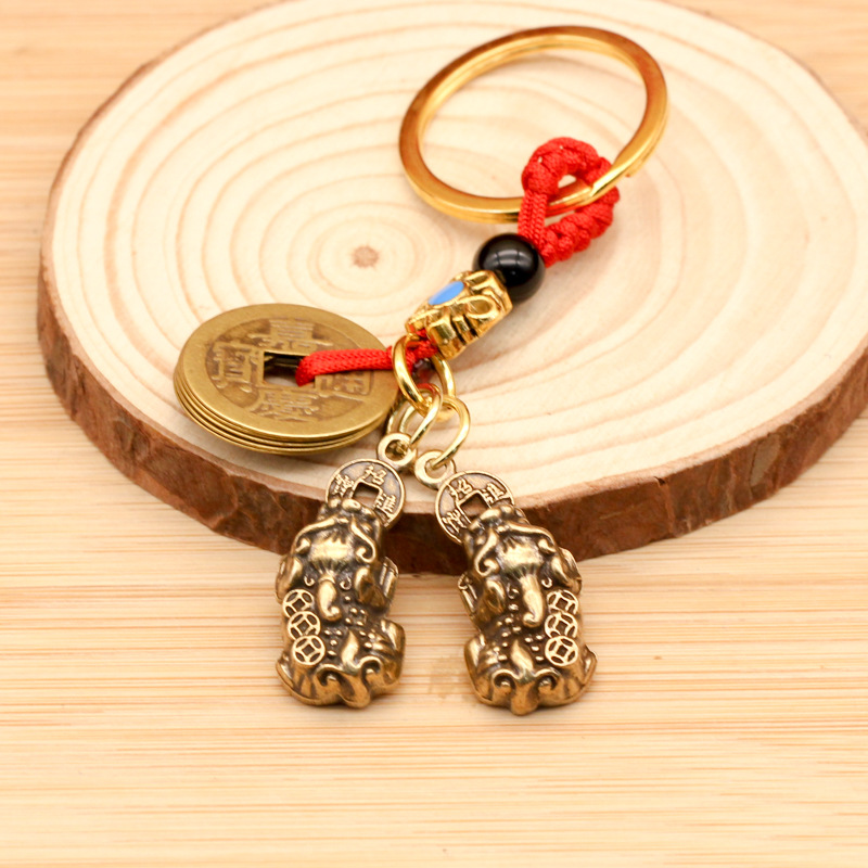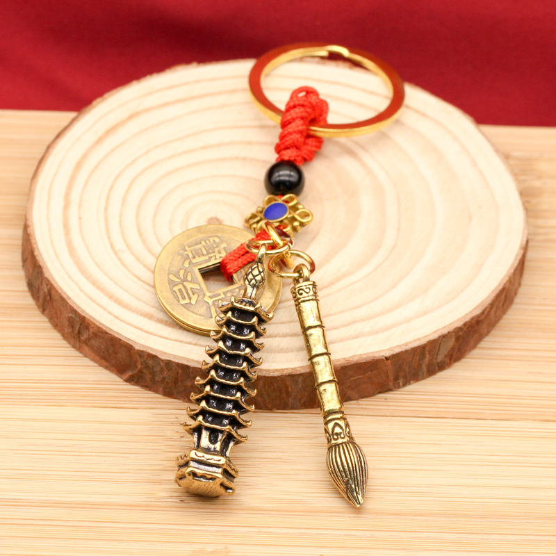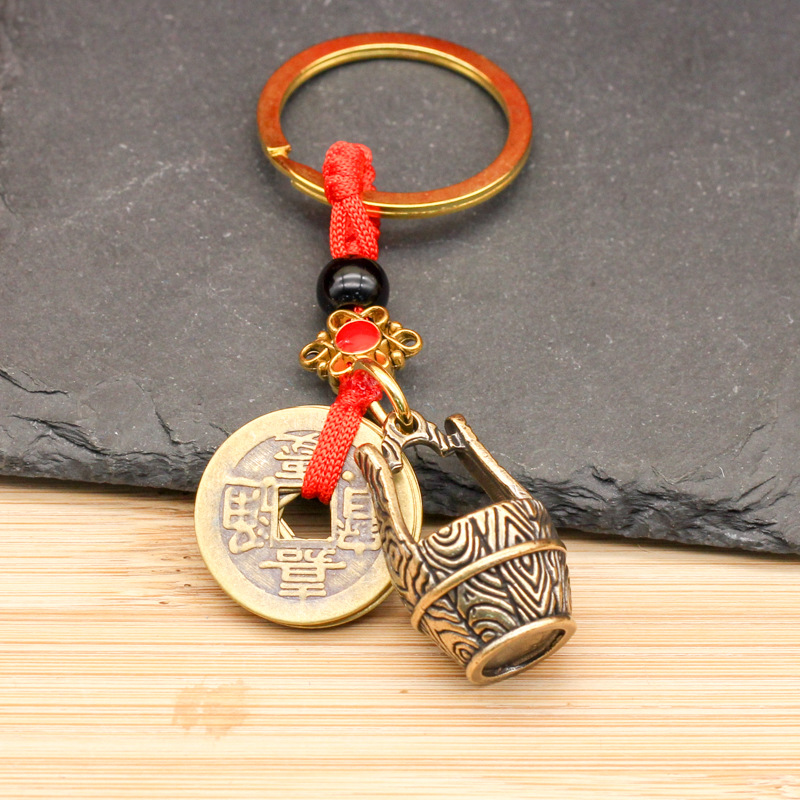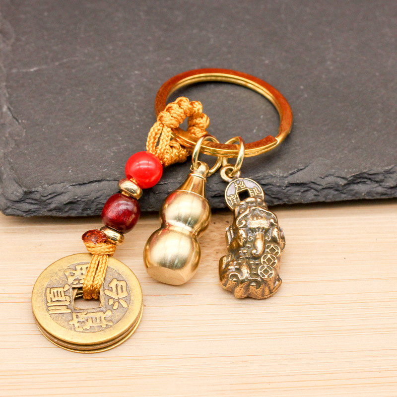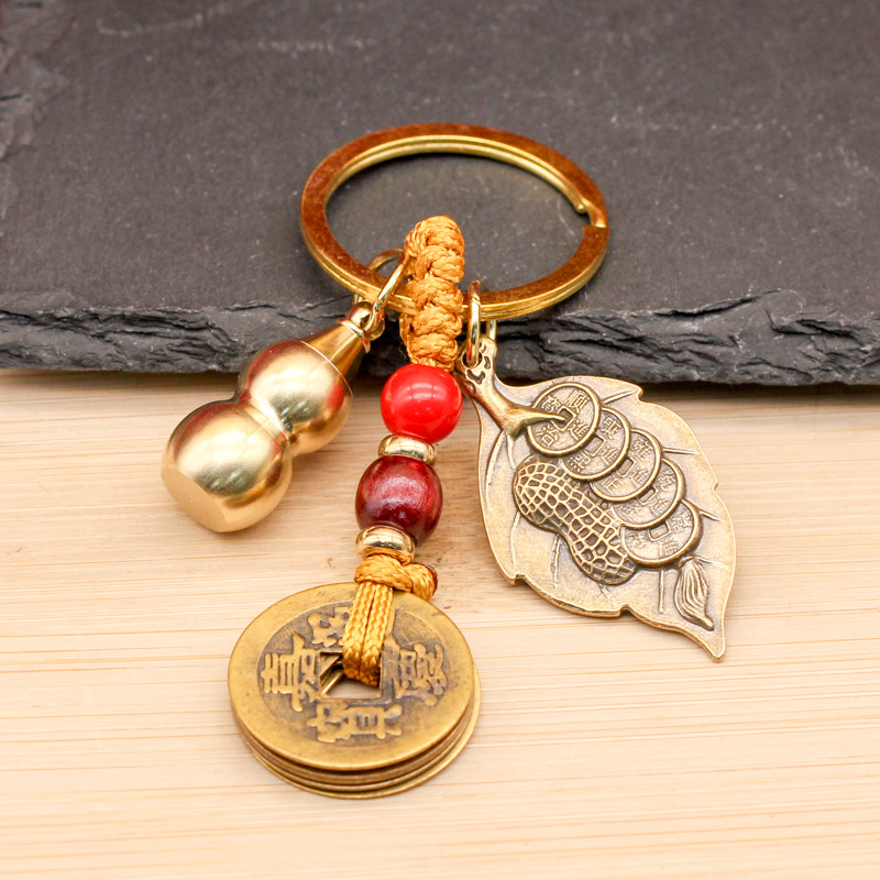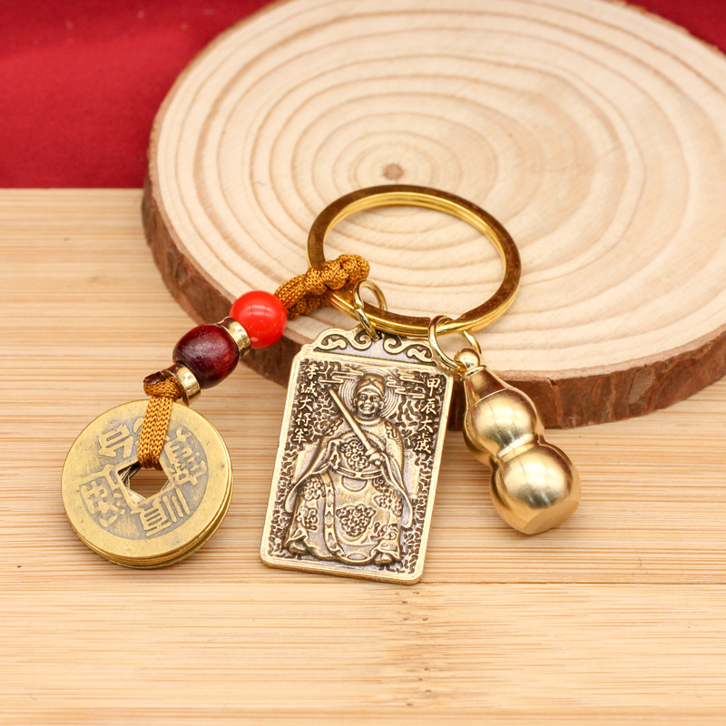 황동 Taiji Bagua 키 체인 펜던트 5 명의 황제 펜던트 펜던트 Ping 자동차 키 체인 펜던트