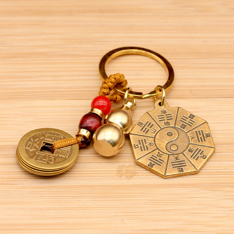 황동 Taiji Bagua 키 체인 펜던트 5 명의 황제 펜던트 펜던트 Ping 자동차 키 체인 펜던트스토어 가기