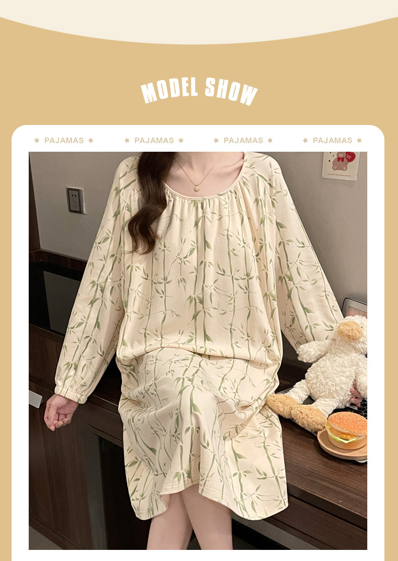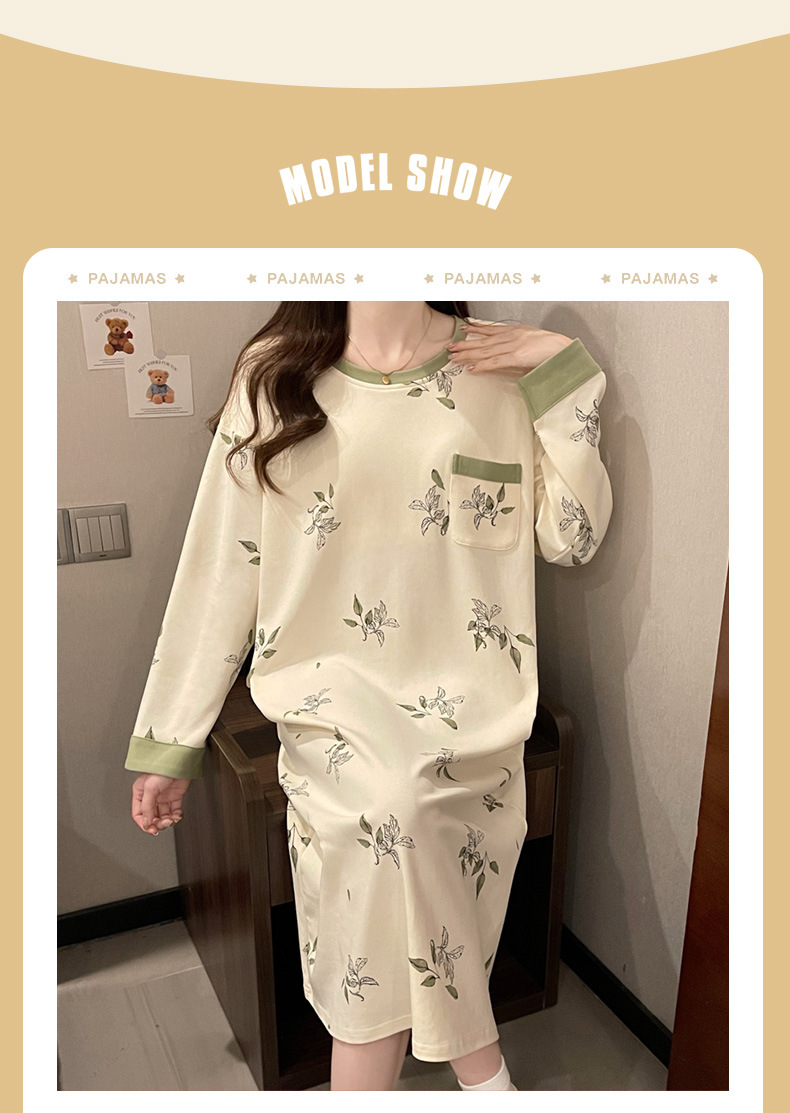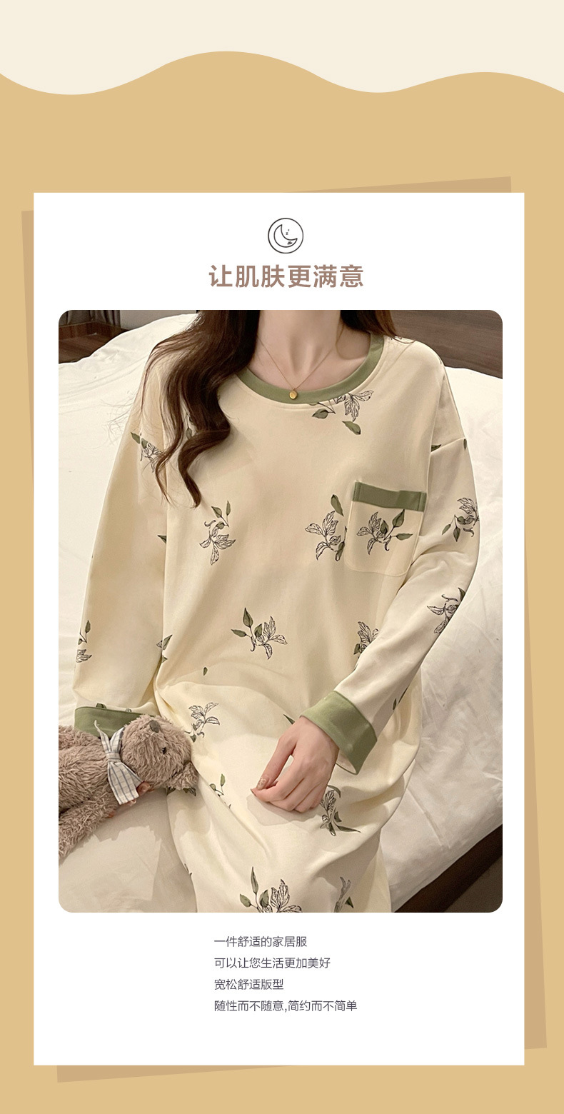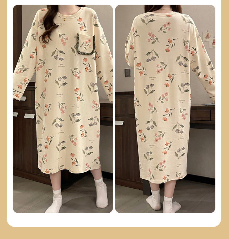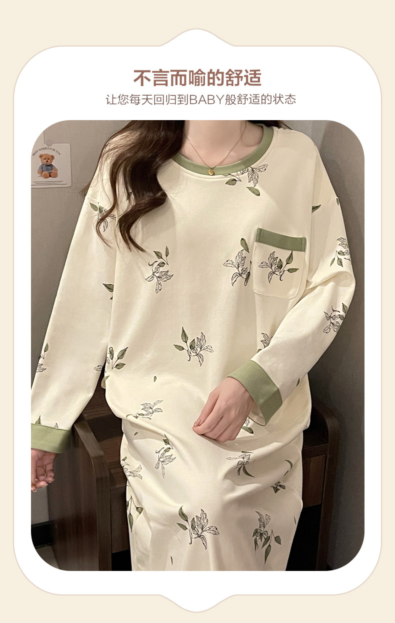 2024 새로운 긴팔 잠옷 가슴 패드 여성의 가을과 겨울 모조 면화 잎 느슨한 외부 착용 홈 의류 잠옷스토어 가기