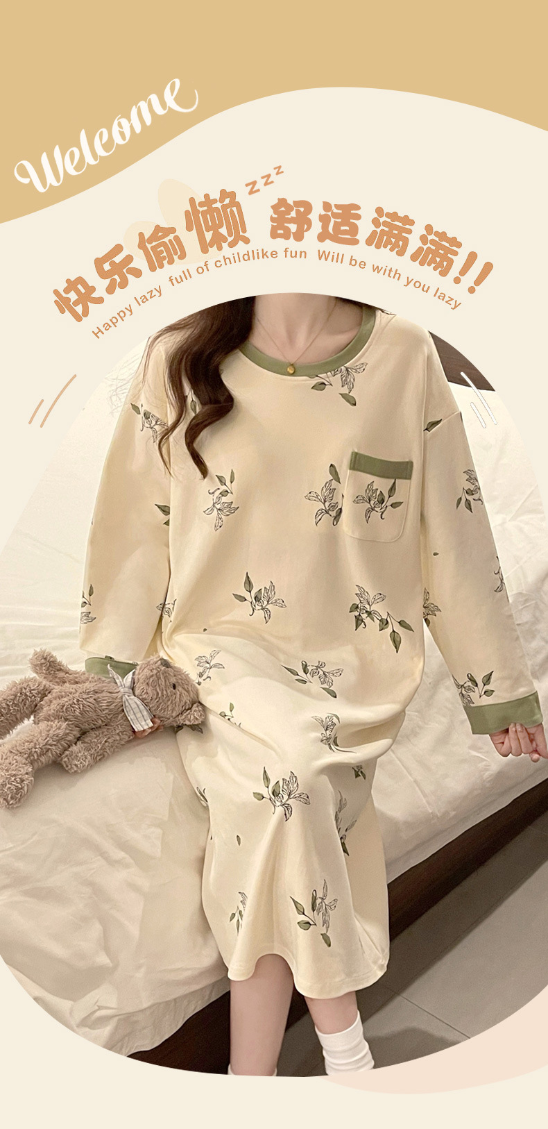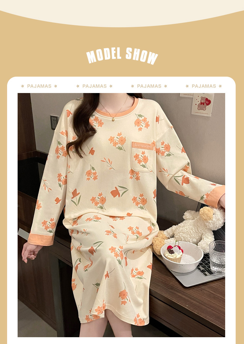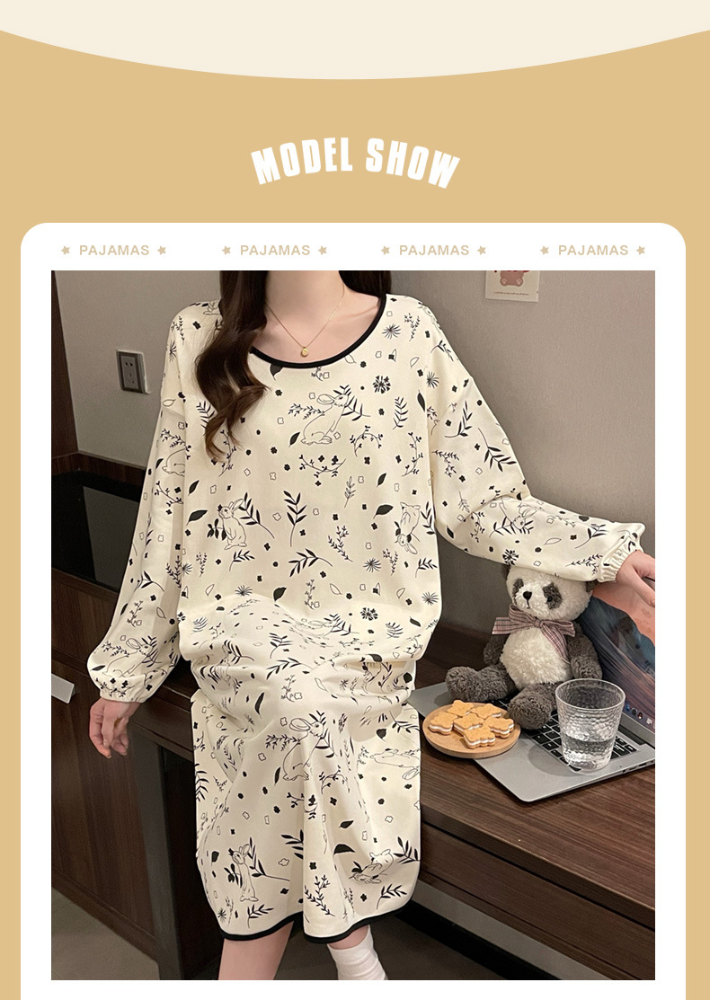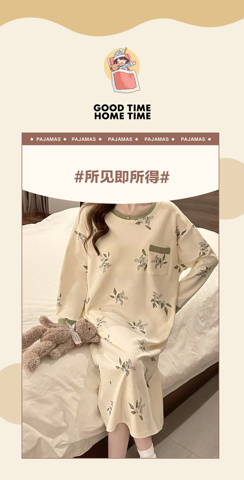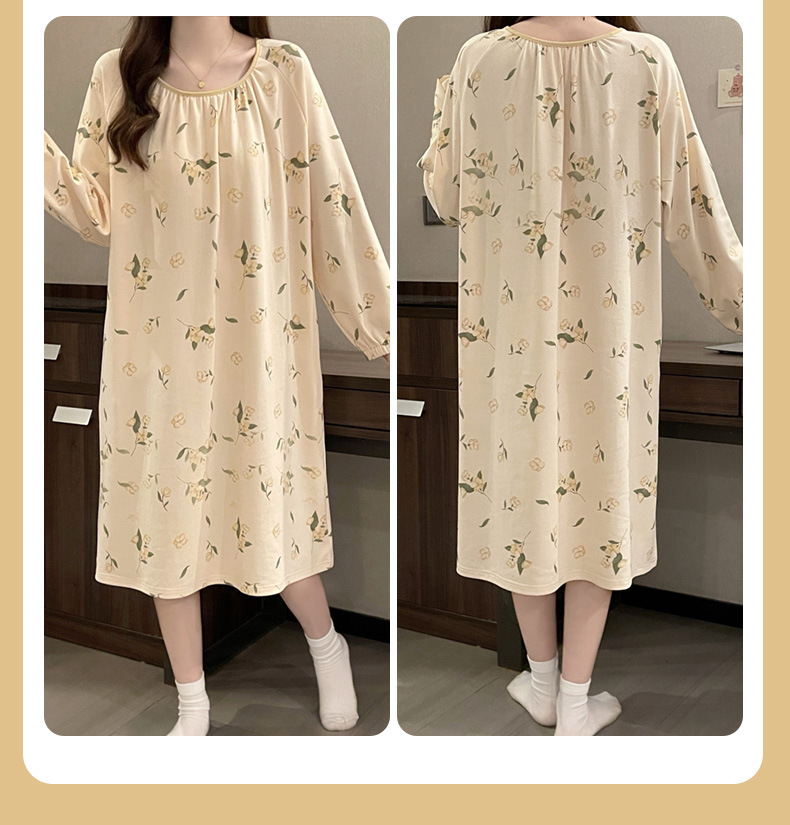 2024 새로운 긴팔 잠옷 가슴 패드 여성의 가을과 겨울 모조 면화 잎 느슨한 외부 착용 홈 의류 잠옷스토어 가기