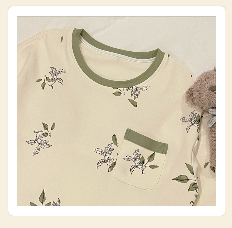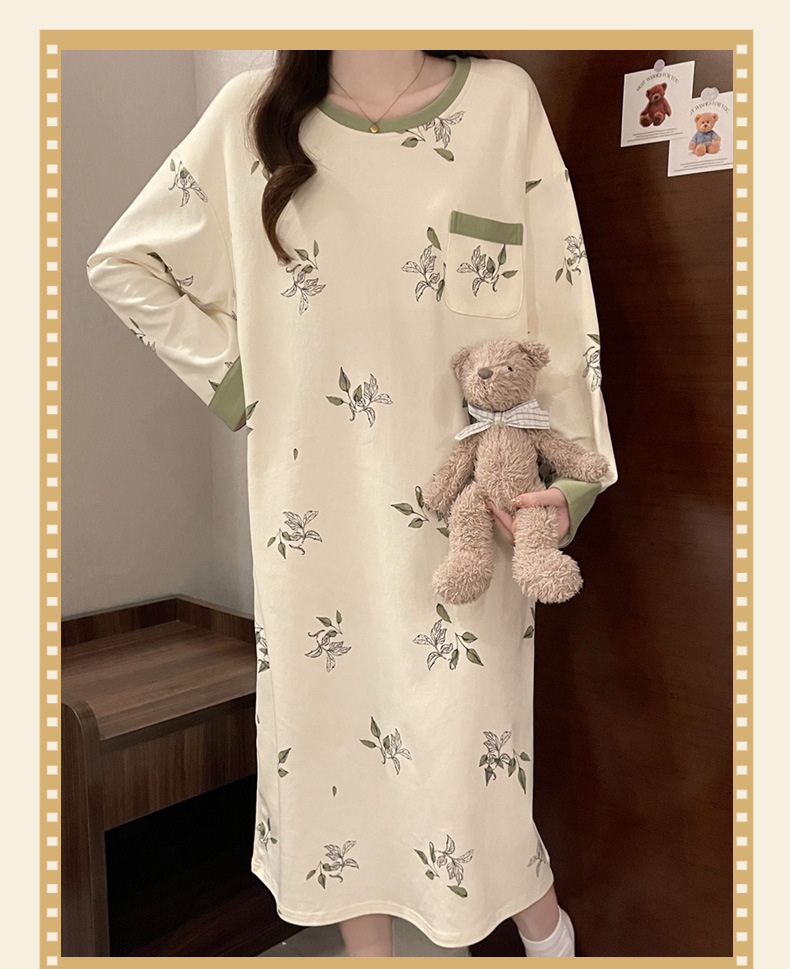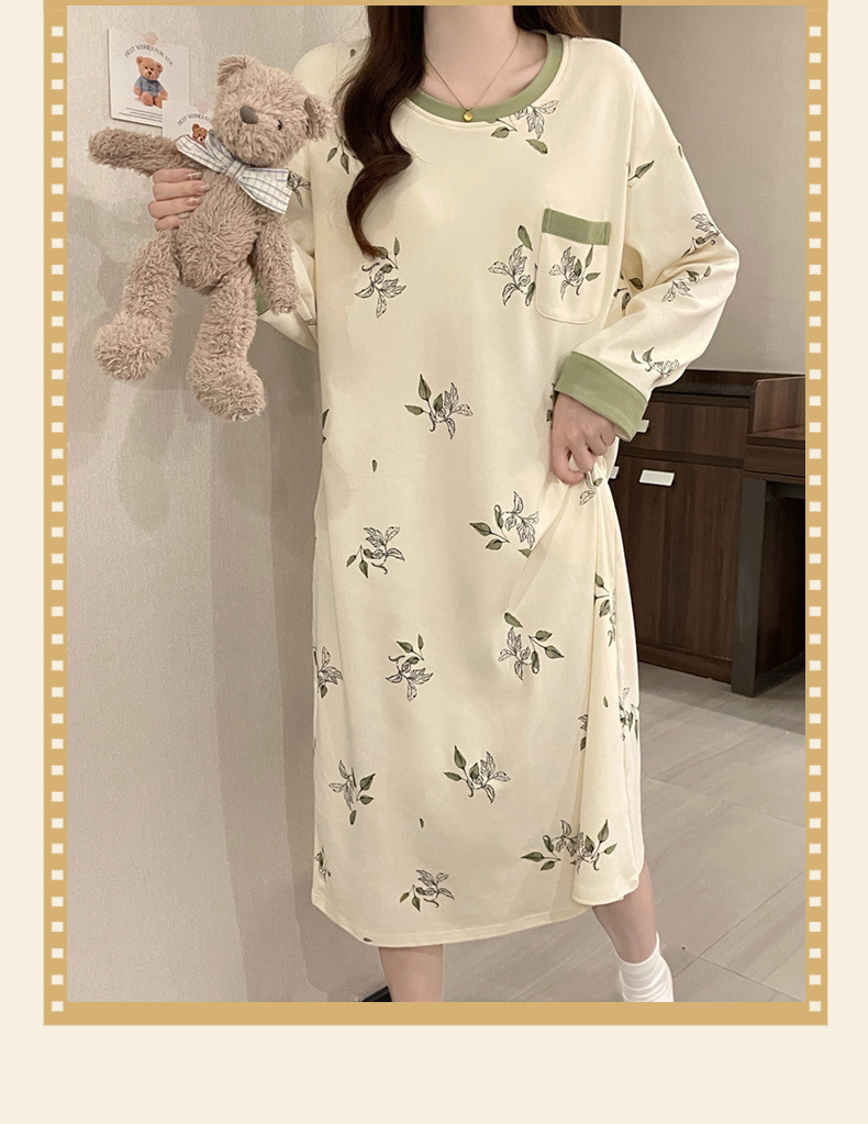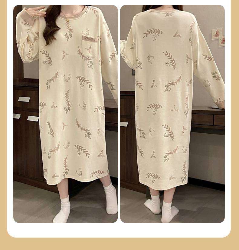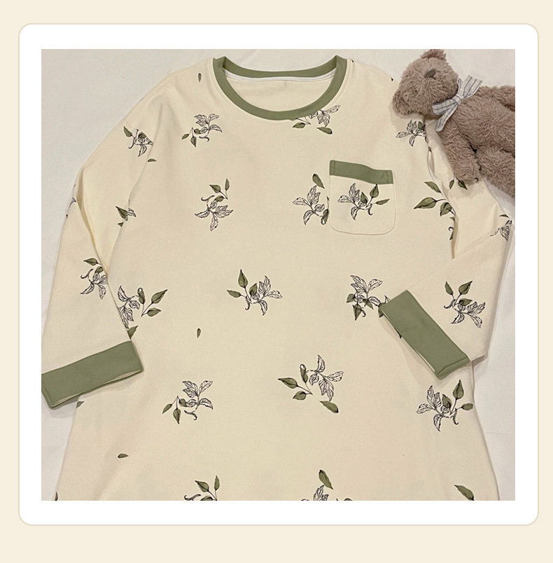 2024 새로운 긴팔 잠옷 가슴 패드 여성의 가을과 겨울 모조 면화 잎 느슨한 외부 착용 홈 의류 잠옷
