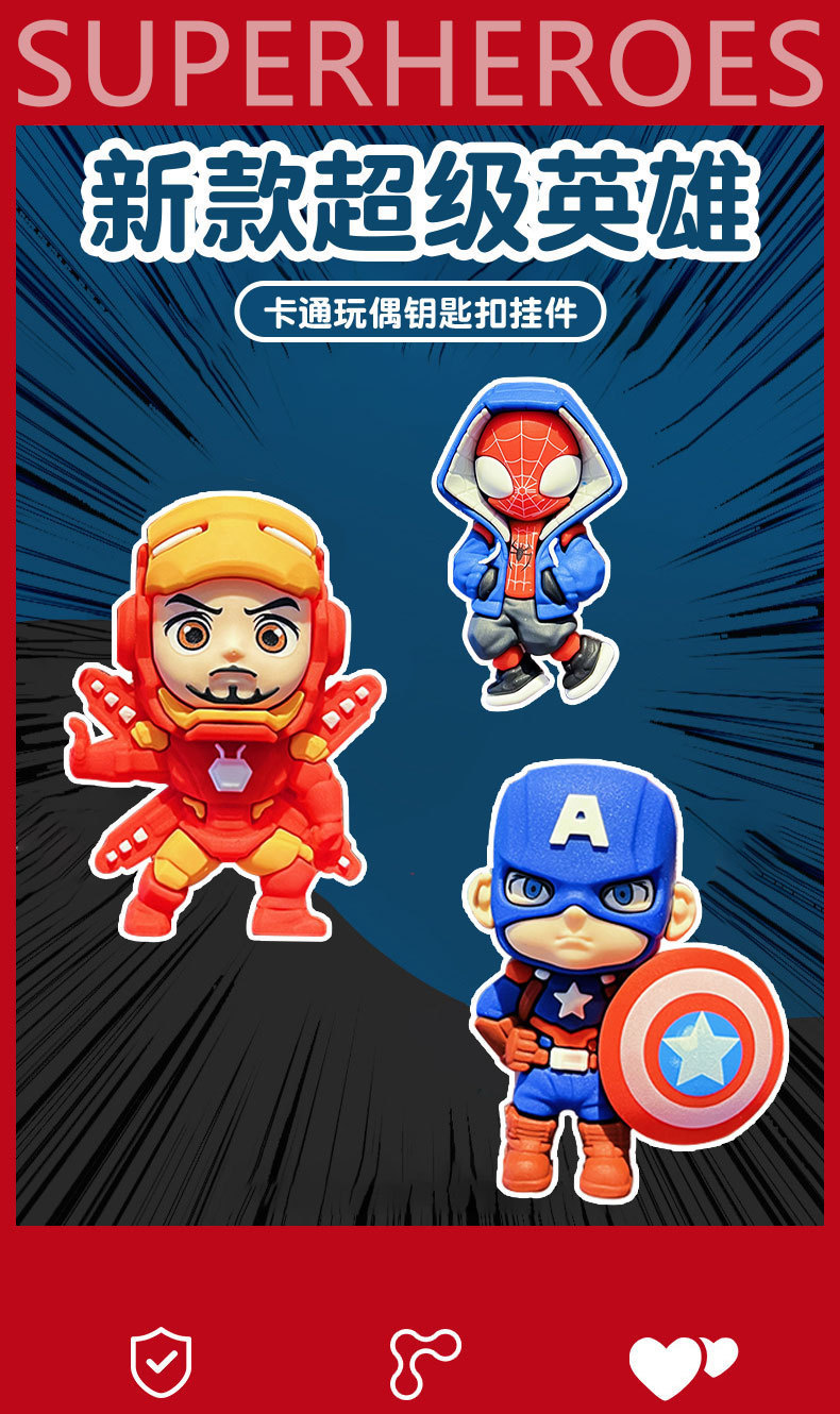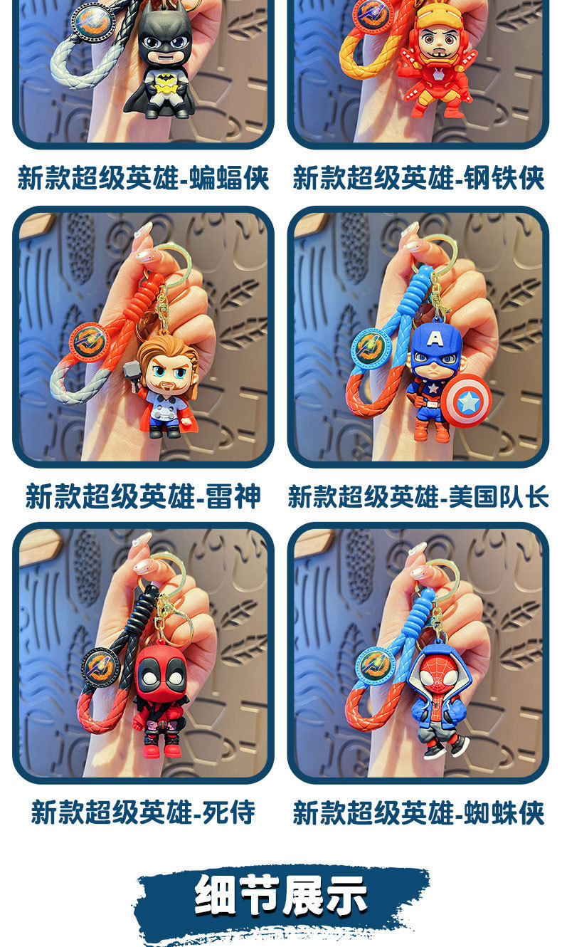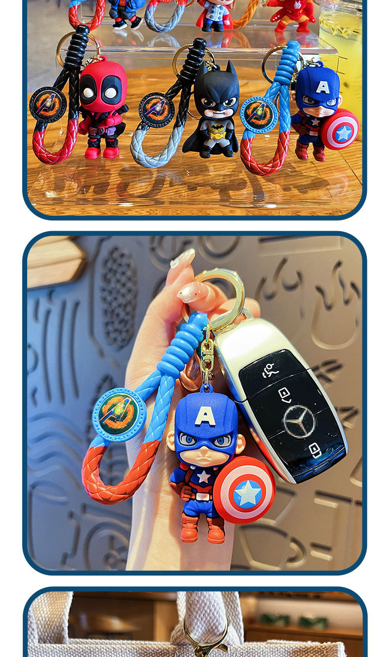 새로운 슈퍼 히어로 자동차 키 체인 만화 캡틴 아메리카 아이언 맨 인형 귀여운 학교 가방 펜던트 작은 선물스토어 가기