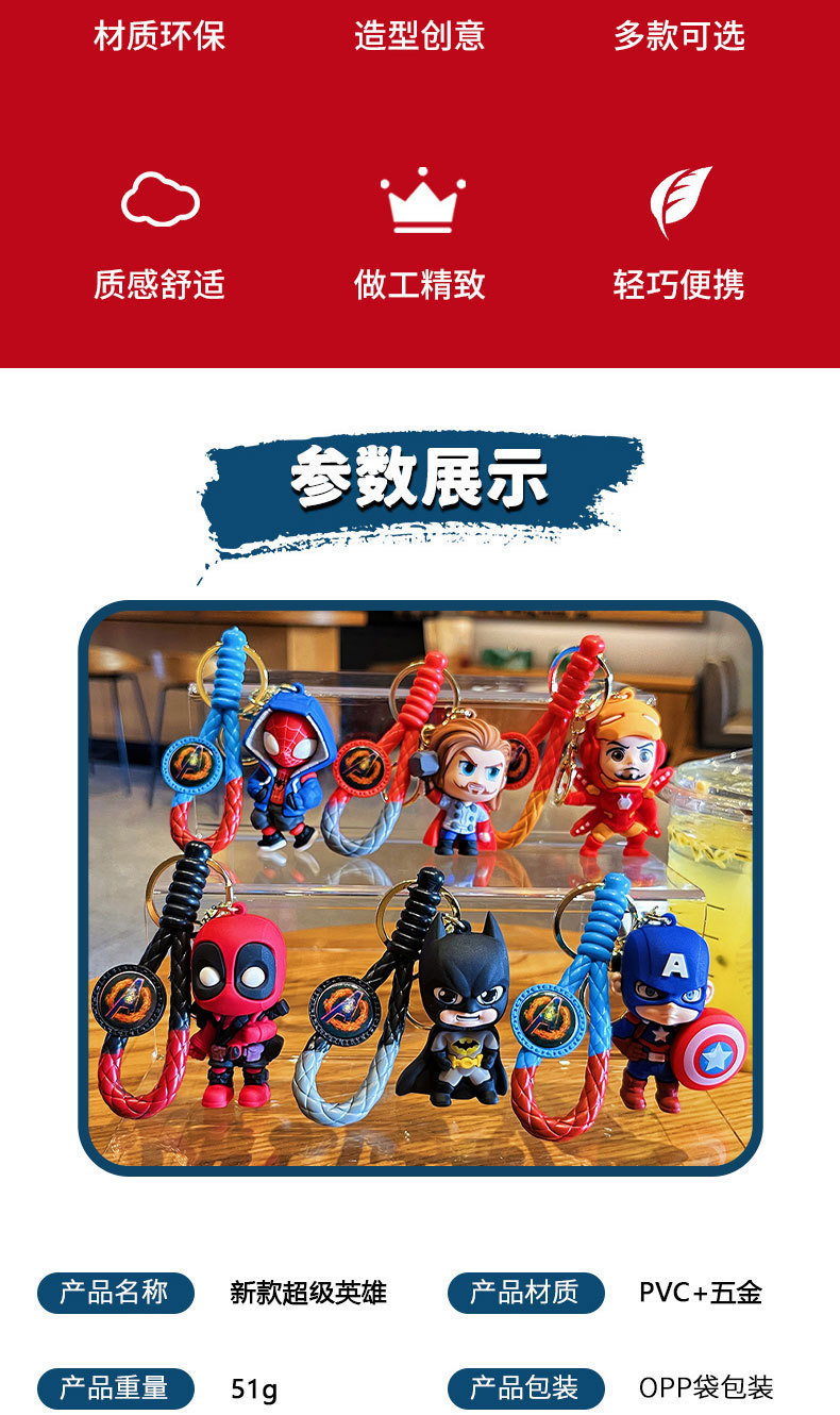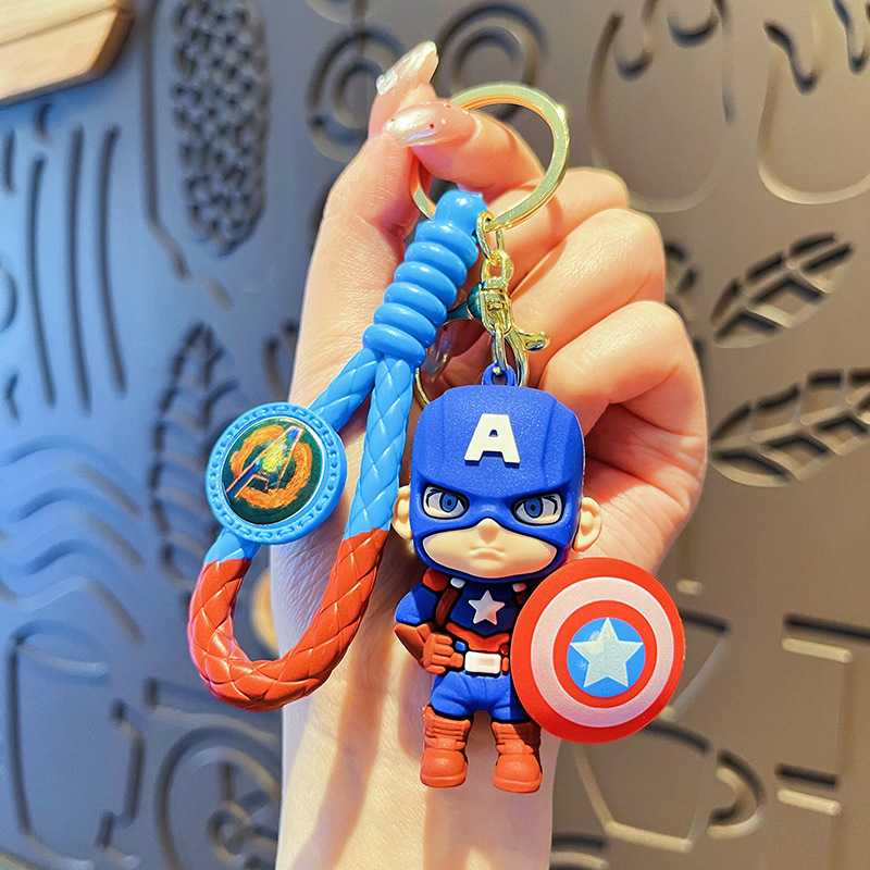 새로운 슈퍼 히어로 자동차 키 체인 만화 캡틴 아메리카 아이언 맨 인형 귀여운 학교 가방 펜던트 작은 선물