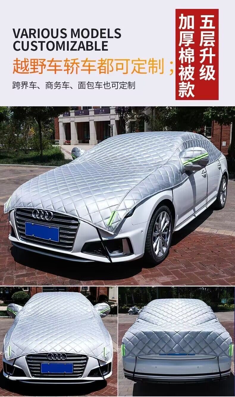 제조업체 맞춤형 도매 대형 하프 자동차 커버, 서리 방지, 동결 방지, 눈 방지, 자외선 차단, 단열 및 차양 하프 커버