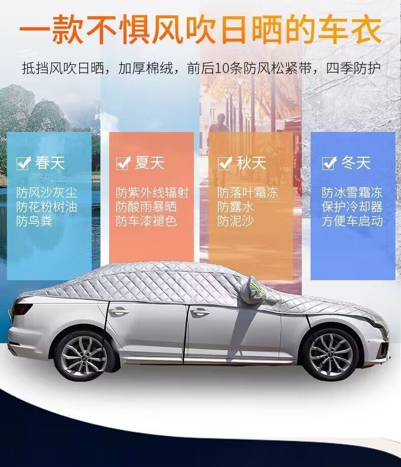 제조업체 맞춤형 도매 대형 하프 자동차 커버, 서리 방지, 동결 방지, 눈 방지, 자외선 차단, 단열 및 차양 하프 커버스토어 가기