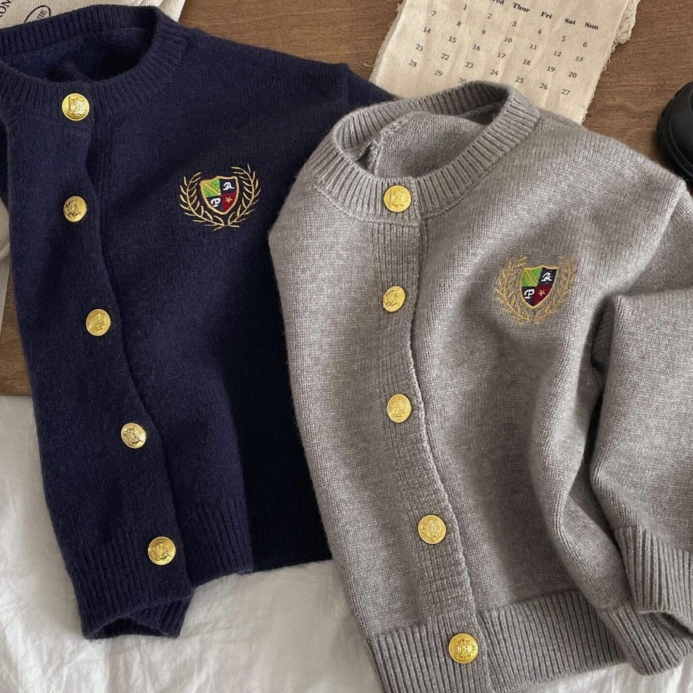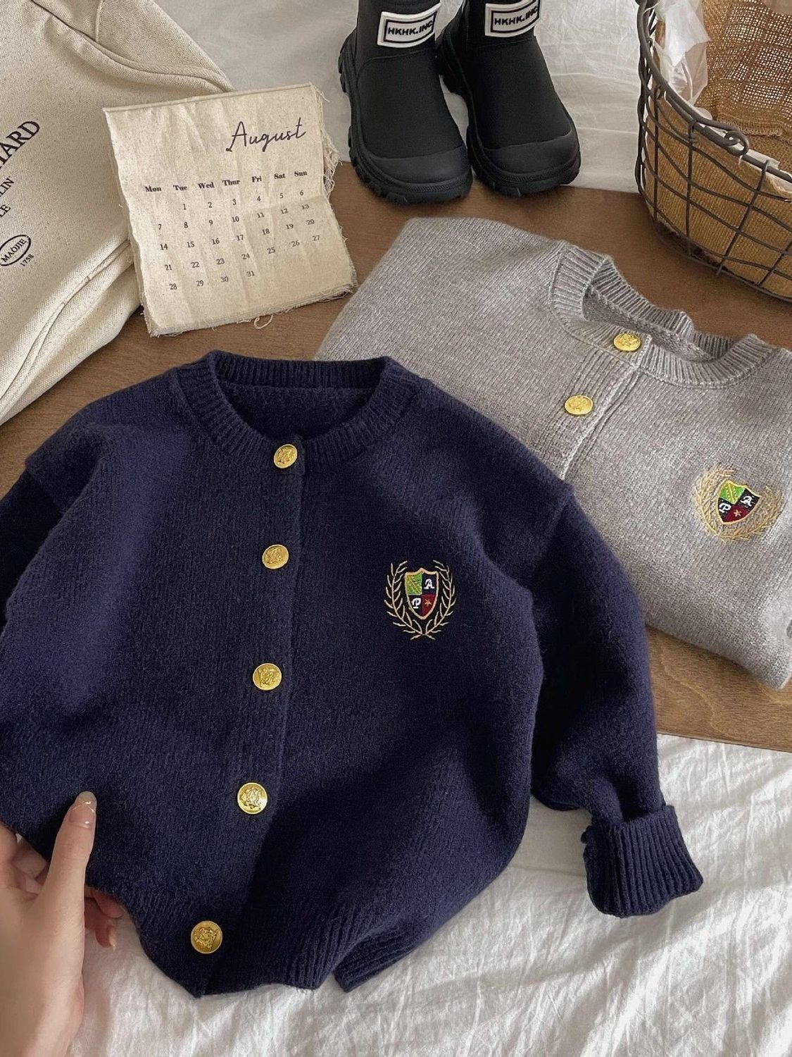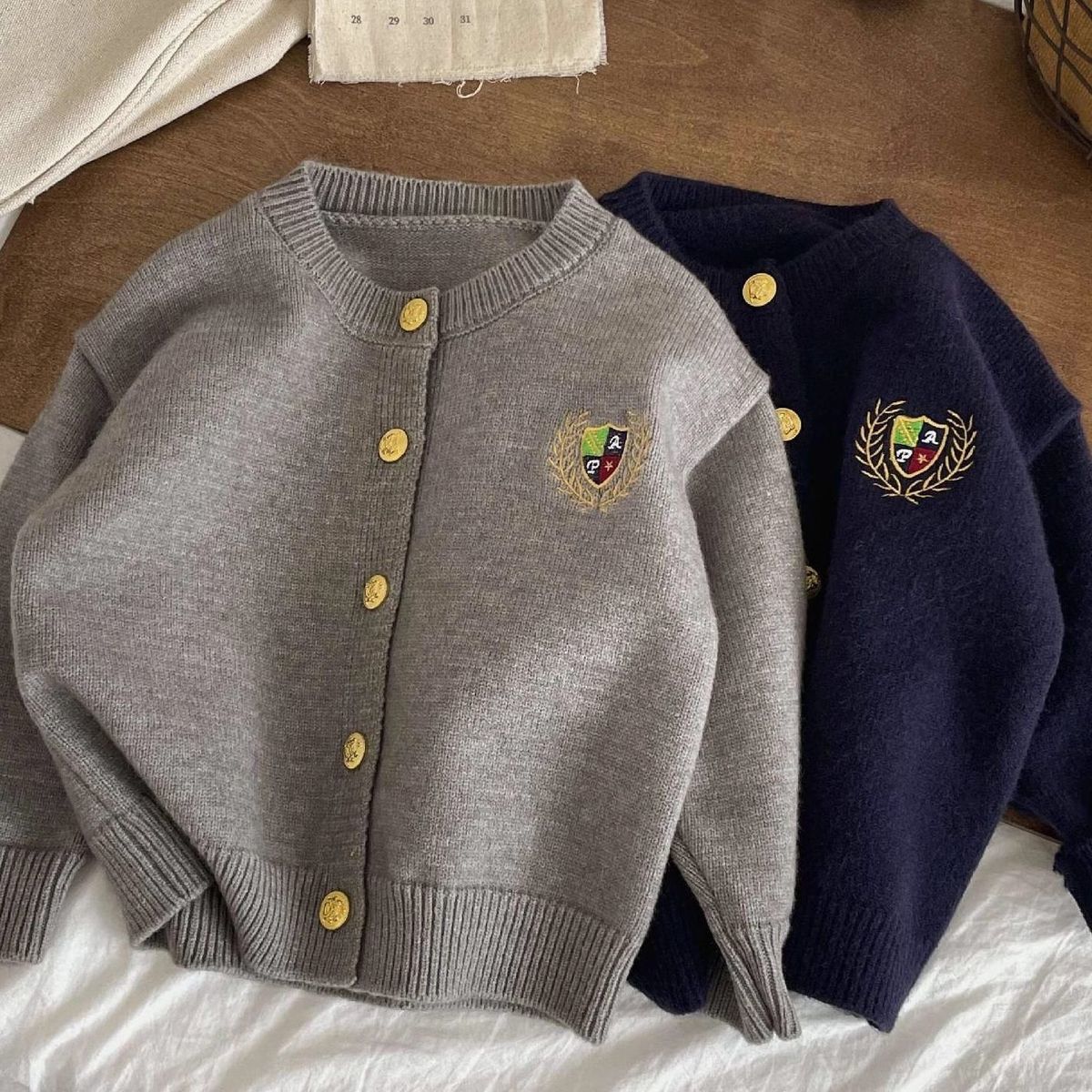 어린이 아카데미 스타일 봄과 가을 스웨터 카디건 2024 소년 소녀 한국 스타일 탑 자수 솔리드 컬러 패션 코트 트렌디