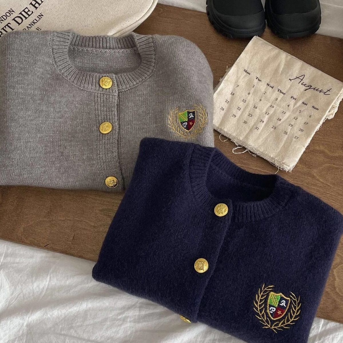 어린이 아카데미 스타일 봄과 가을 스웨터 카디건 2024 소년 소녀 한국 스타일 탑 자수 솔리드 컬러 패션 코트 트렌디스토어 가기