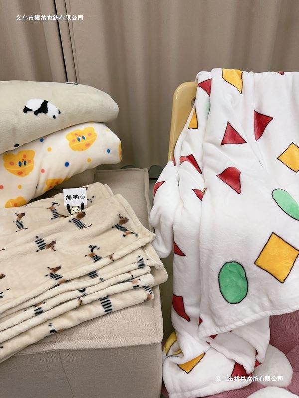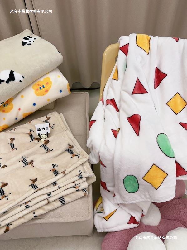 재고 있음 | Ins 스타일 가을, 겨울 두꺼운 만화 크레용 신짱 플란넬 캐주얼 플러시 담요 기숙사 시트스토어 가기