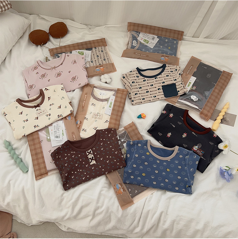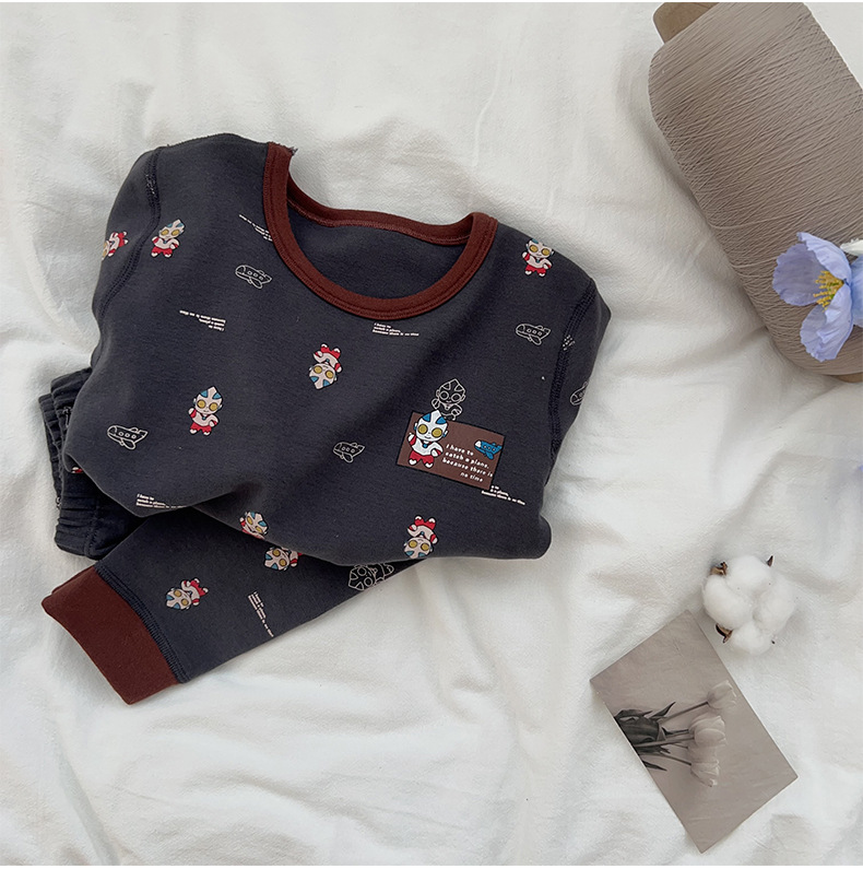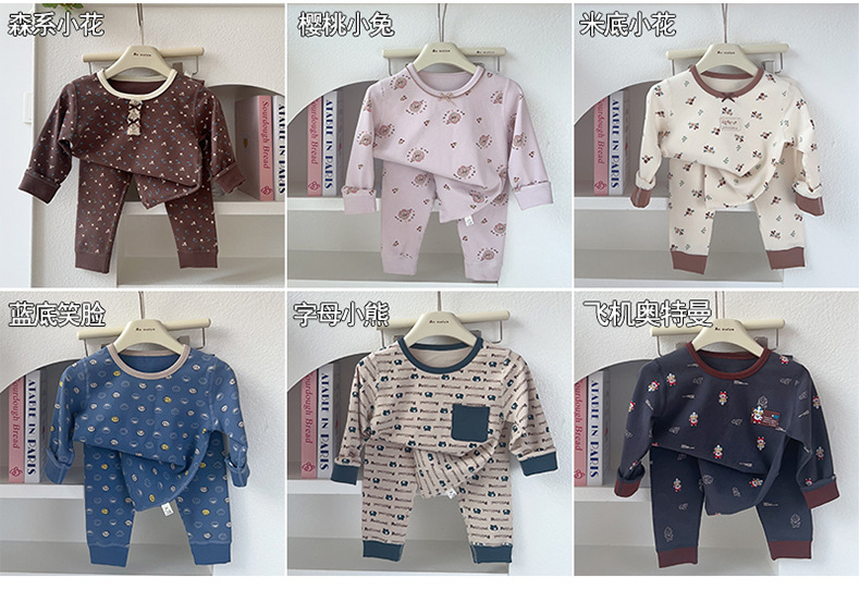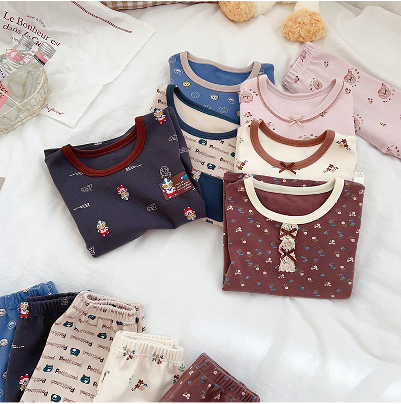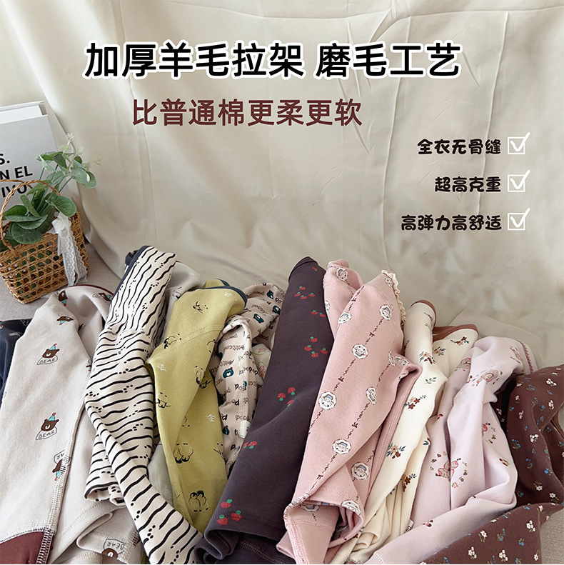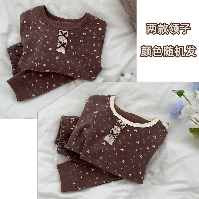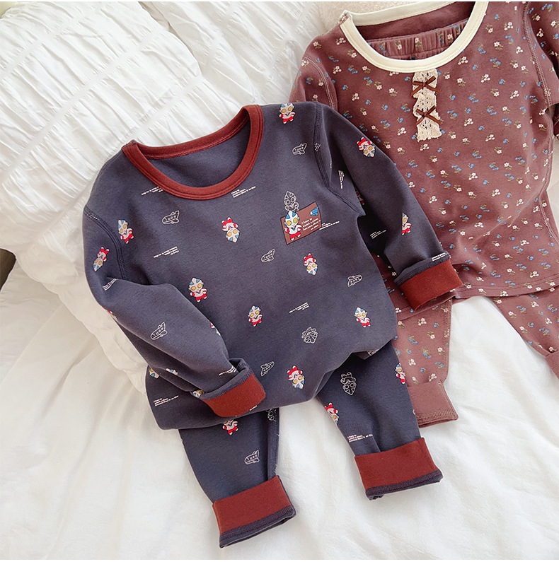 AnMeiya 어린이 울 풀 랙 세트 두꺼운 어린이 가을 옷 투피스 세트 신장 긴 스테이플 코튼 소프트 홈 의류스토어 가기