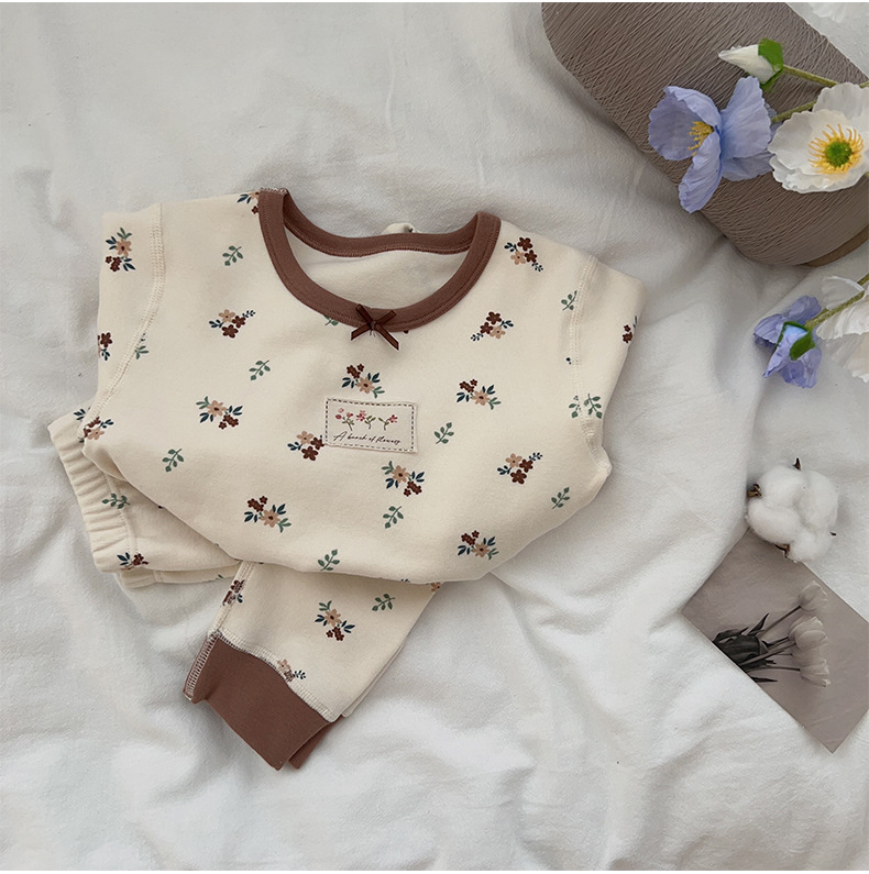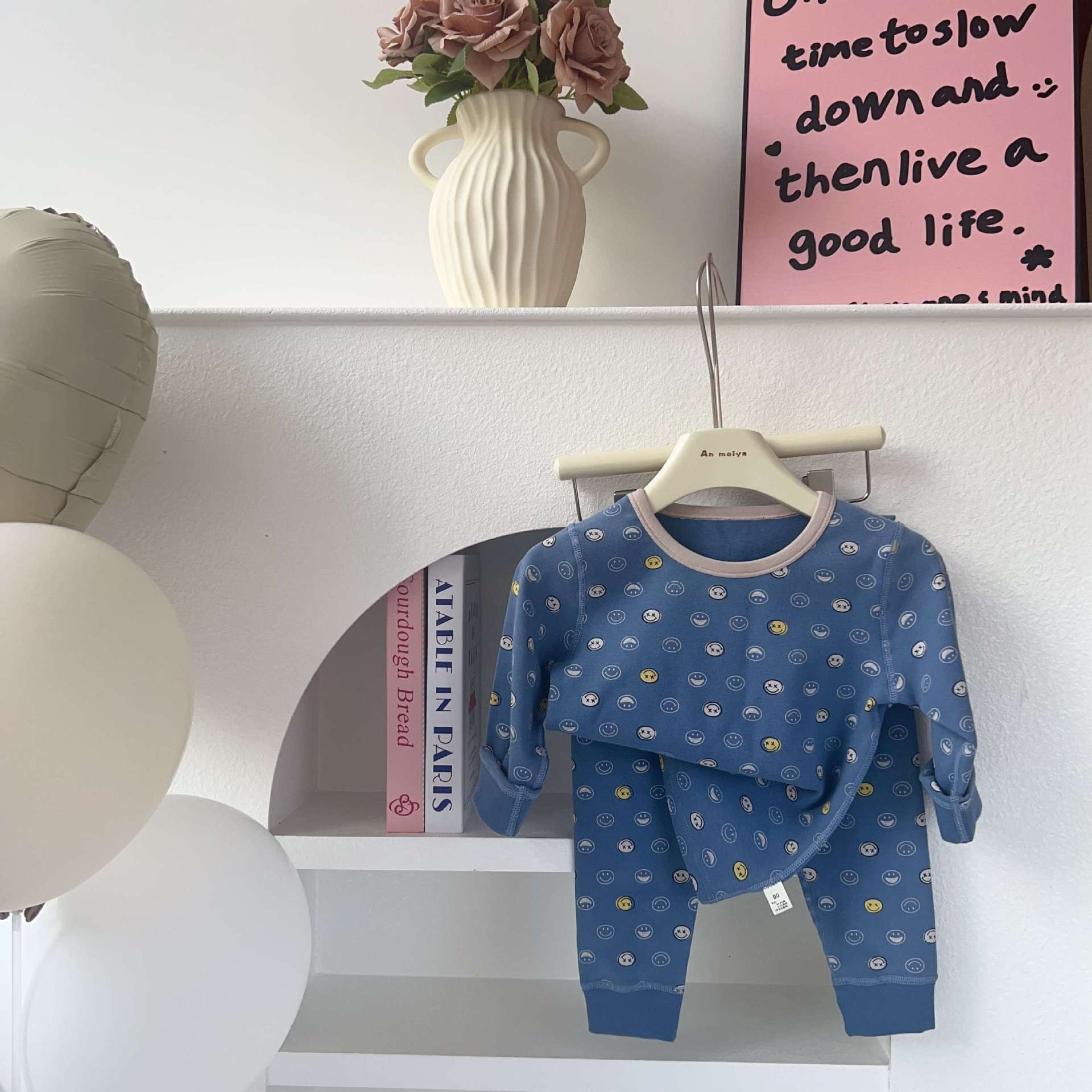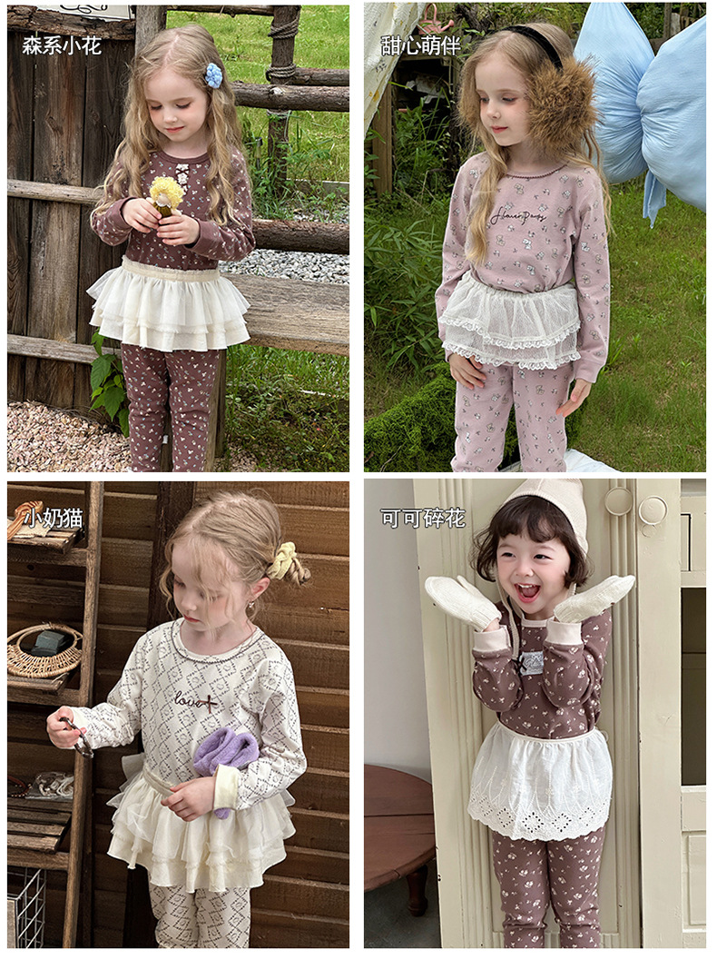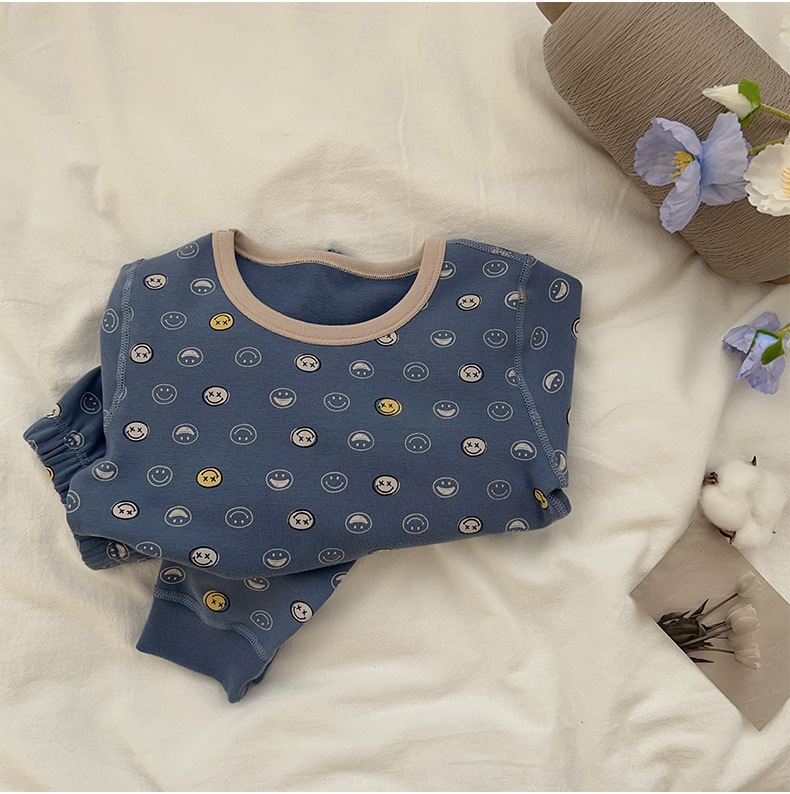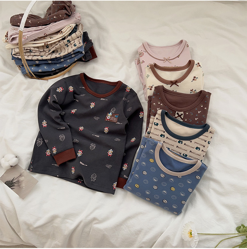 AnMeiya 어린이 울 풀 랙 세트 두꺼운 어린이 가을 옷 투피스 세트 신장 긴 스테이플 코튼 소프트 홈 의류스토어 가기