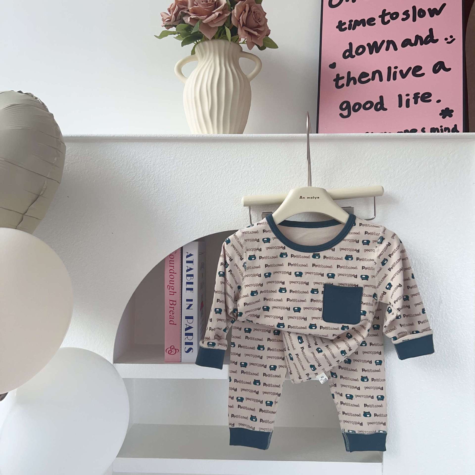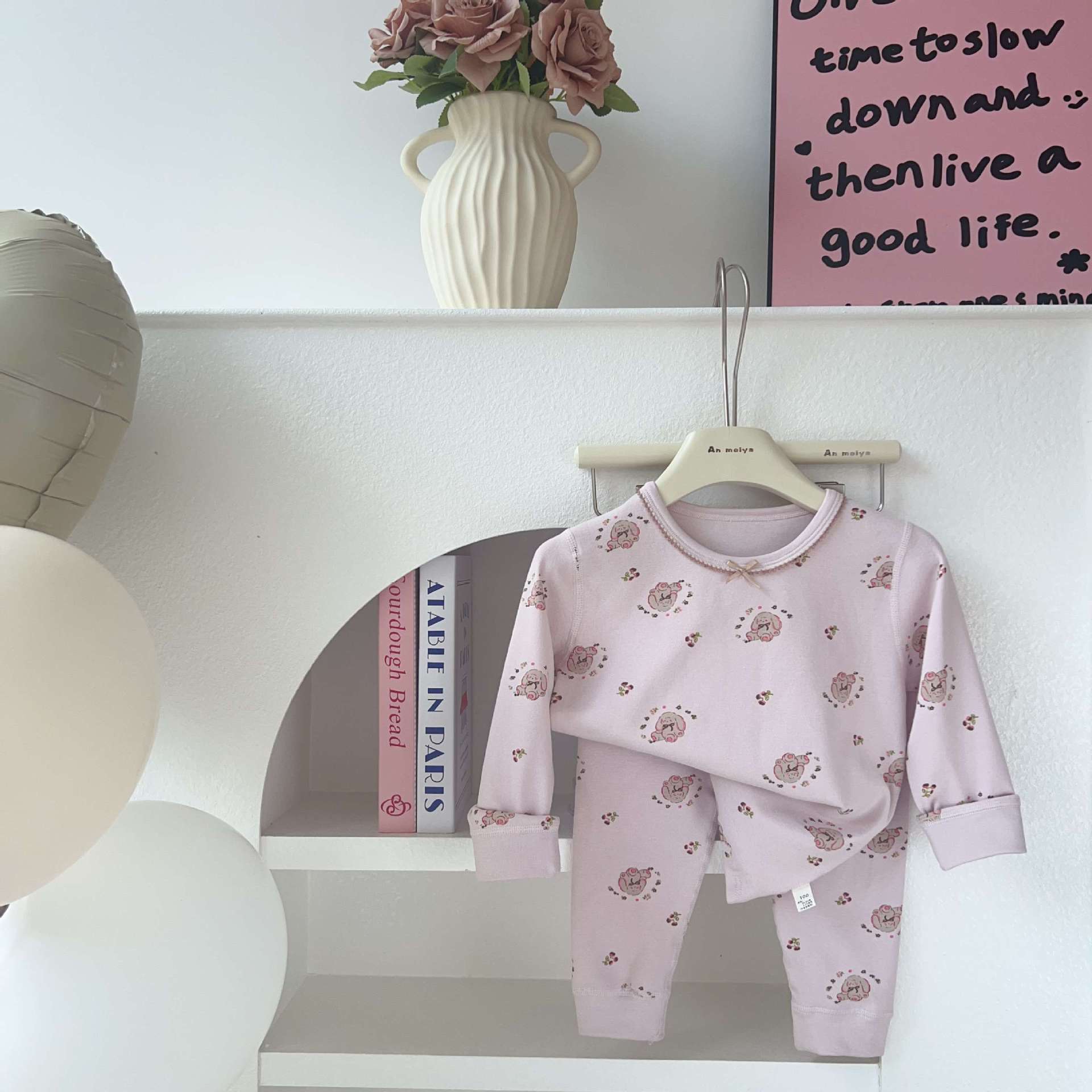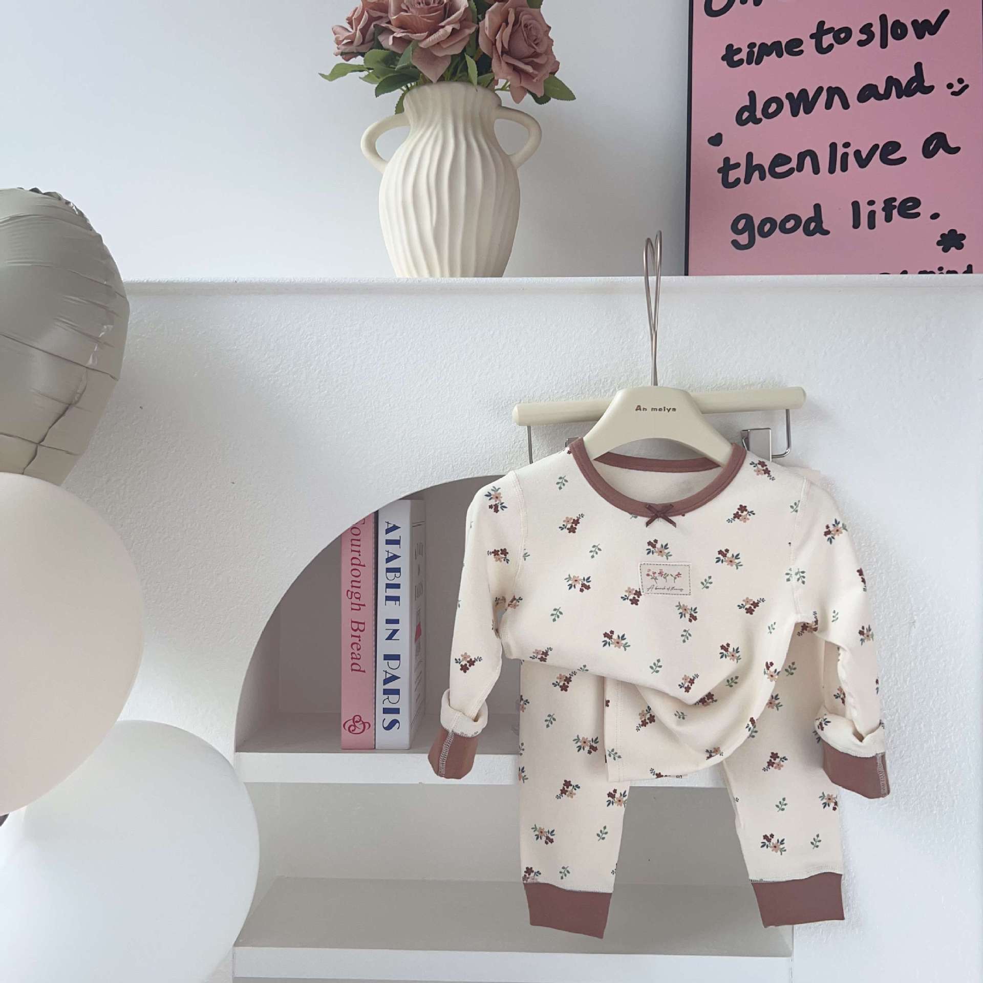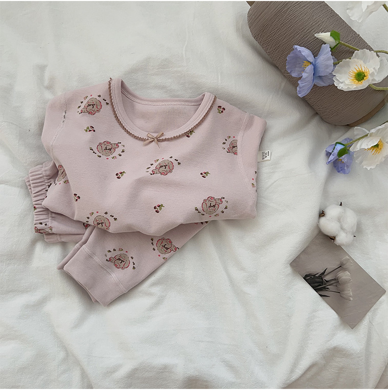 AnMeiya 어린이 울 풀 랙 세트 두꺼운 어린이 가을 옷 투피스 세트 신장 긴 스테이플 코튼 소프트 홈 의류스토어 가기