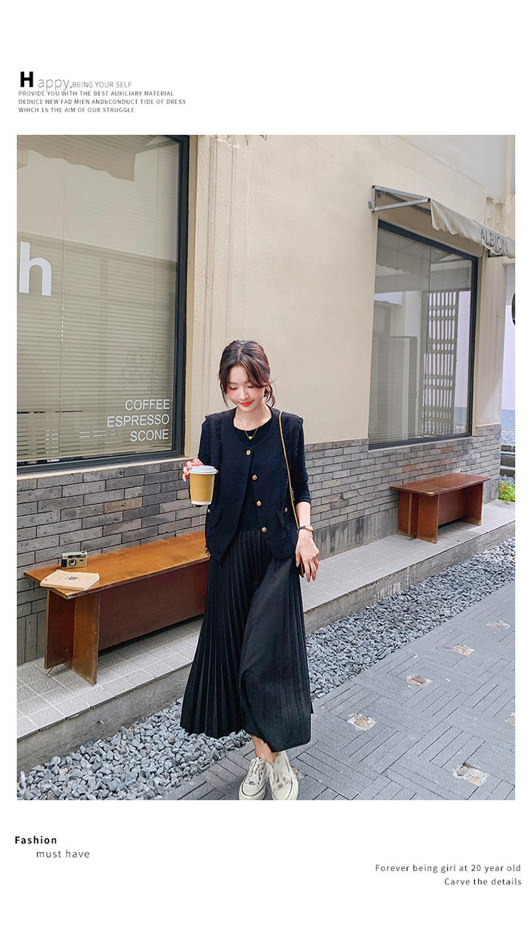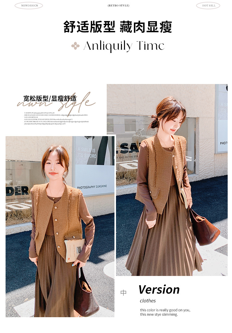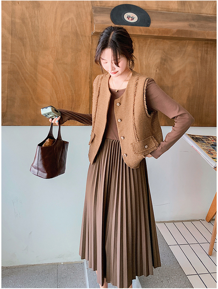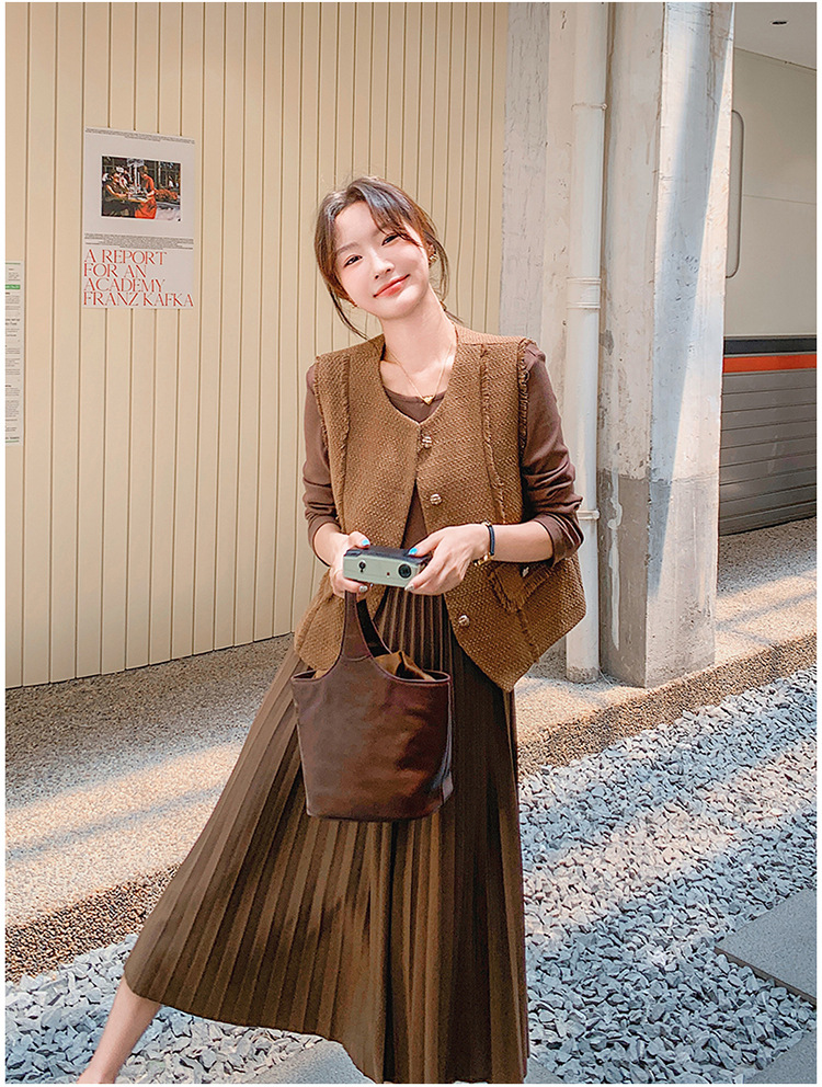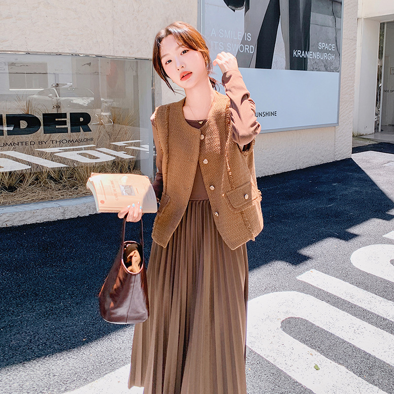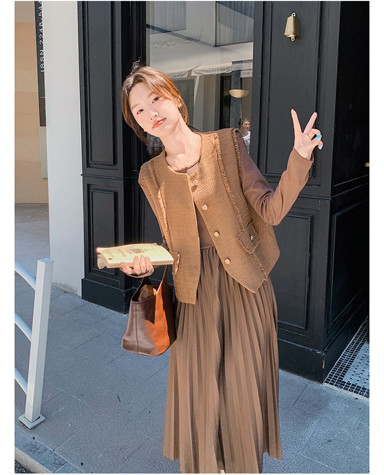 다크 브라운 샤오샹 스타일 조끼 원피스 투피스 세트 여성의 봄과 가을 새로운 패션 캐주얼 라이트 럭셔리 하이 엔드 세트