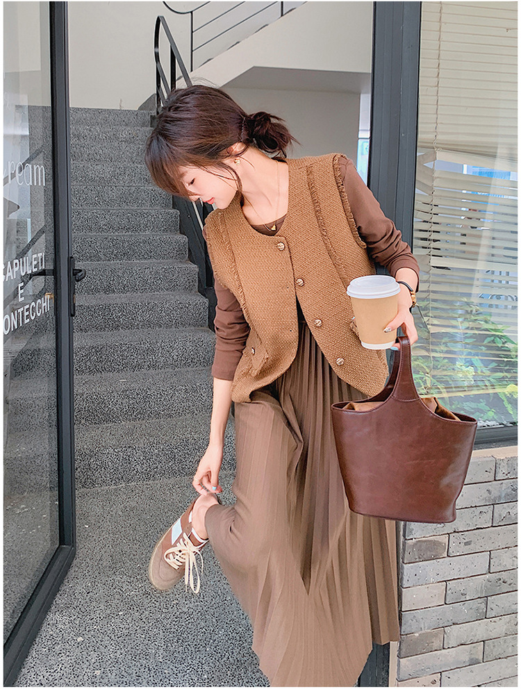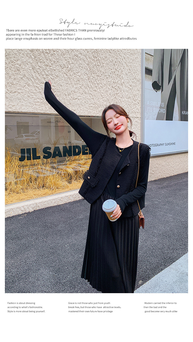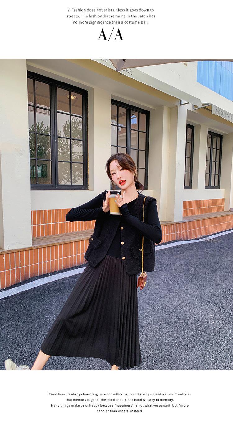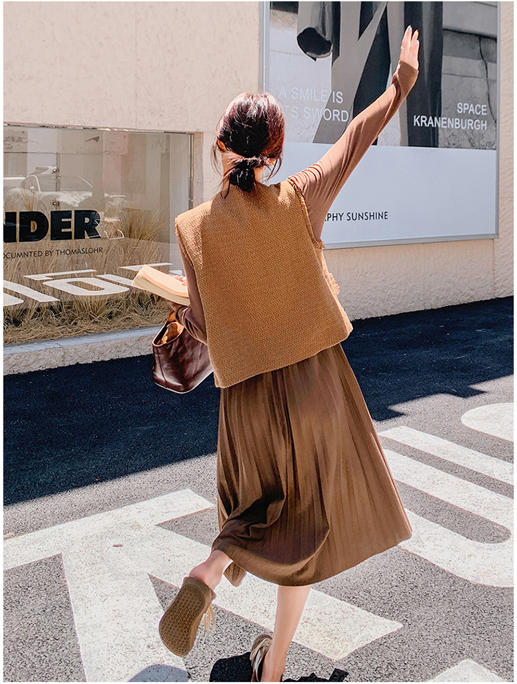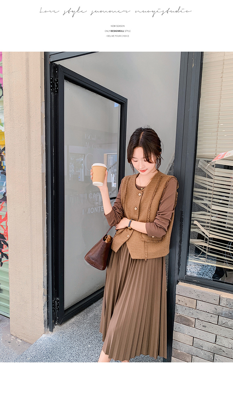 다크 브라운 샤오샹 스타일 조끼 원피스 투피스 세트 여성의 봄과 가을 새로운 패션 캐주얼 라이트 럭셔리 하이 엔드 세트