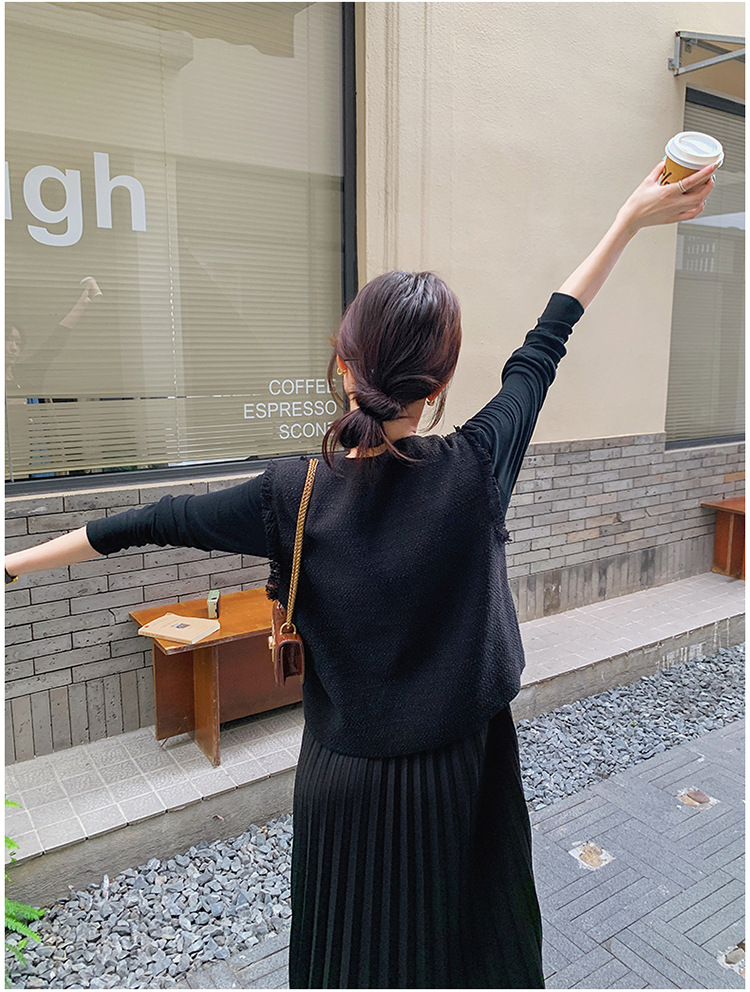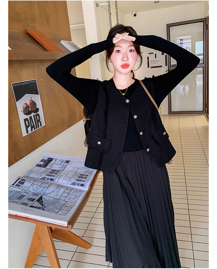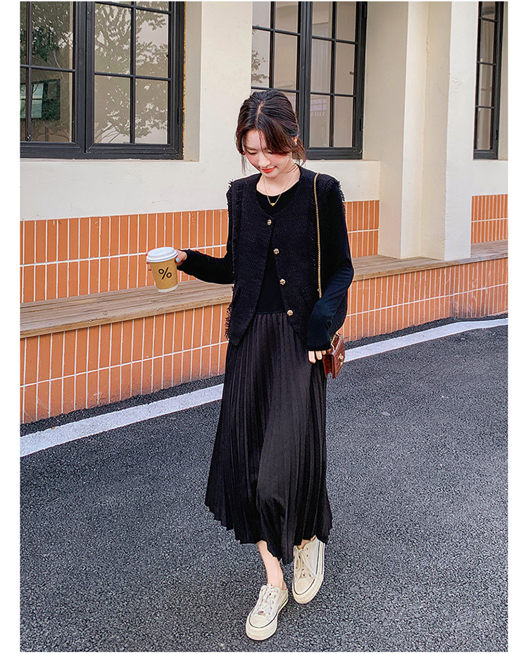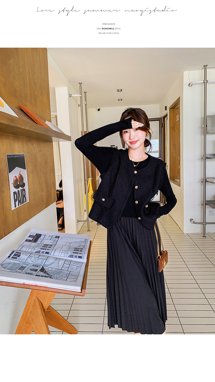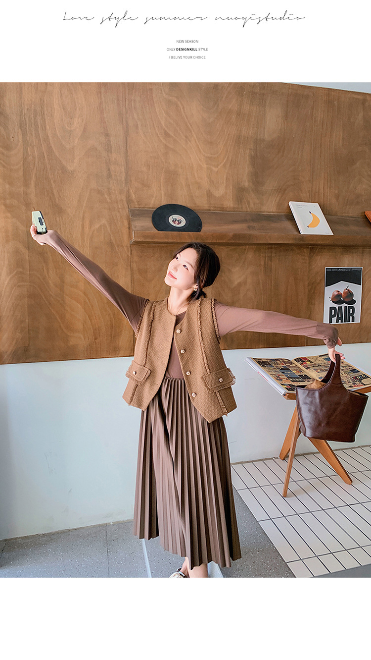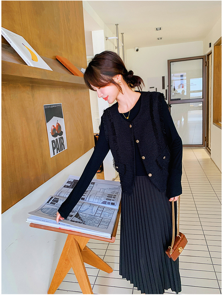 다크 브라운 샤오샹 스타일 조끼 원피스 투피스 세트 여성의 봄과 가을 새로운 패션 캐주얼 라이트 럭셔리 하이 엔드 세트
