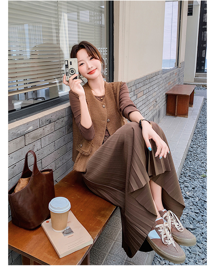 다크 브라운 샤오샹 스타일 조끼 원피스 투피스 세트 여성의 봄과 가을 새로운 패션 캐주얼 라이트 럭셔리 하이 엔드 세트스토어 가기