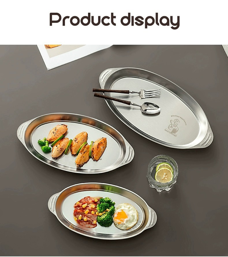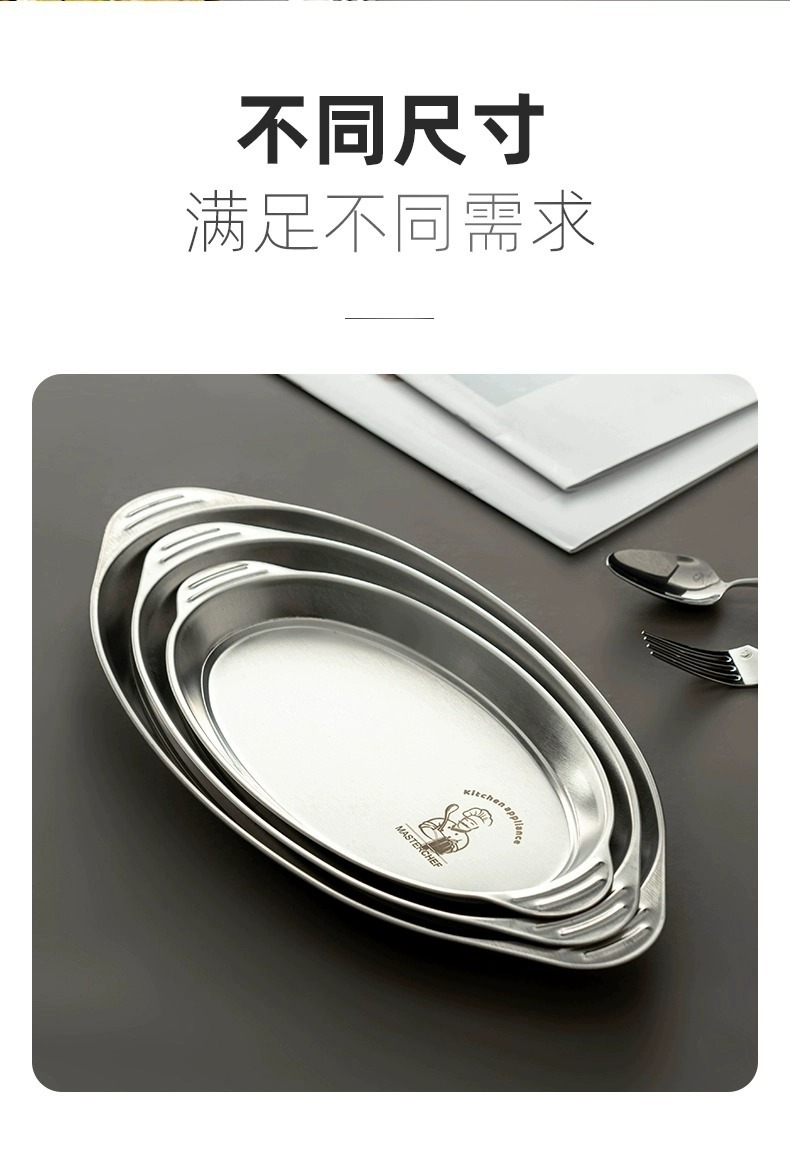 새로운 식품 등급 316 스테인레스 스틸 생선 접시 가정용 고급 이중 귀 찐 생선 특수 타원형 접시 생선 접시