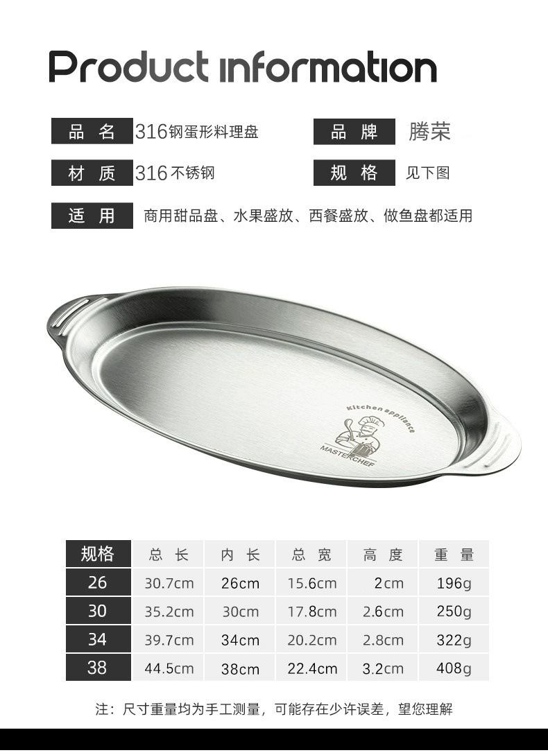 새로운 식품 등급 316 스테인레스 스틸 생선 접시 가정용 고급 이중 귀 찐 생선 특수 타원형 접시 생선 접시스토어 가기