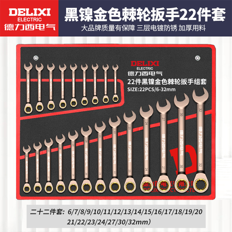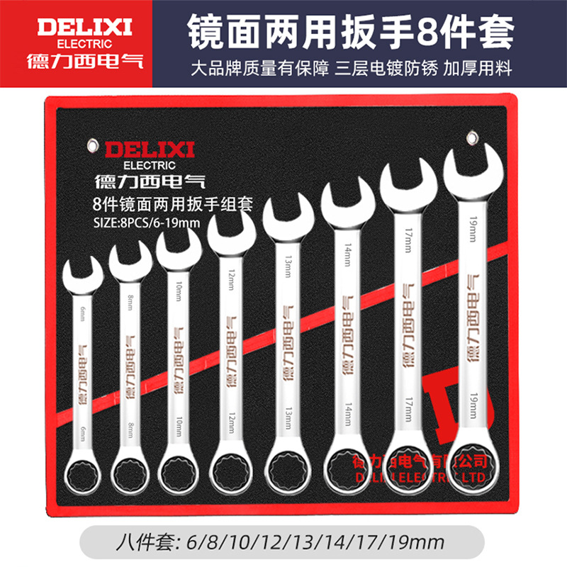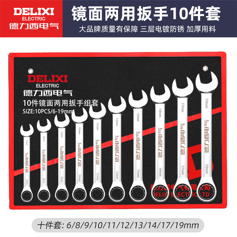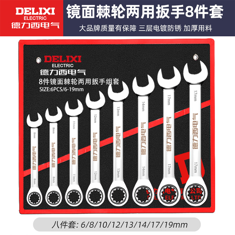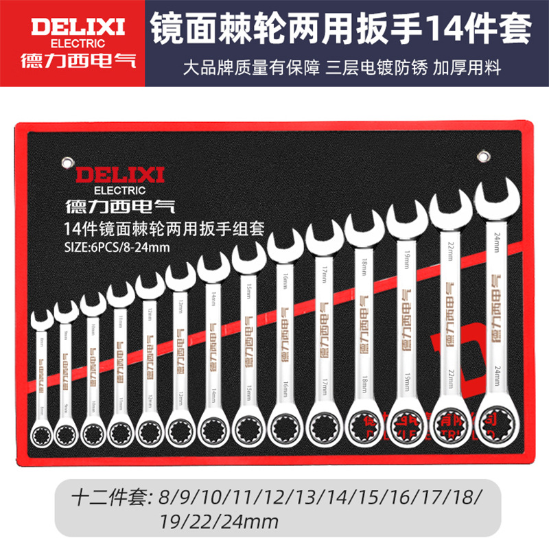 Delixi 전기 오픈 엔드 렌치 세트 이중 목적 매화 렌치 자동 수리 도구 래칫 렌치 세트 전체 세트