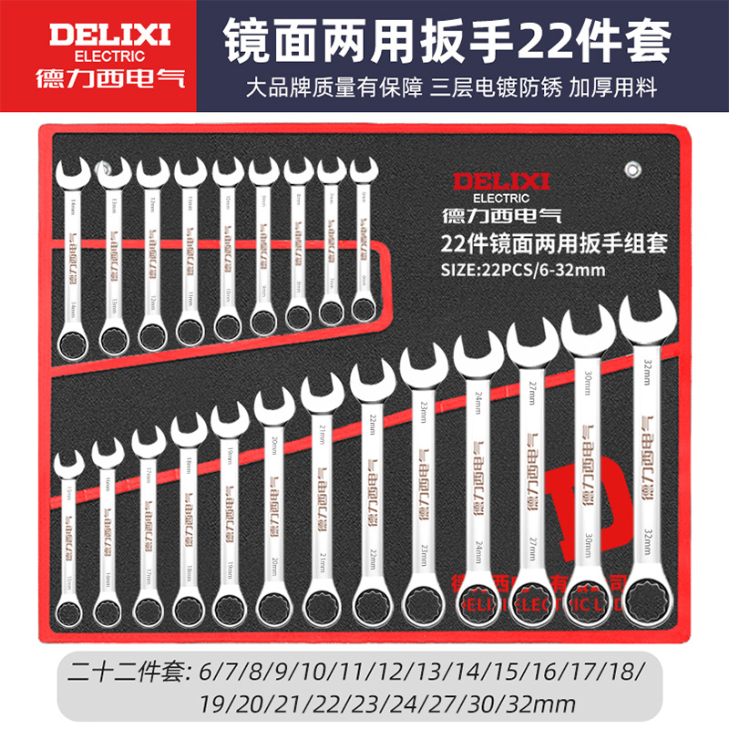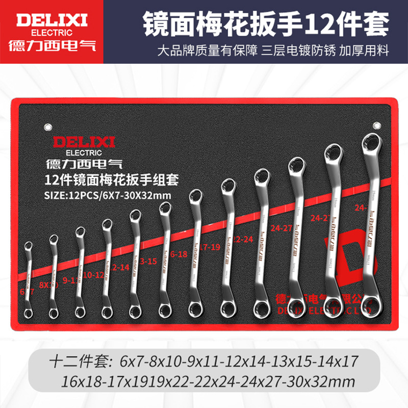Delixi 전기 오픈 엔드 렌치 세트 이중 목적 매화 렌치 자동 수리 도구 래칫 렌치 세트 전체 세트스토어 가기