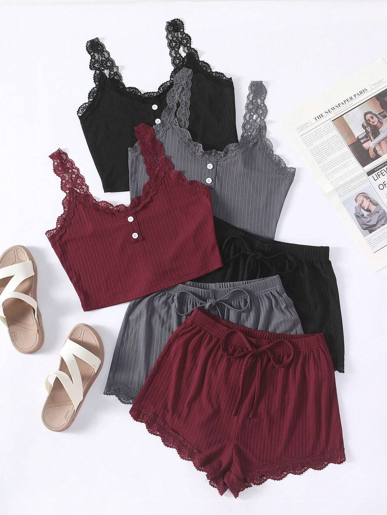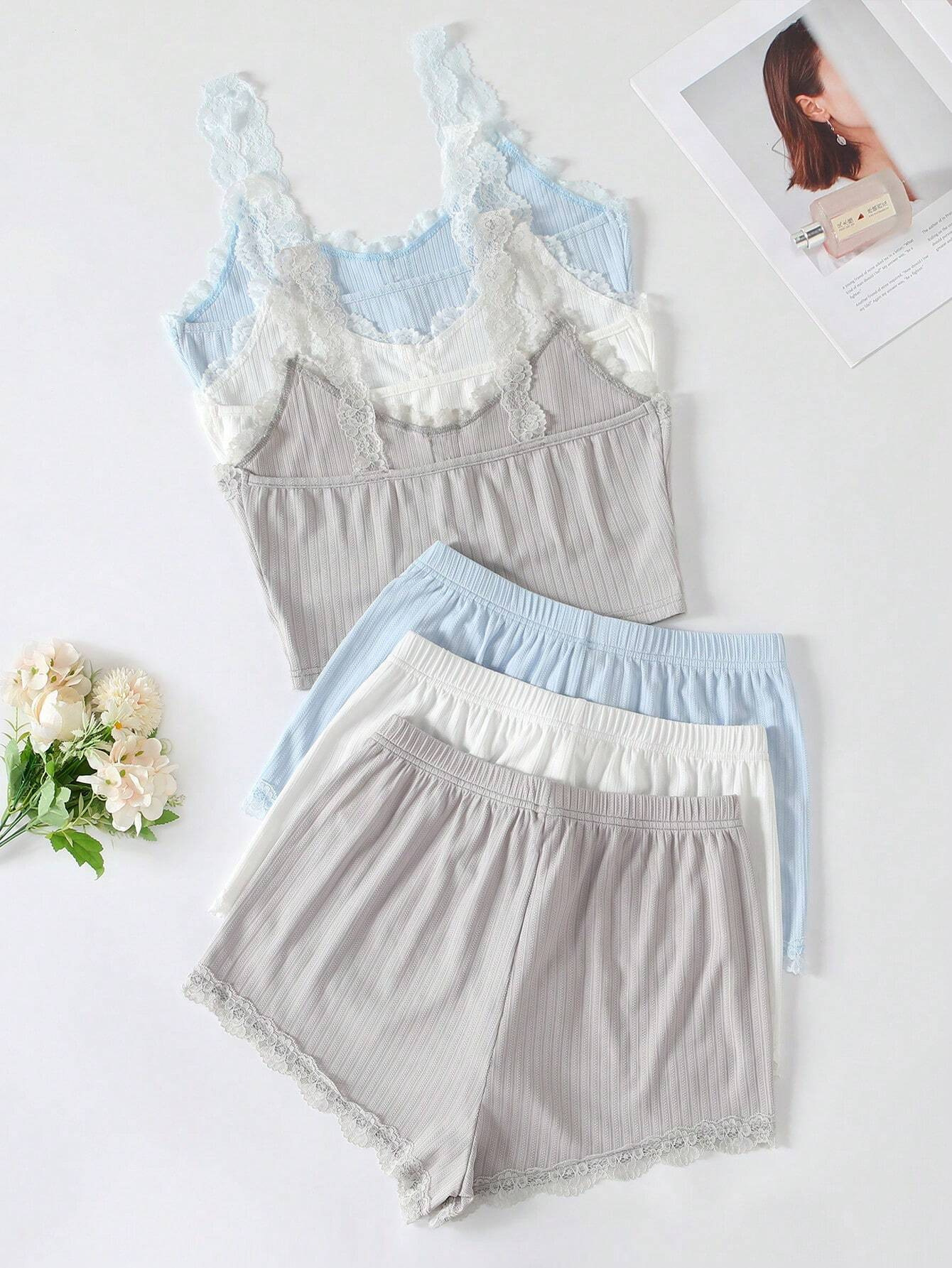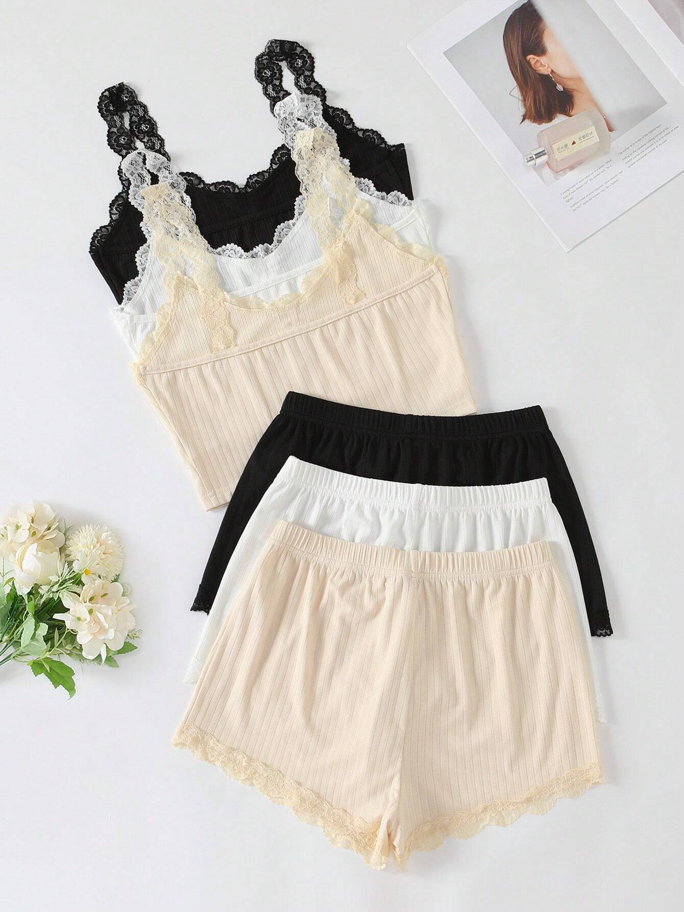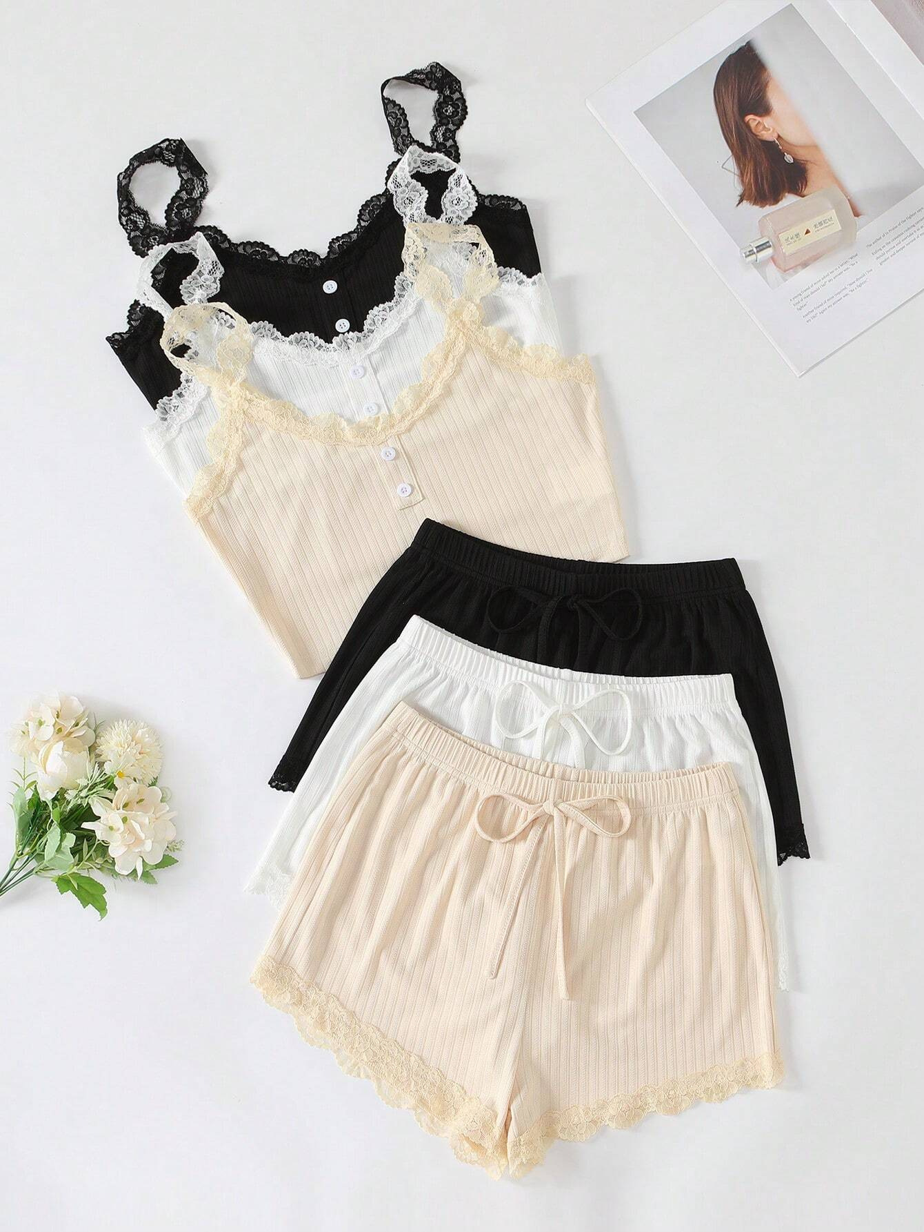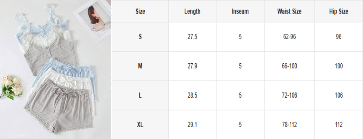 유럽과 미국의 국경 간 여성 홈 의류 잠옷 여성 여름 피트 반바지 단방향 레이어 레이스 실 어깨 끈 도매