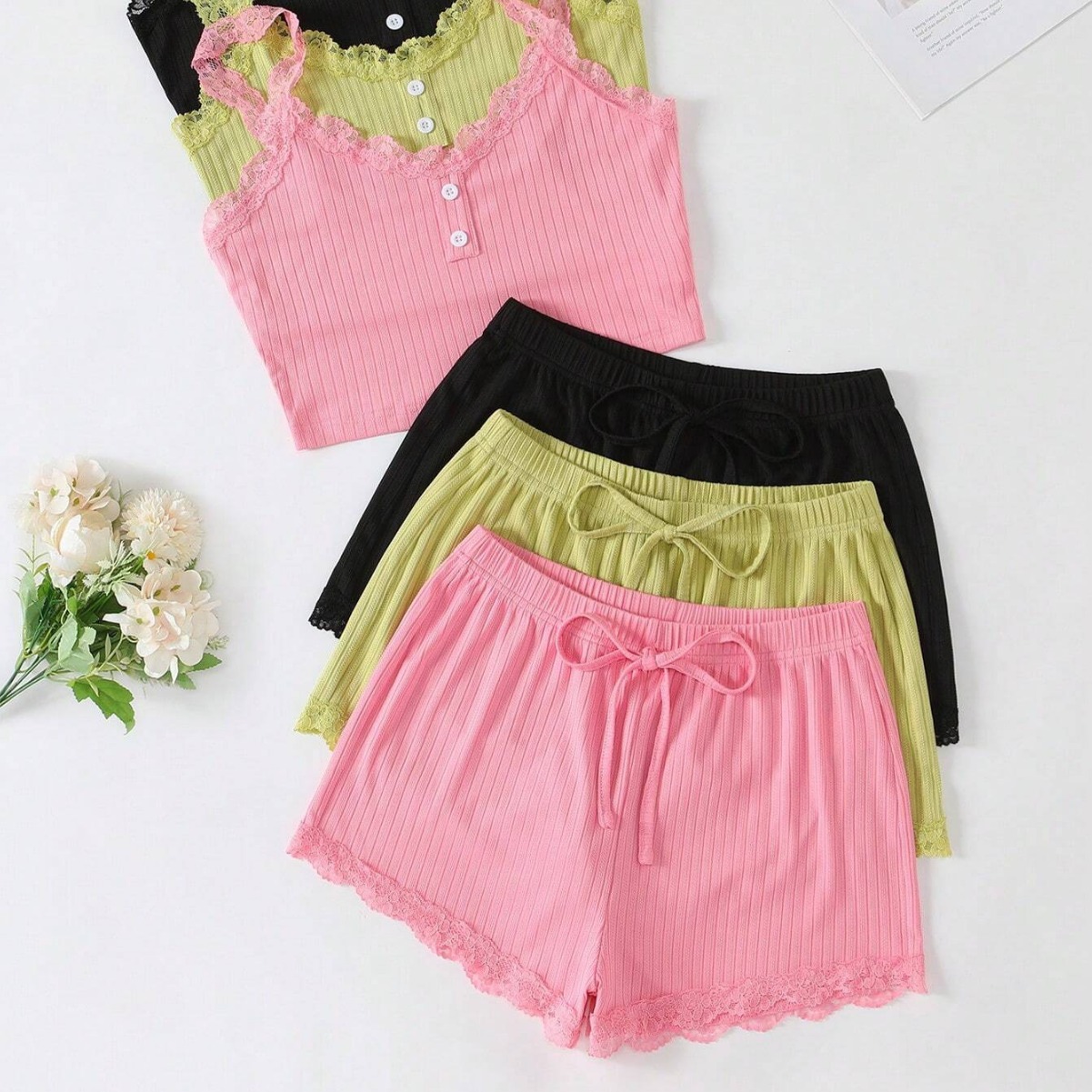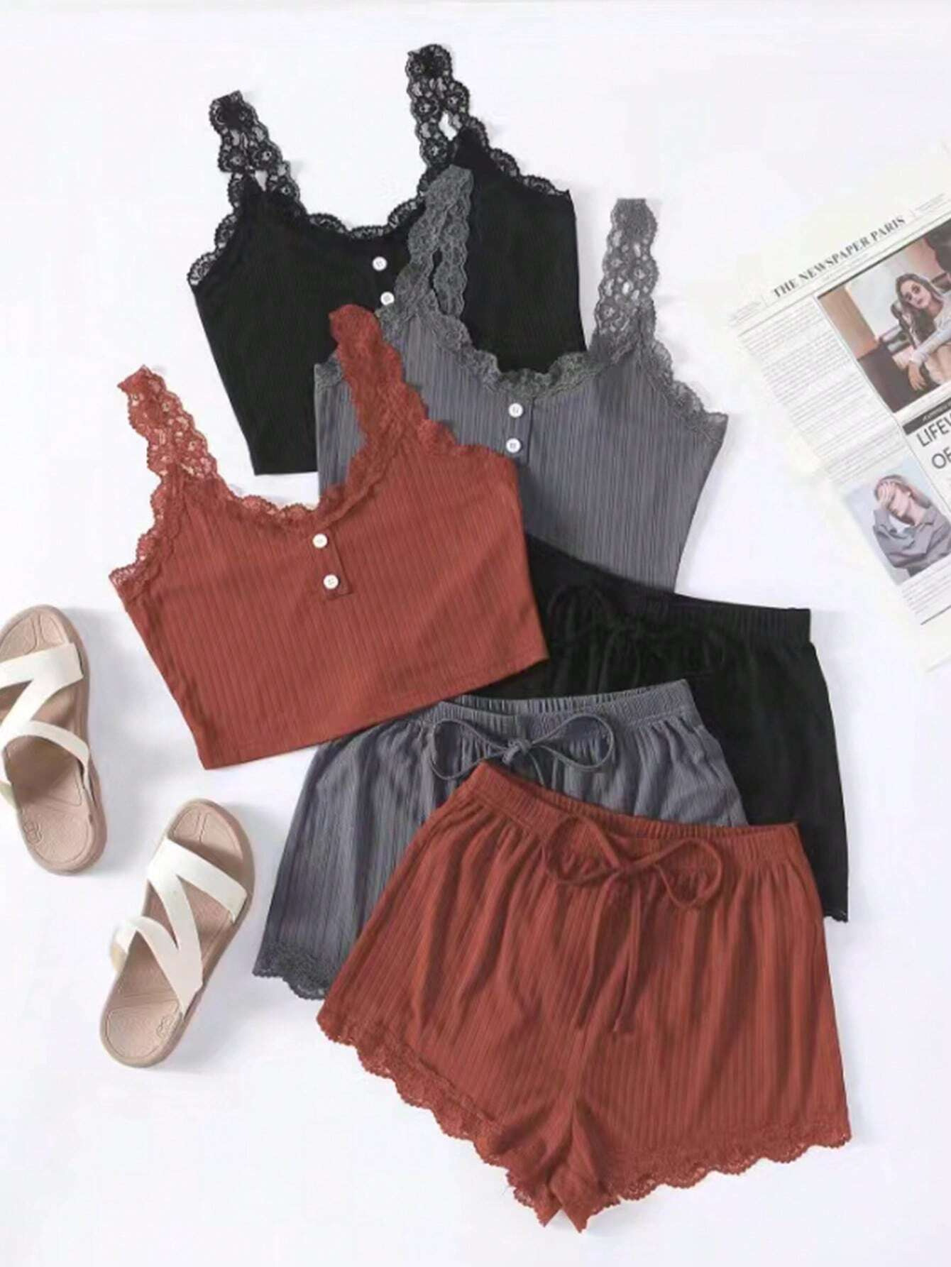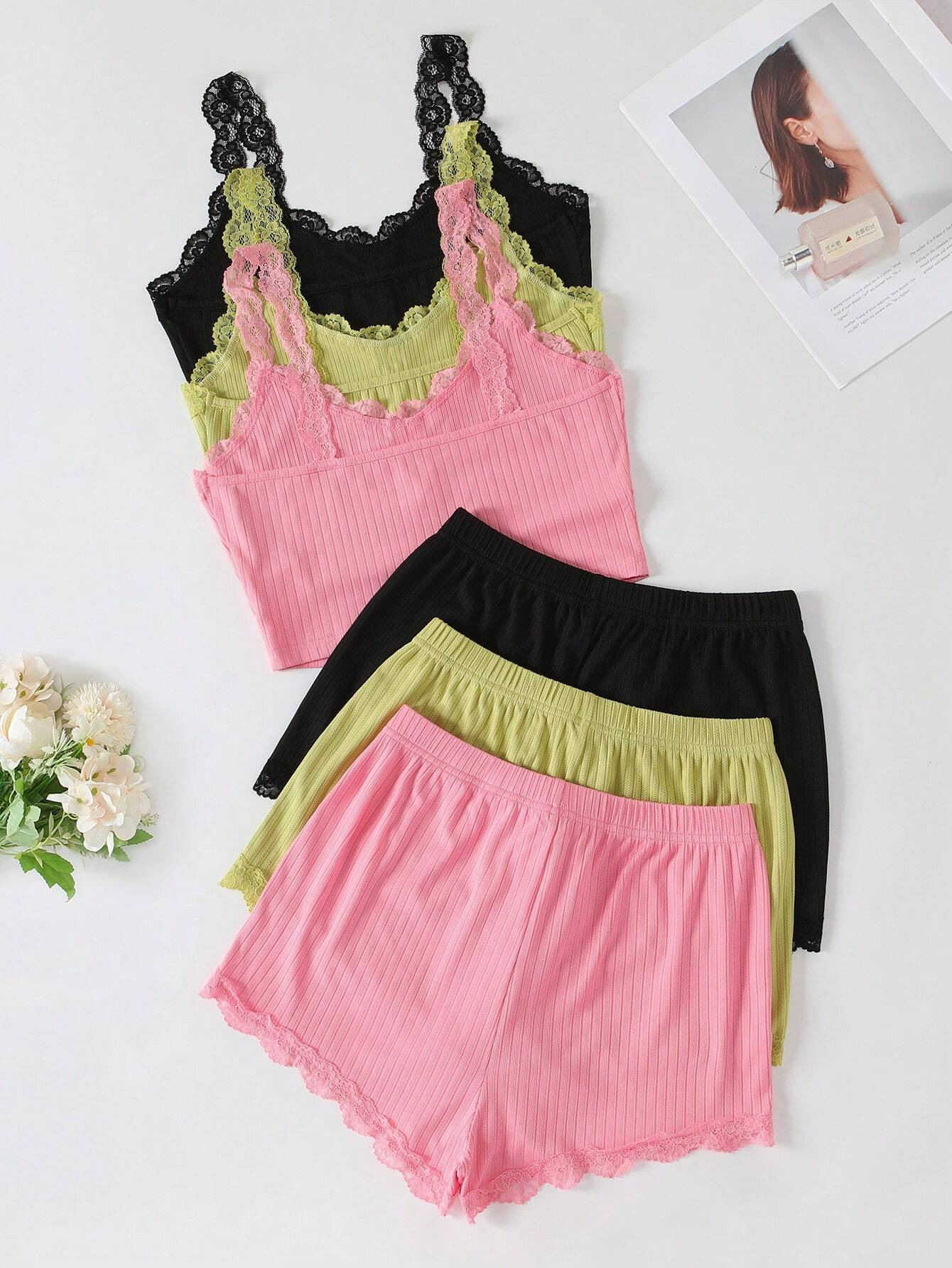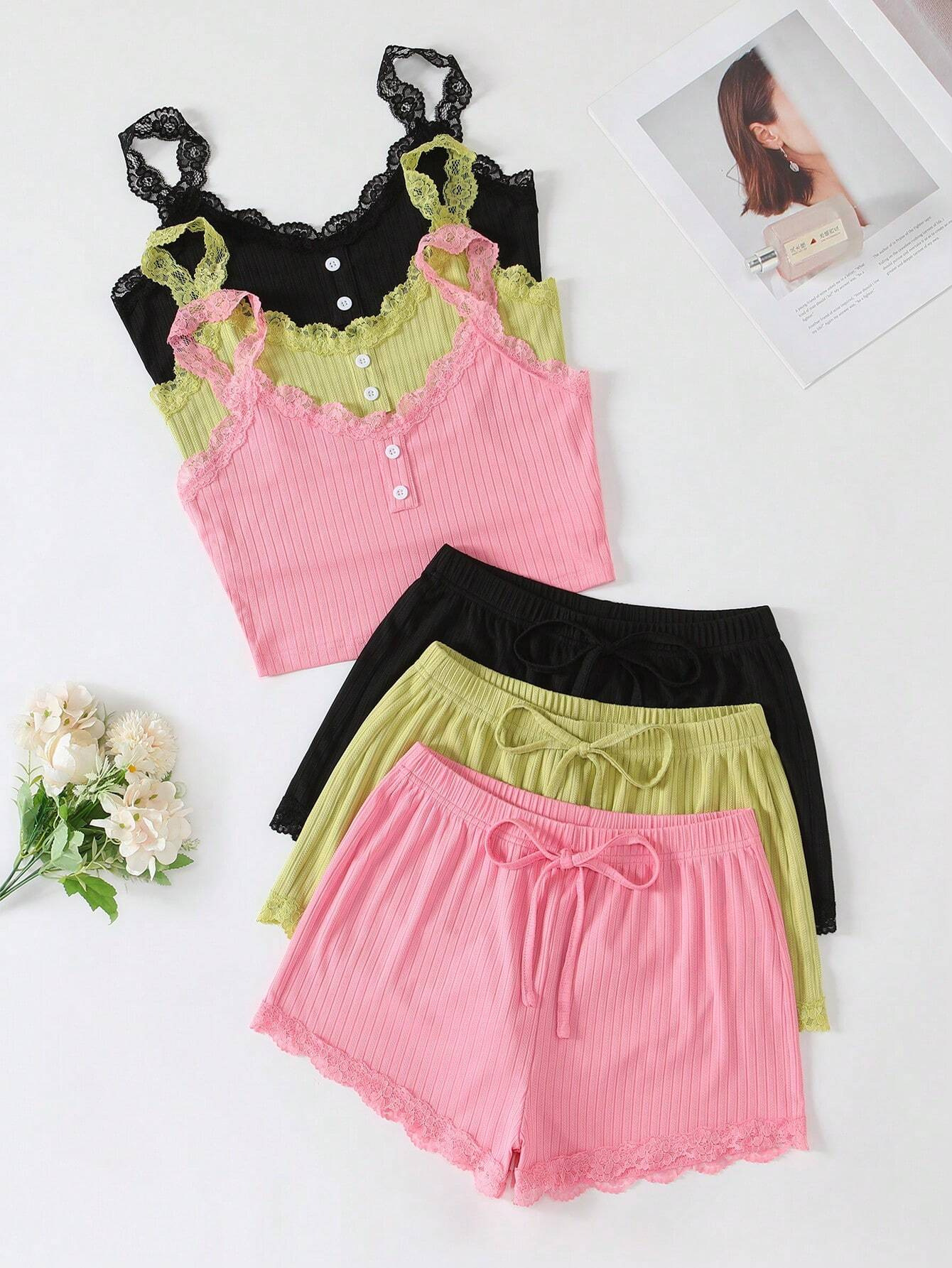 유럽과 미국의 국경 간 여성 홈 의류 잠옷 여성 여름 피트 반바지 단방향 레이어 레이스 실 어깨 끈 도매