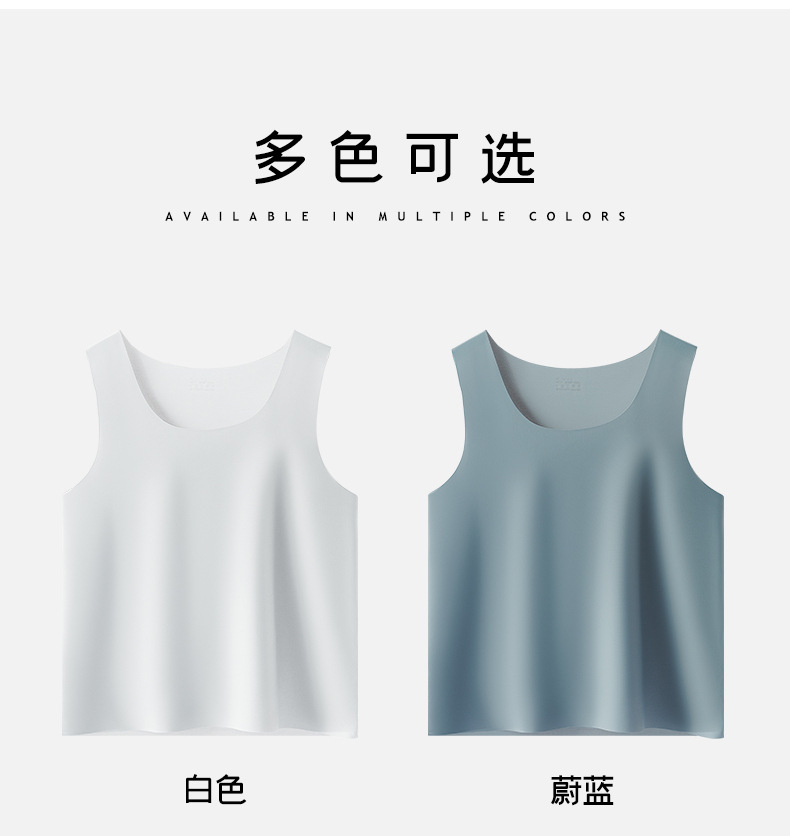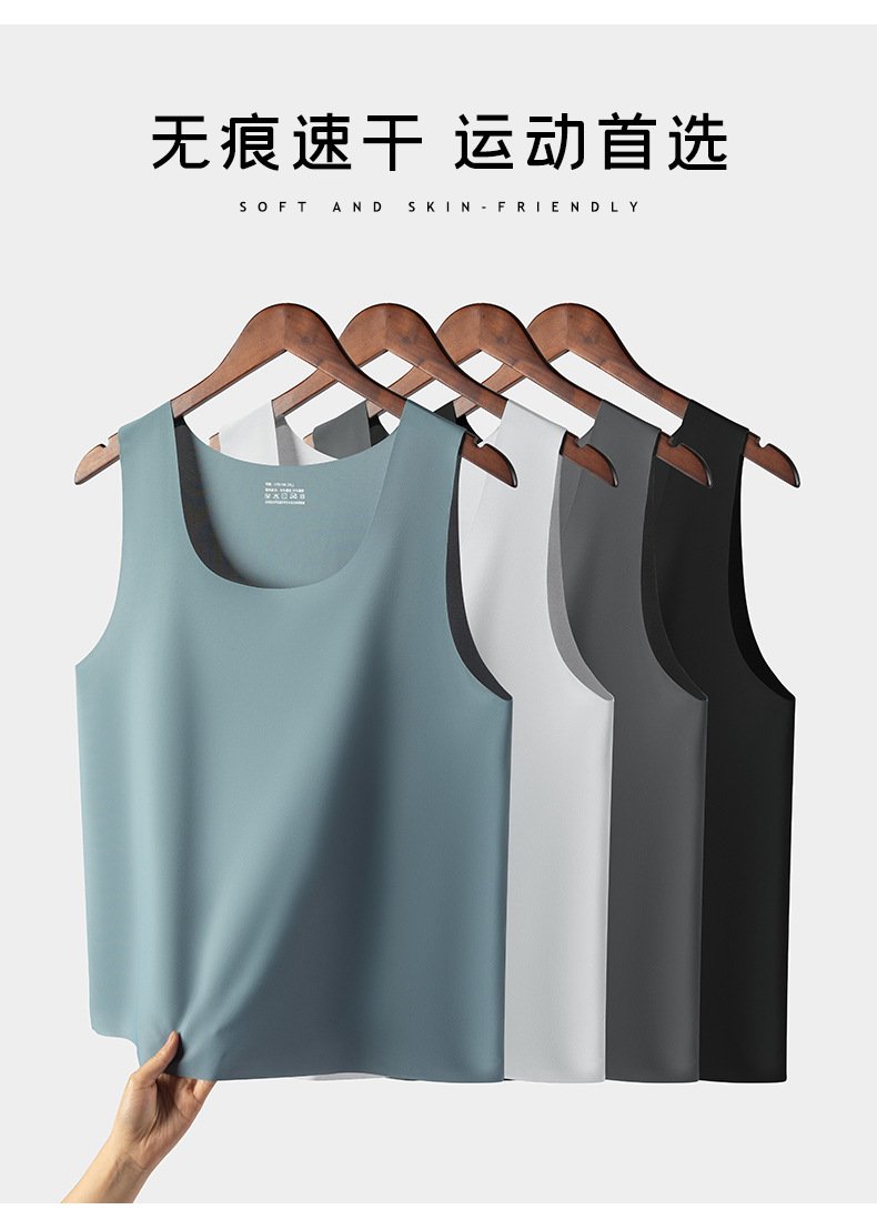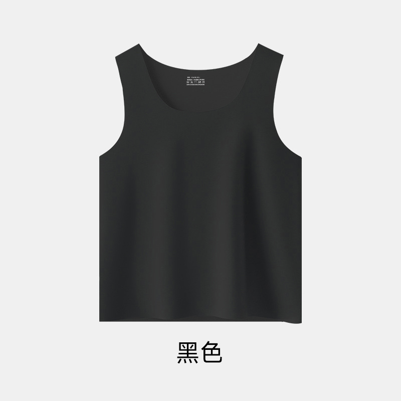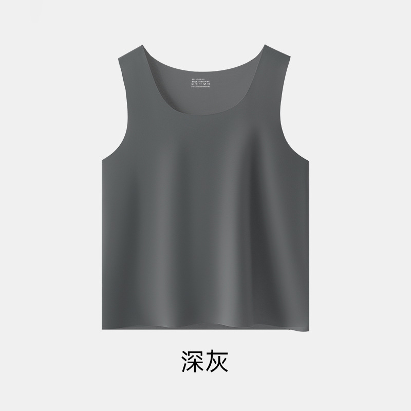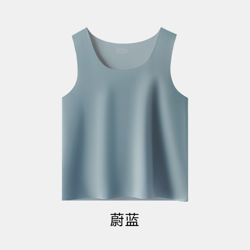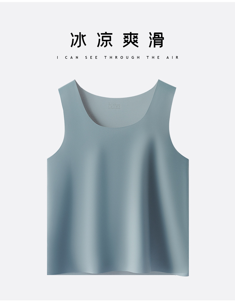 여름 아이스 센스 남자 크루 넥 조끼 비 마킹 아이스 실크 슬림 핏 스포츠 포시즌베이스 탄성 단색 홈 잠옷