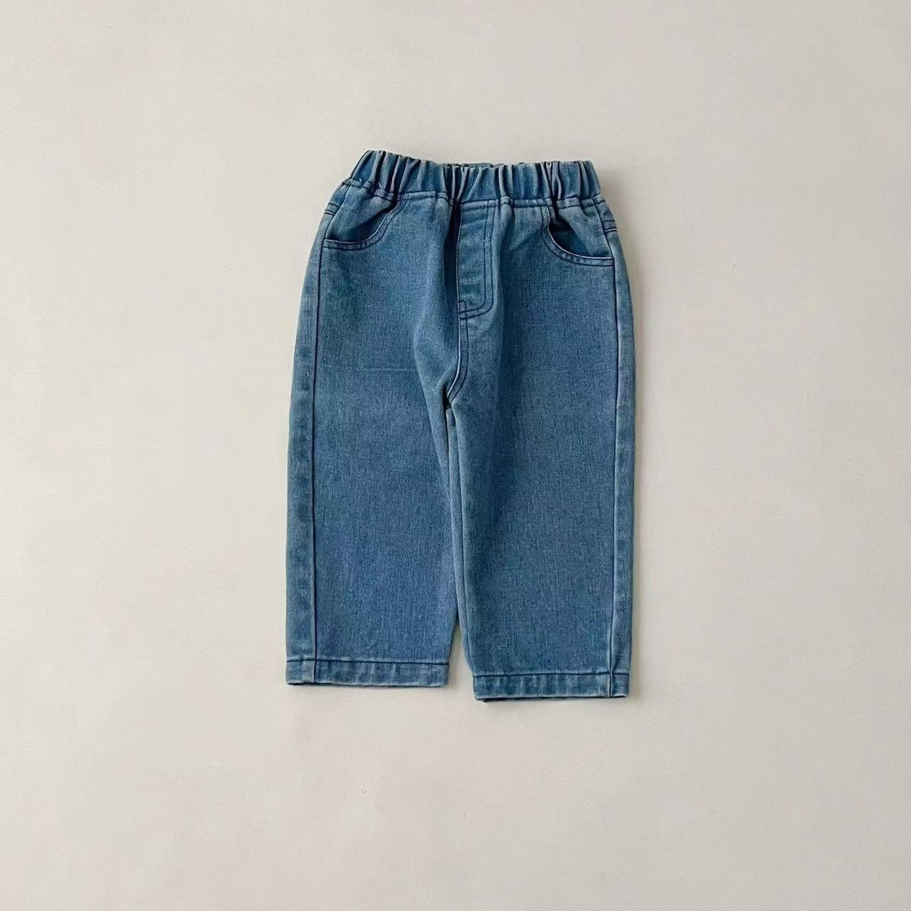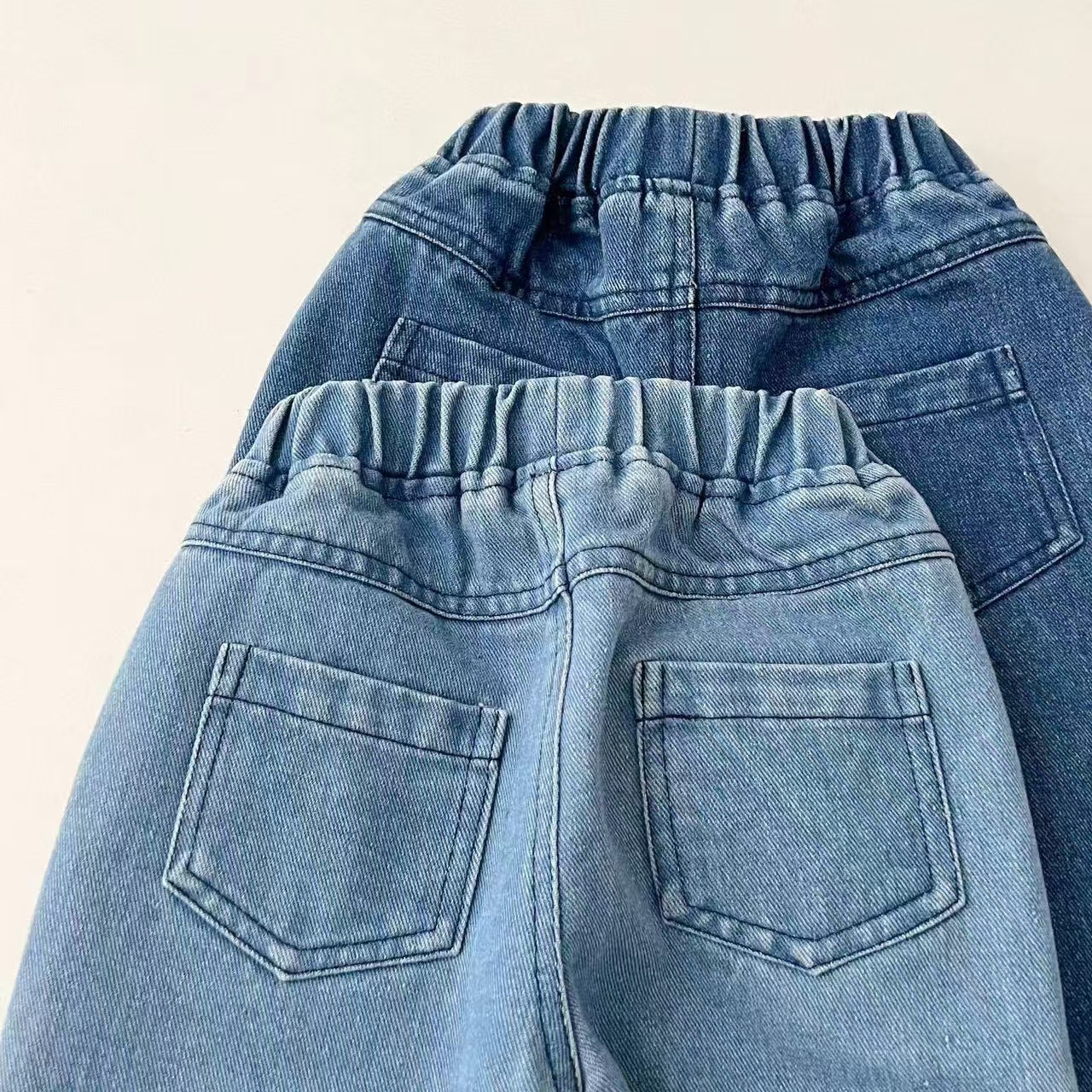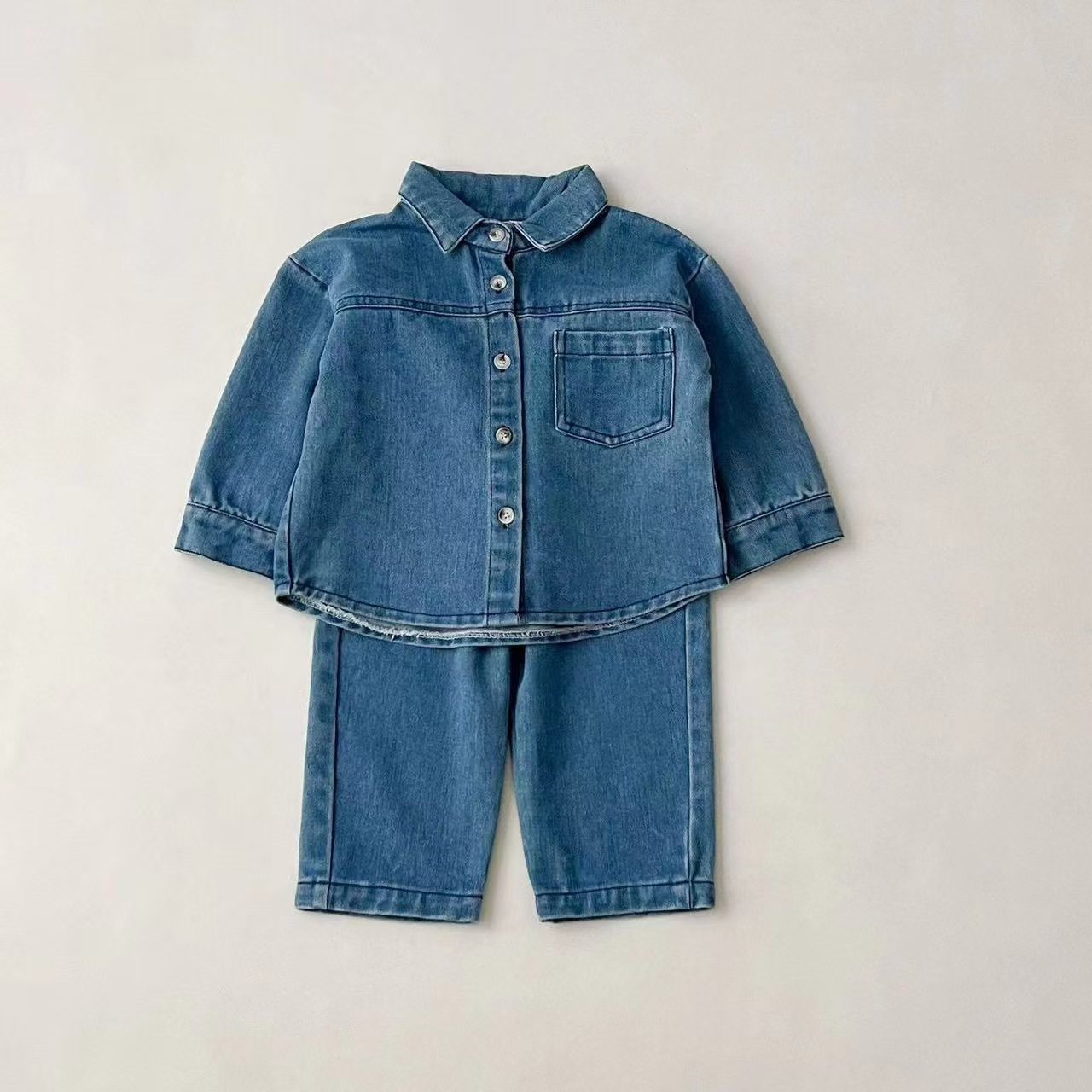 가을 아동복 새로운 한국 데님 세트 남성과 여성의 복고풍 긴 소매 탑 청바지 바지 투피스 세트스토어 가기