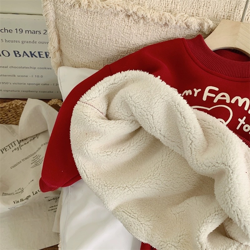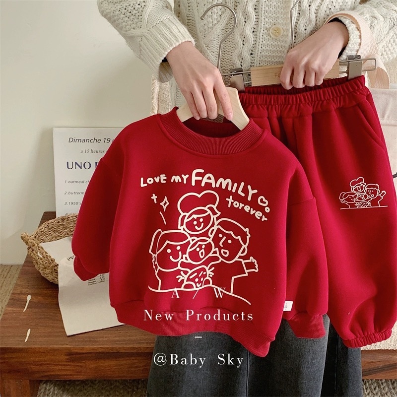 어린이 새 가을과 겨울 기모 소년 소녀를위한 세트 축제 신년 옷 아기 땀 바지 두 조각 유행 세트스토어 가기