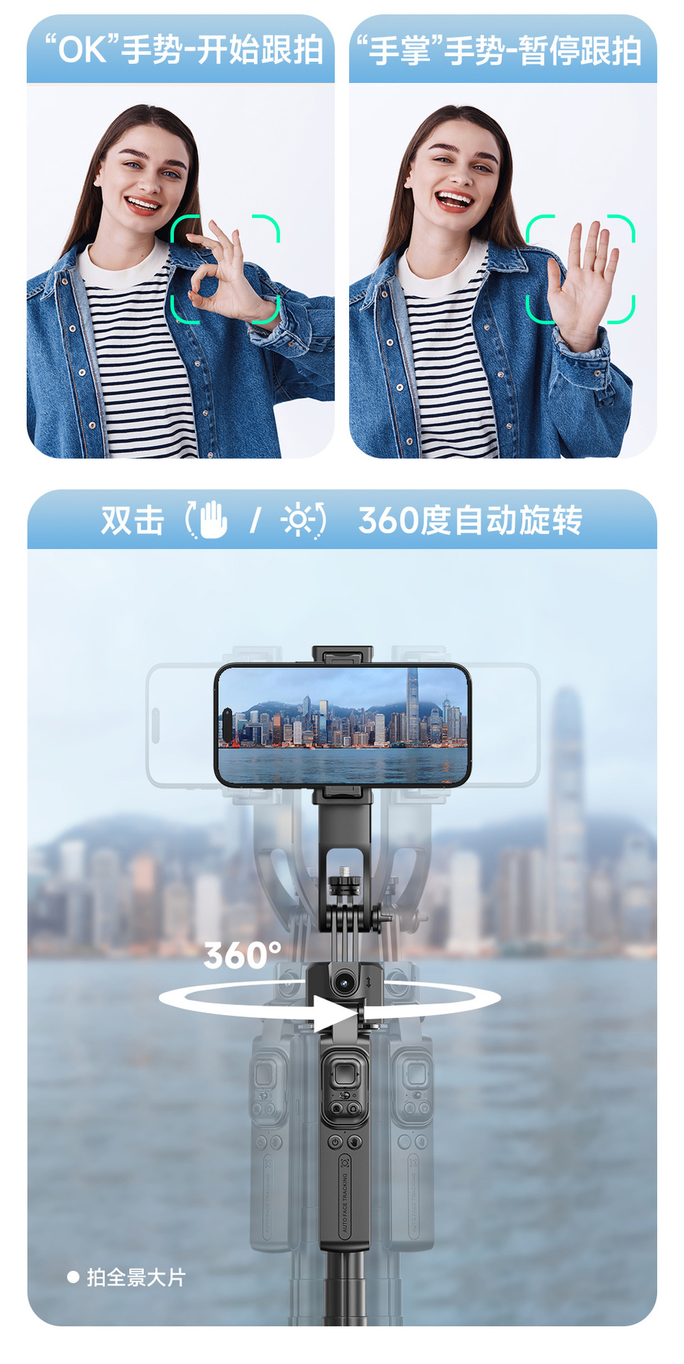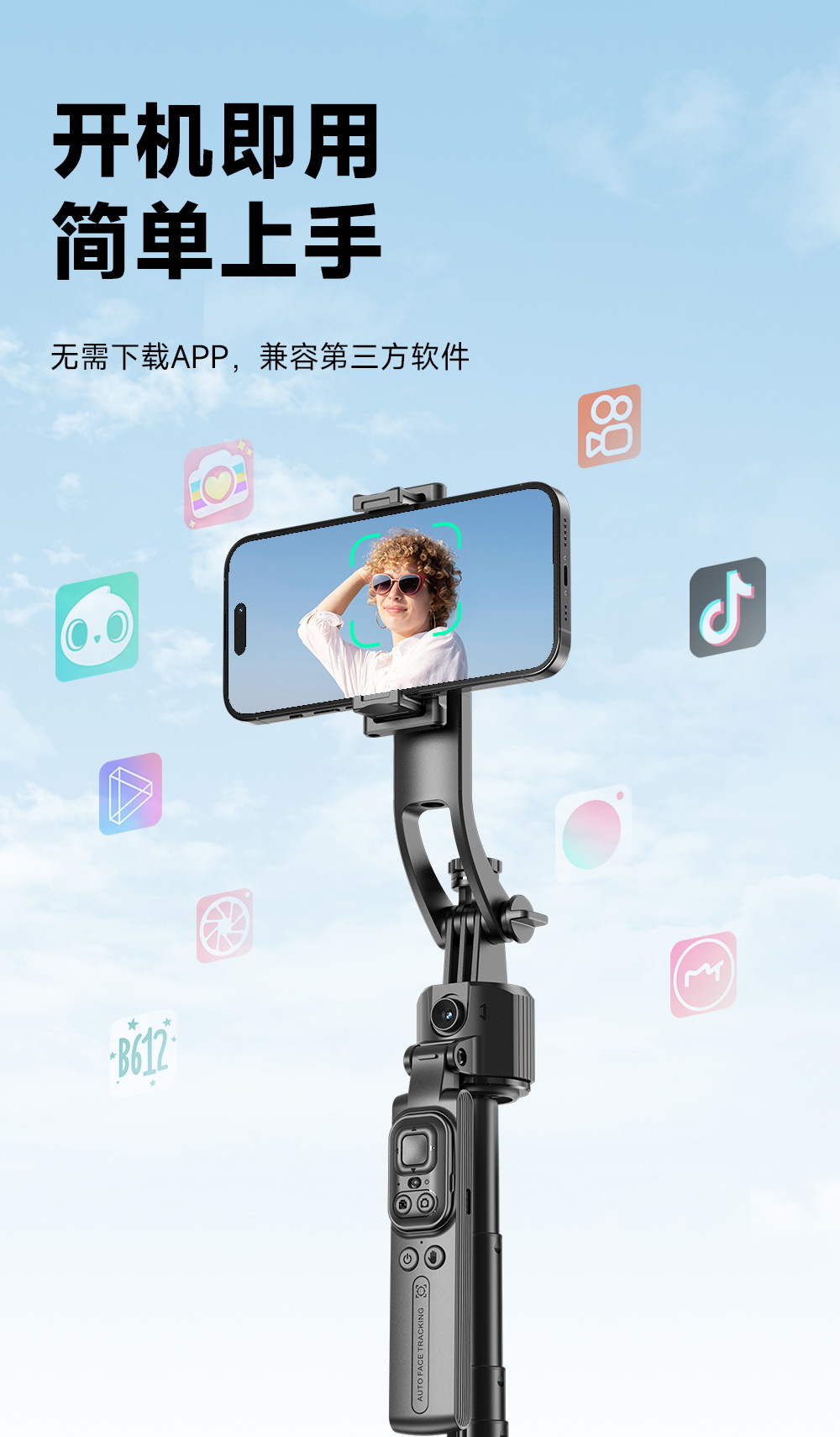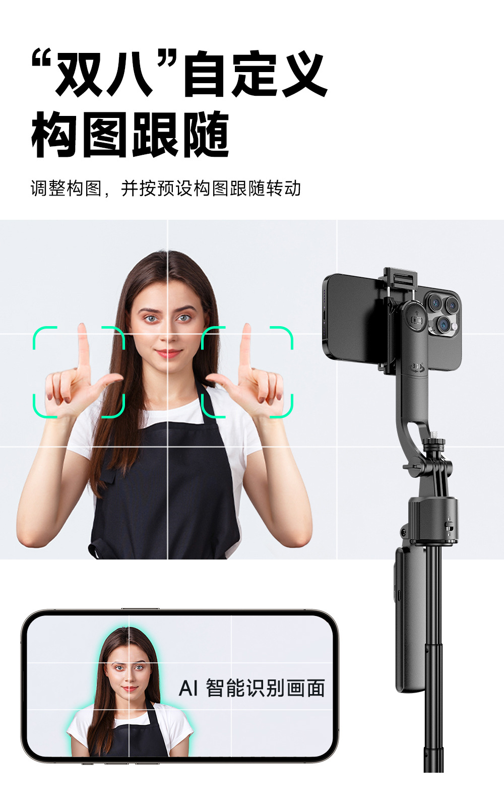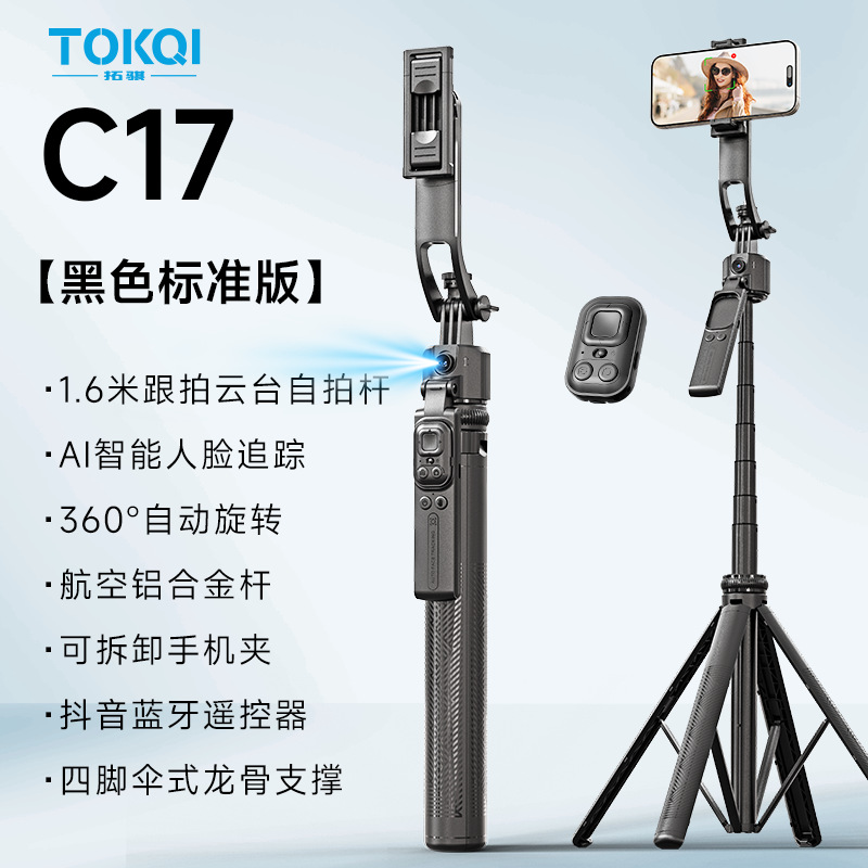 지능형 AI 추적 헤드 C17 셀카 스틱 얼굴 추적 손떨림 방지 개폐식 셀카 유물 휴대 전화 홀더
