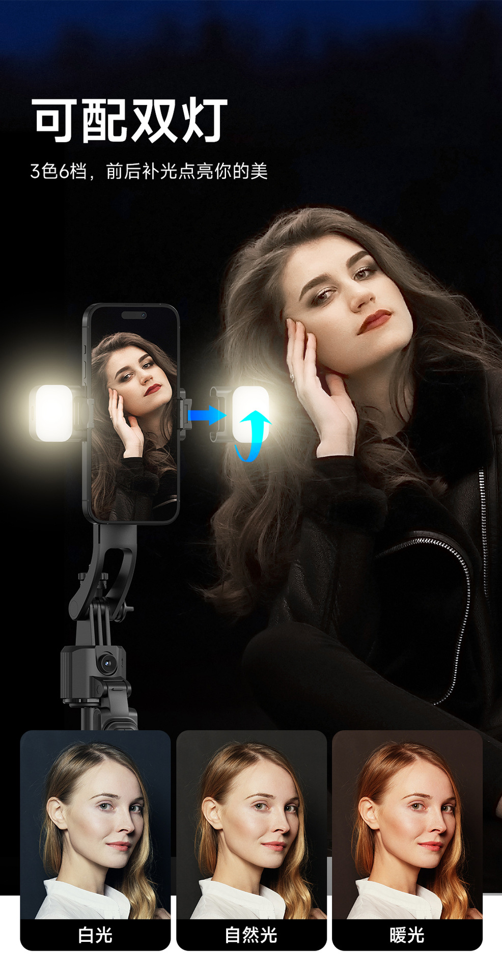 • C17 [블랙 듀얼 라이트 모델] 1.63m 알루미늄 합금 폴*스마트 AI 페이스 추적*탈착식 클립 헤드*블루투스 리모컨*듀얼 뷰티 필 라이트