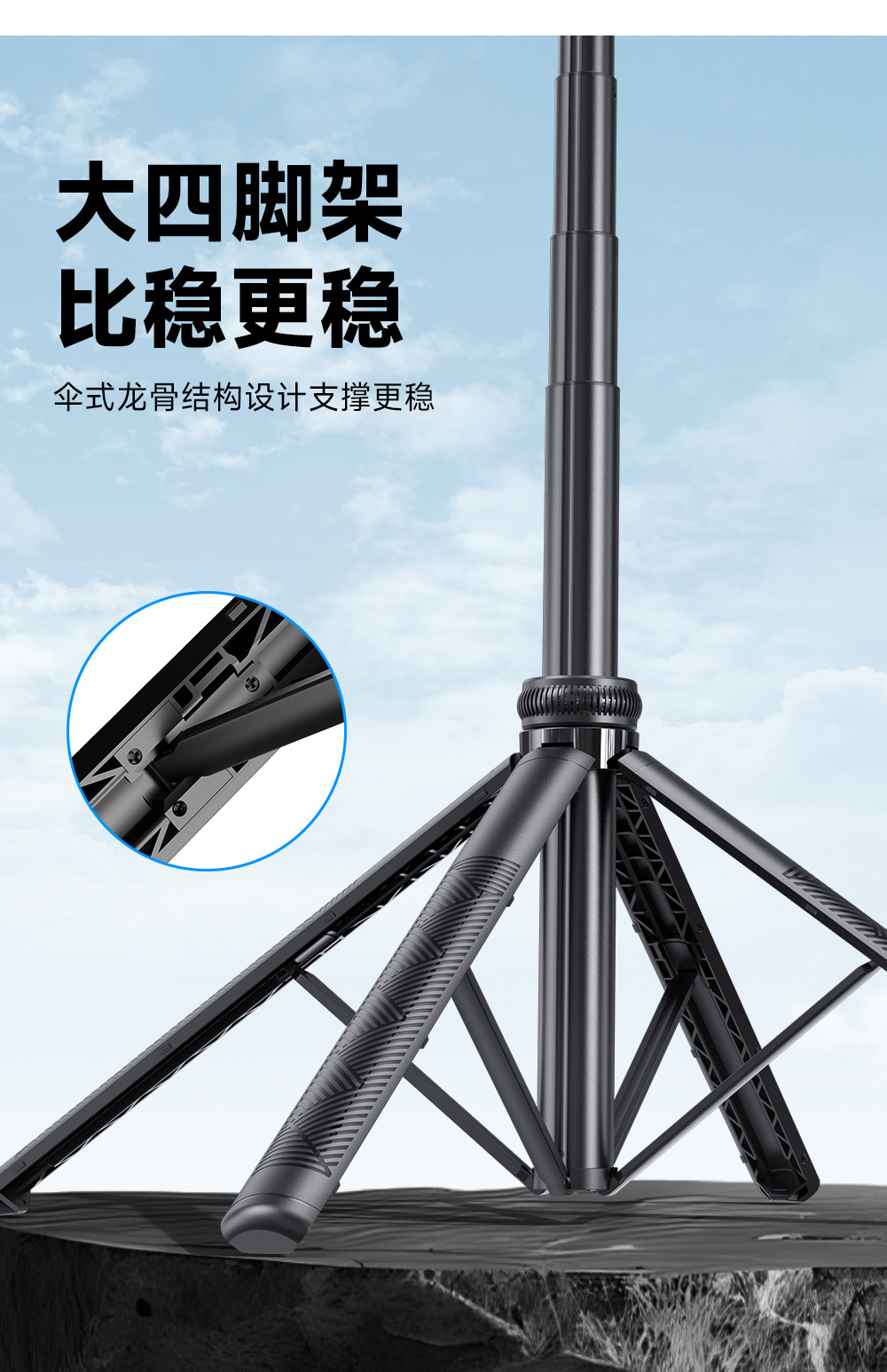 • C19 [블랙 듀얼 라이트 버전 - 1.8m ] 스테인리스 스틸 폴 * 균형 잡힌 흔들림 방지 핸들 * 분리형 휴대폰 클립 * 1/4 인터페이스 * 블루투스 리모컨 * 필 라이트