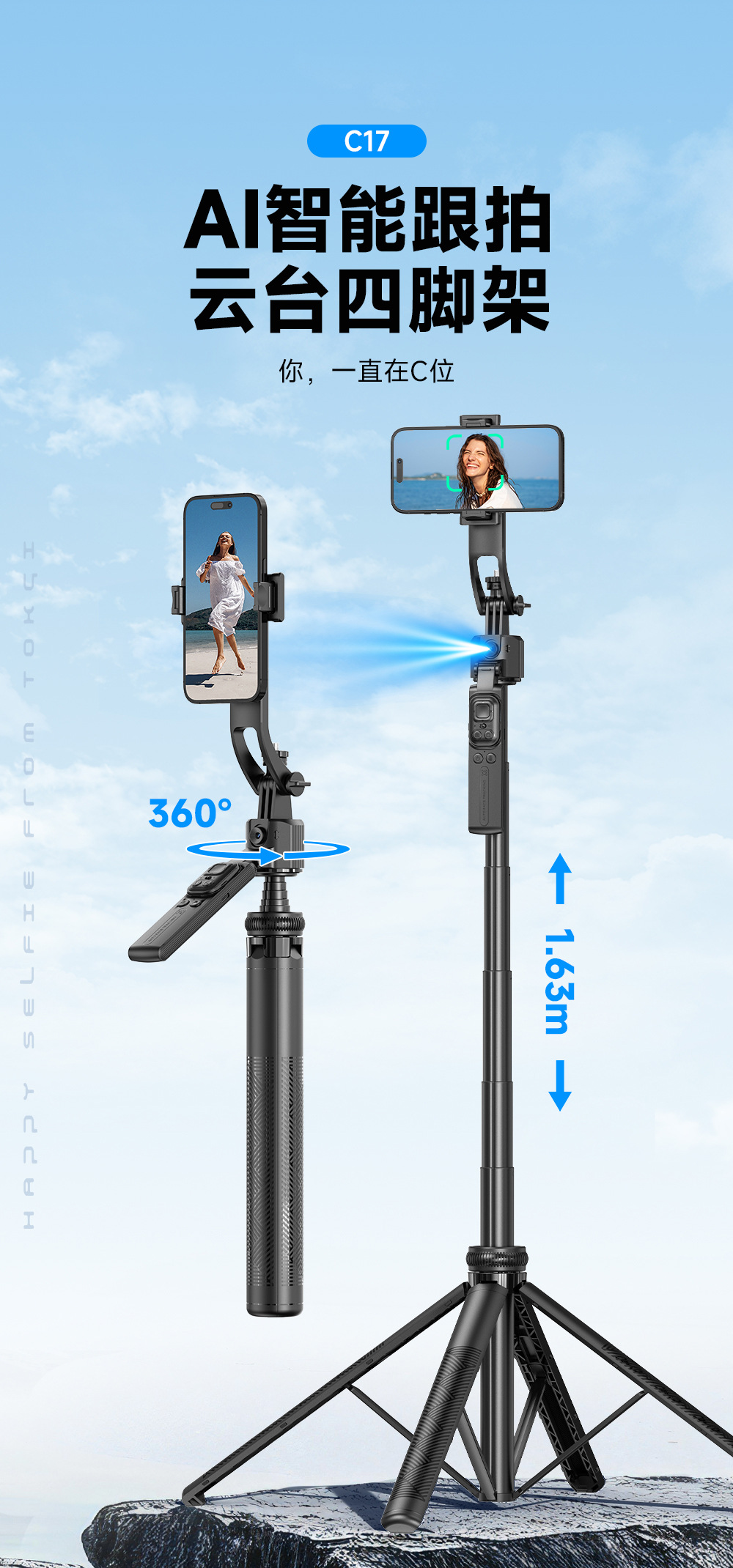 지능형 AI 추적 헤드 C17 셀카 스틱 얼굴 추적 손떨림 방지 개폐식 셀카 유물 휴대 전화 홀더스토어 가기