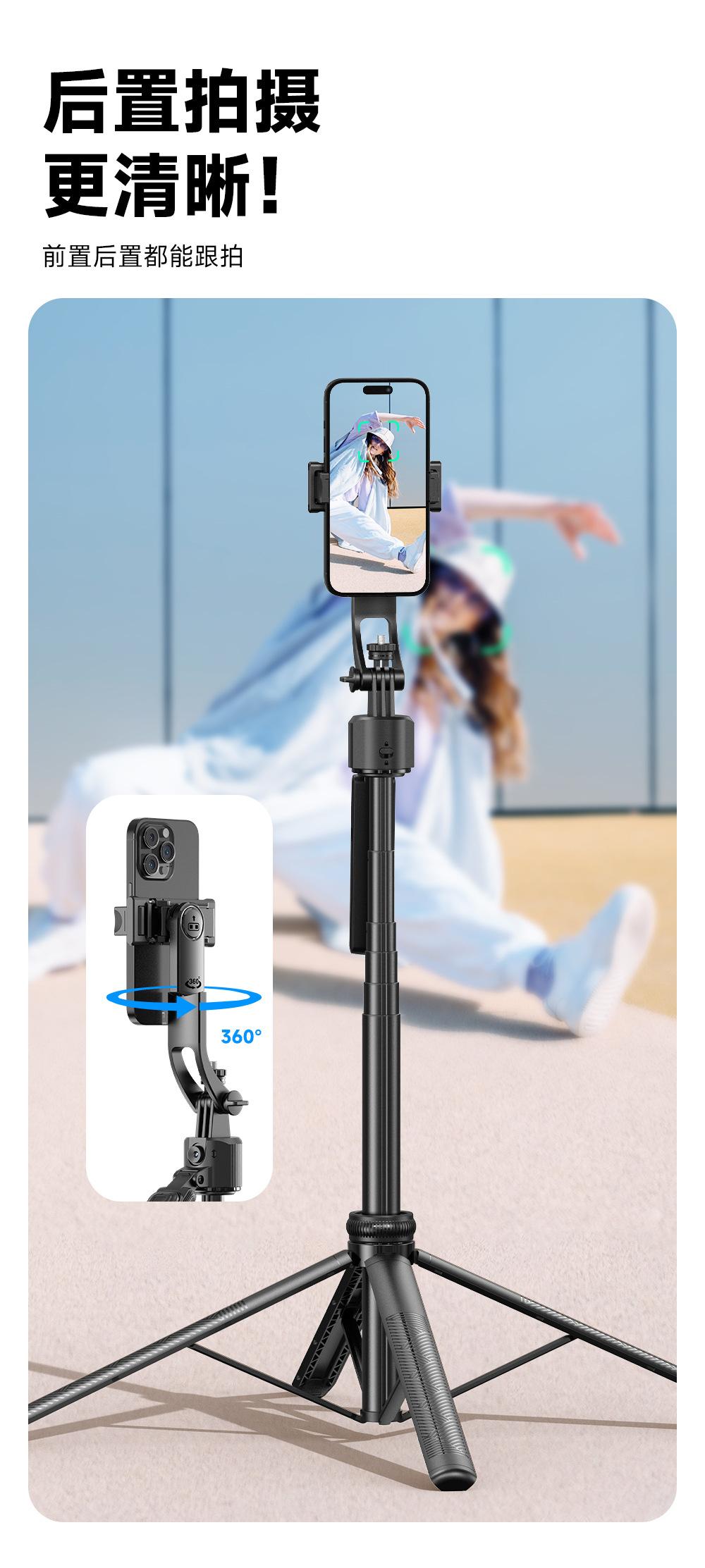 • C17 [블랙 기본 모델] 1.63m 알루미늄 합금 폴*지능형 AI 얼굴 추적*탈착식 클립 헤드*블루투스 리모컨