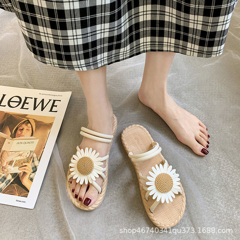여성 신발 여름 2020 새로운 야외 학생 한국식 슬리퍼 여성 조수 요정 바람 플랫 힐 2 착용 샌들 여성 도매스토어 가기