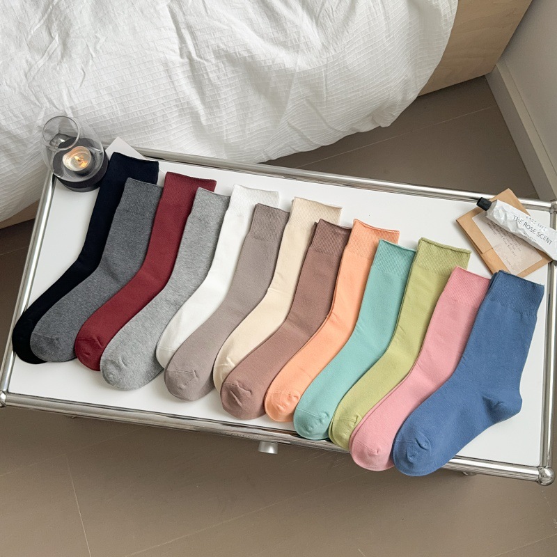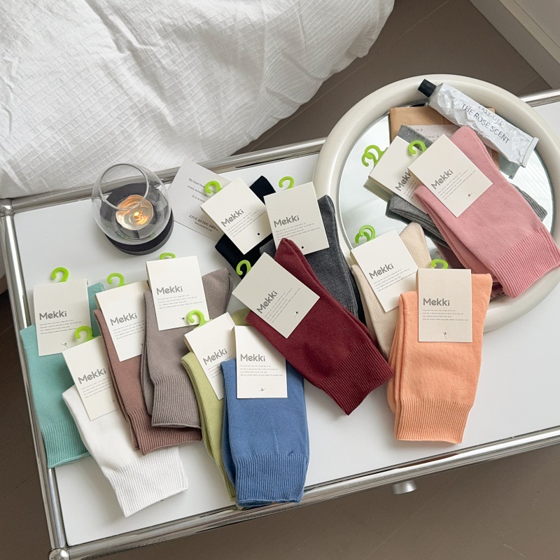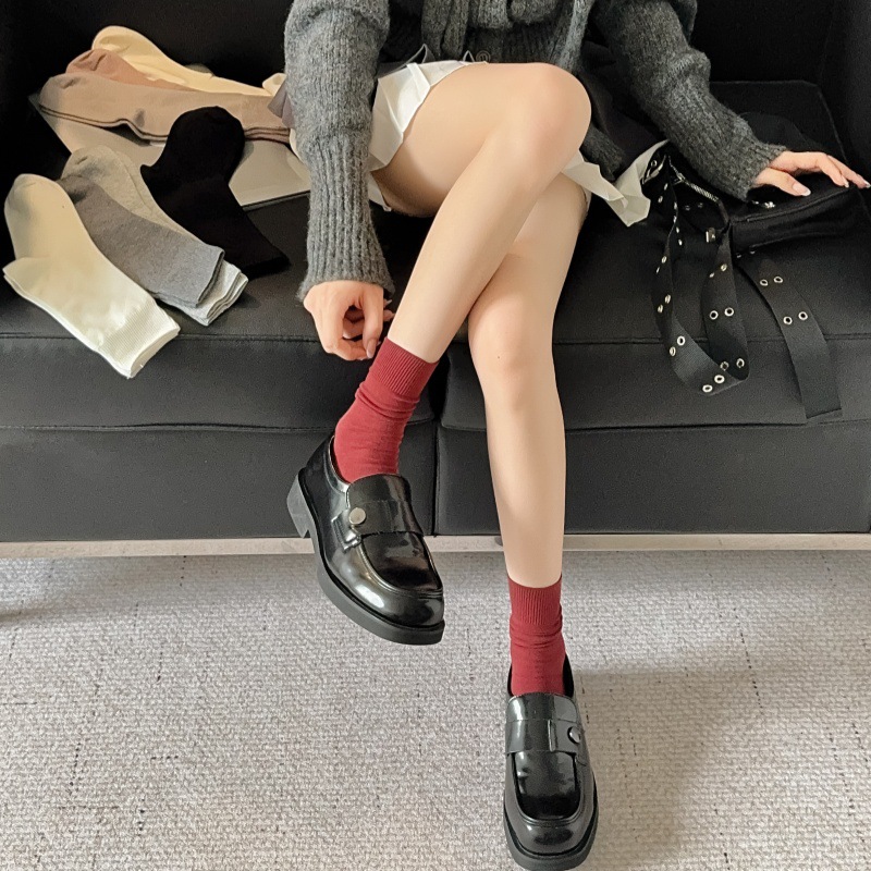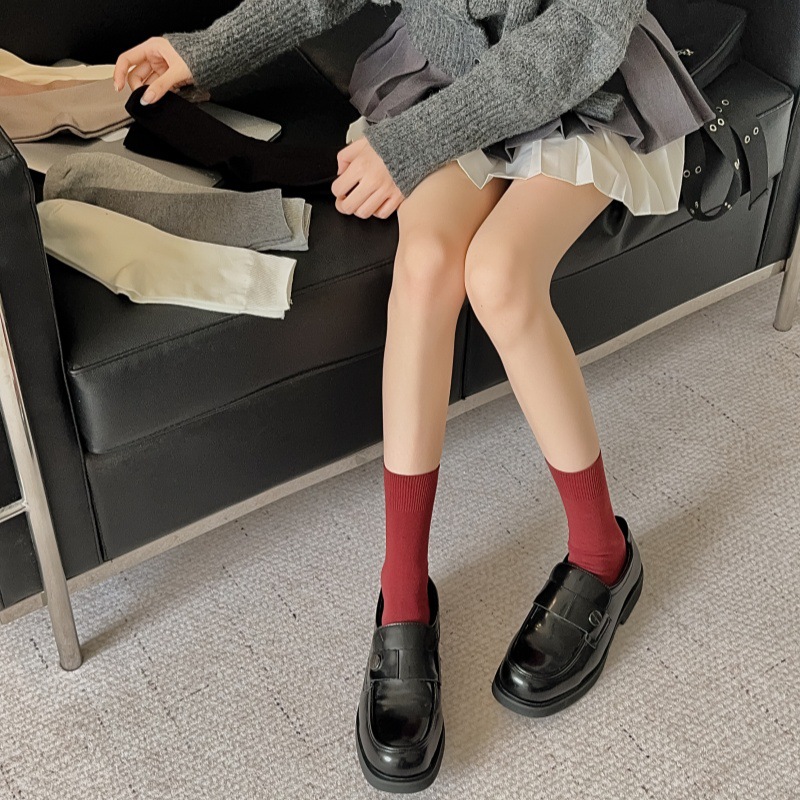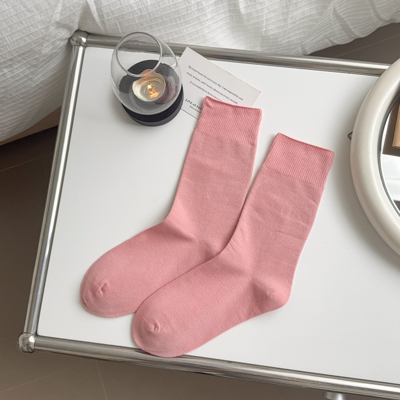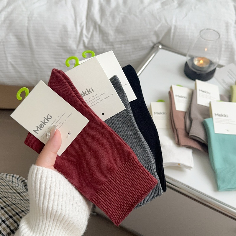 한국 단색 더미 양말-MEKKI Ankora 붉은 양말 여성 가을과 겨울 면화 양말 타이드 여성용 긴 튜브 양말스토어 가기